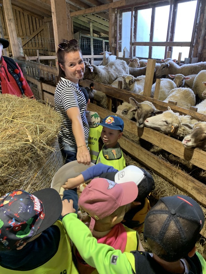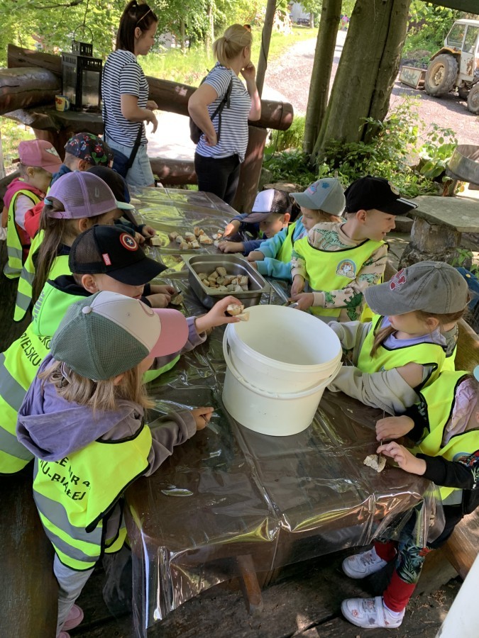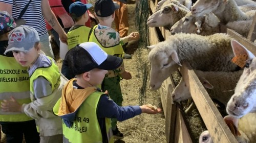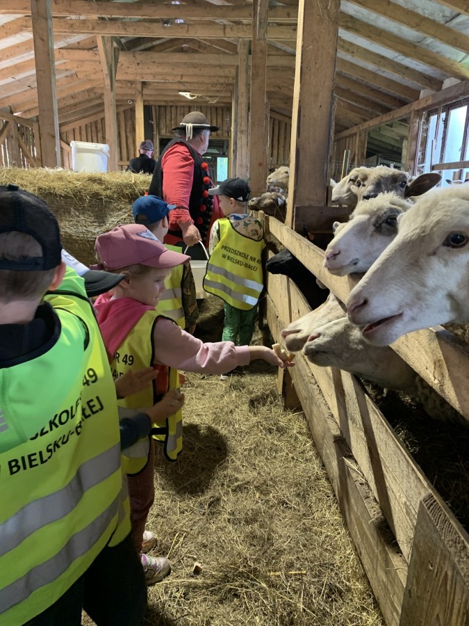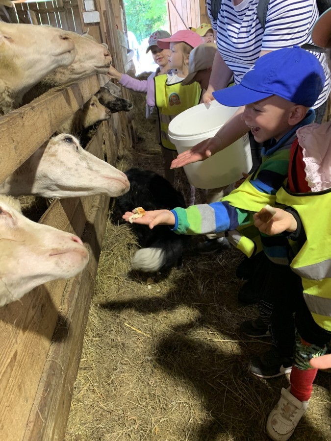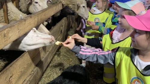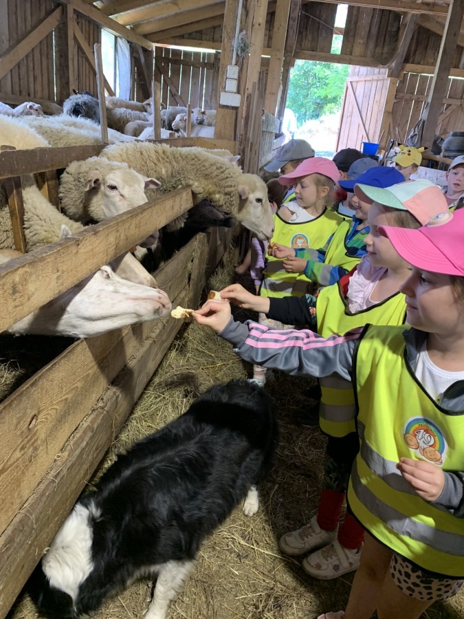 Na miejscu dzieci miały okazję poczuć się jak prawdziwi gospodarze – samodzielnie przygotowywały pokarm dla owiec, a następnie z ogromnym zaangażowaniem je karmiły. Owieczki były bardzo wdzięczne i zadowolone z tak miłego towarzystwa.
