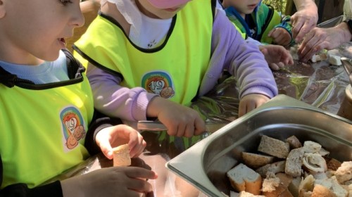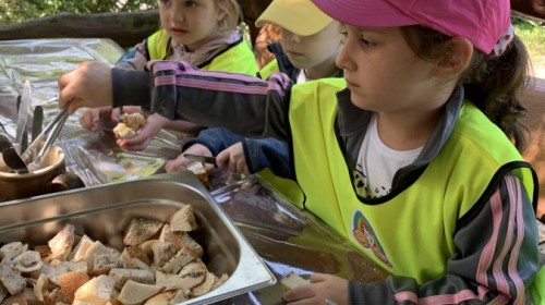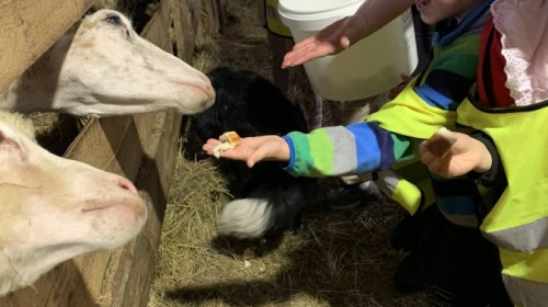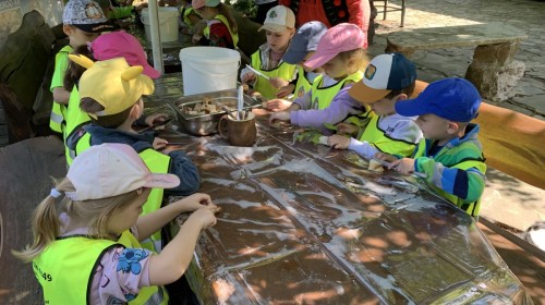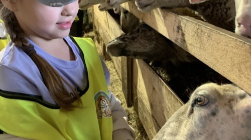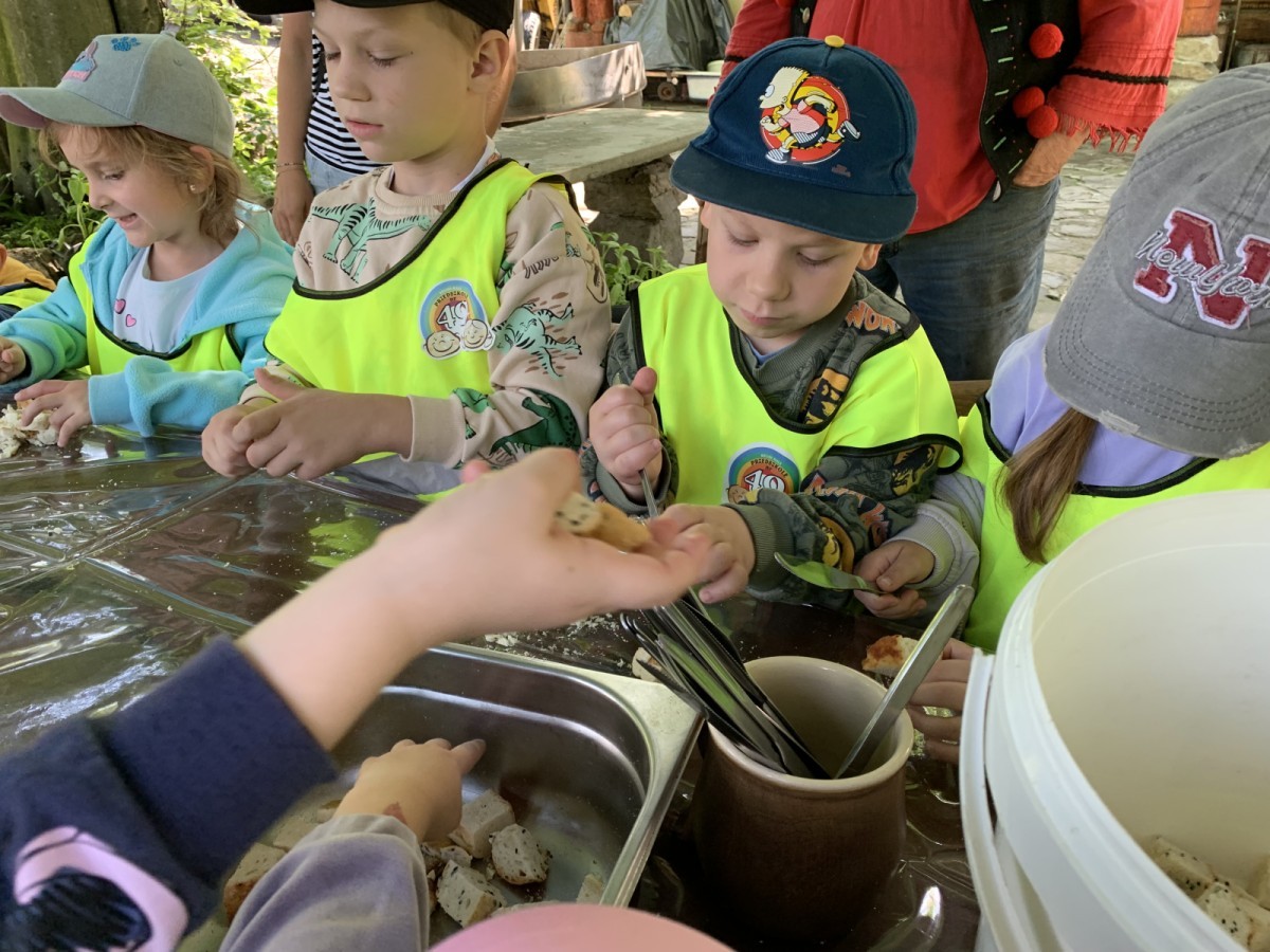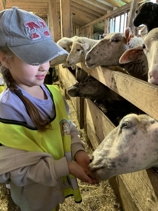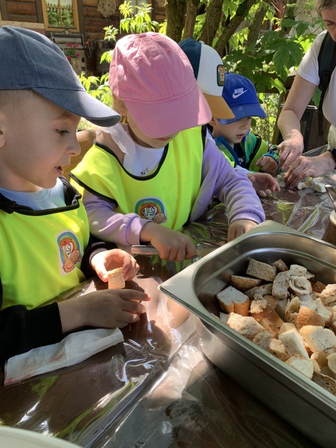 Na miejscu dzieci miały okazję poczuć się jak prawdziwi gospodarze – samodzielnie przygotowywały pokarm dla owiec, a następnie z ogromnym zaangażowaniem je karmiły. Owieczki były bardzo wdzięczne i zadowolone z tak miłego towarzystwa.