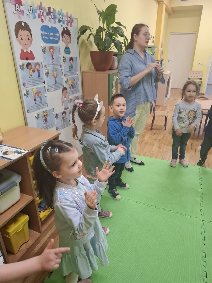 Nasze Przedszkolaki z ciekawością i zaangażowaniem brały udział w aktywnościach i ćwiczeniach zorganizowanych w ramach Niebieskich Igrzysk, poszerzając swoją wiedzę na temat Autyzmu, a także rozwijając empatię i zrozumienie wobec osób, które są inni niż pozostali, realizując w ten sposób część edukacyjną Igrzysk. Przed nami jeszcze realizacja części drugiej - sportowej, która na pewno przyniesie naszym Przedszkolakom wiele radości!