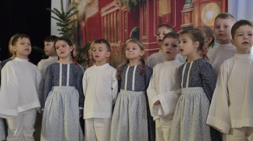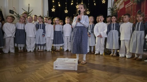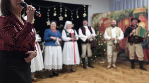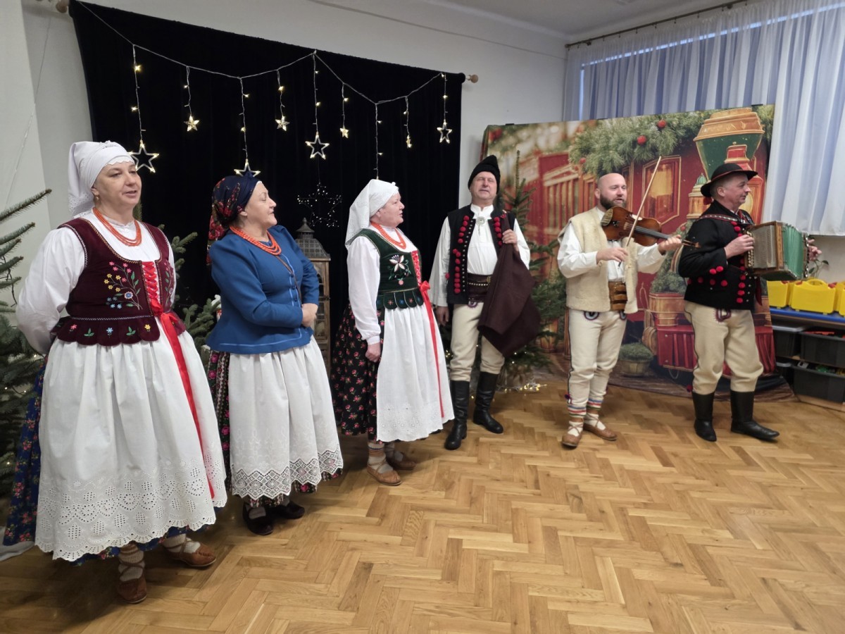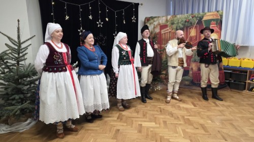Seniorzy ze wzruszeniem obejrzeli sceniczne poczynania przedszkolaków, którzy obdarowali uśmiechem i upominkami swoich gości oraz wspólnie kolędowali przy akompaniamencie Regionalnego Zespołu Pieśni i Tańca Lipowianie.