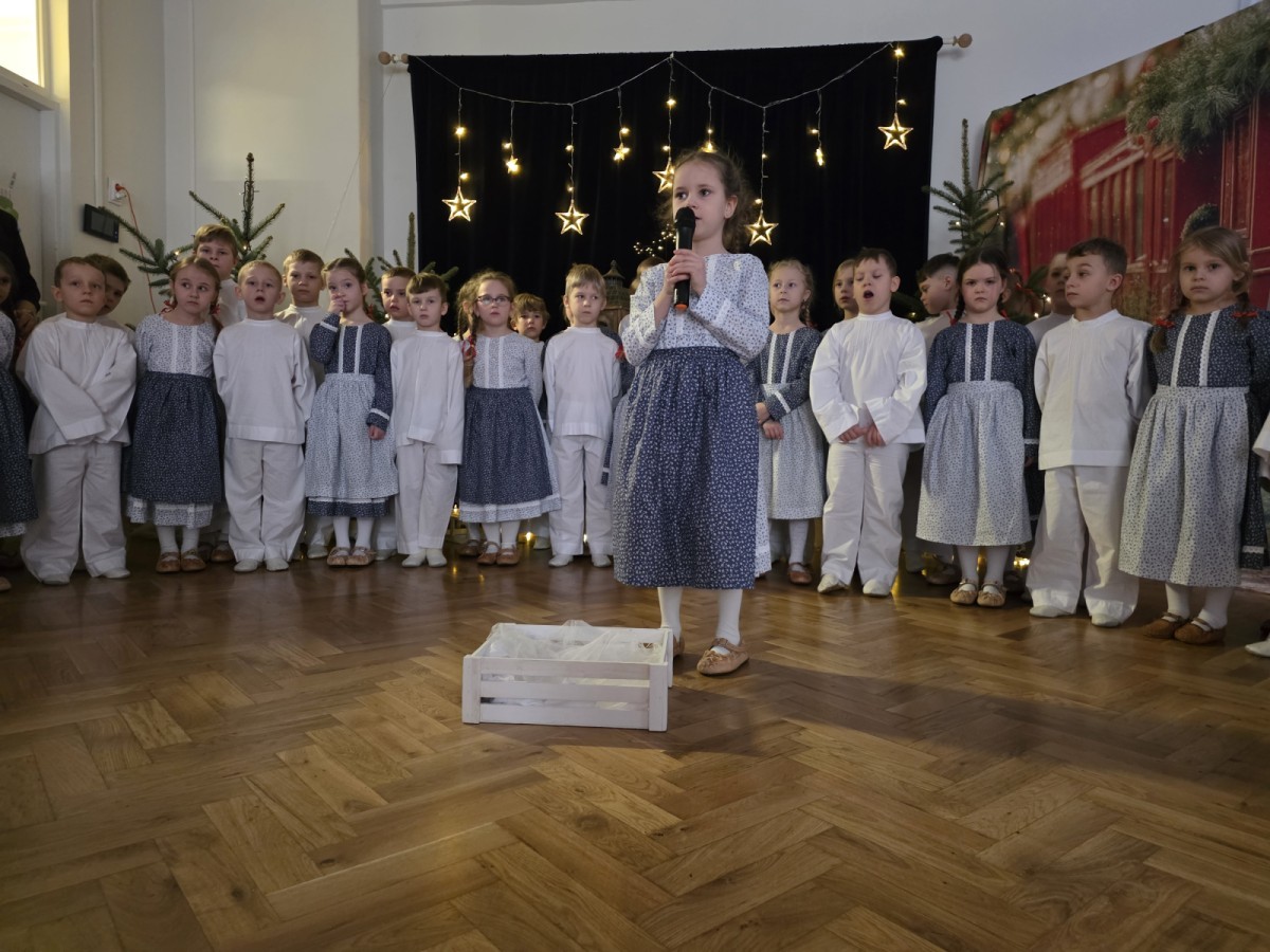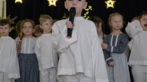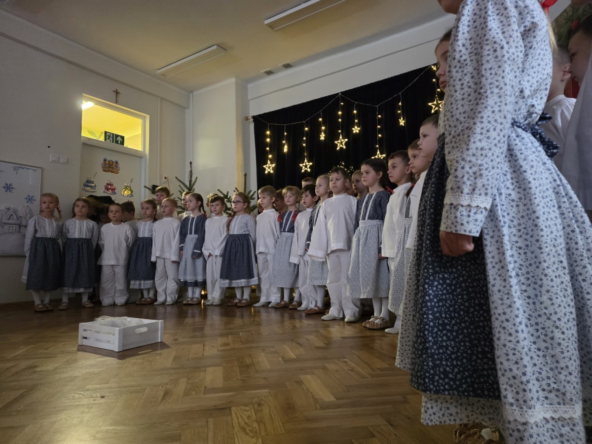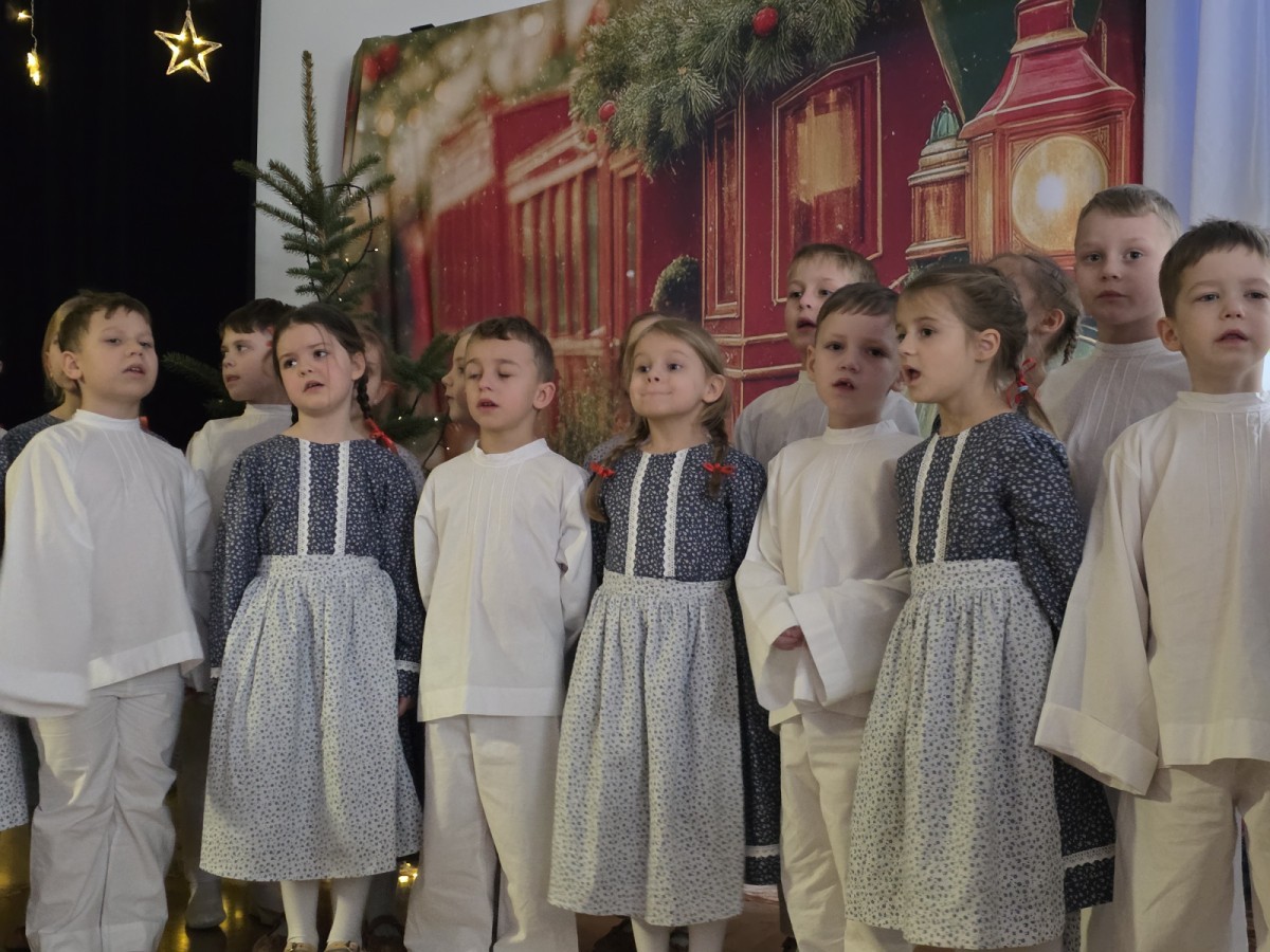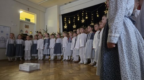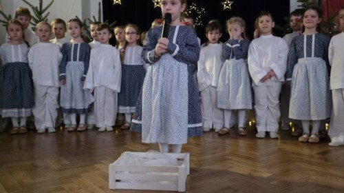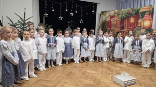 Seniorzy z Domu Pomocy Społecznej przy ul.Żywieckiej w Bielsku-Białej, wraz z panią Magdaleną Giżycką zawitali w progach przedszkola, by móc obejrzeć przedstawienie przygotowane przez dzieci i wspólnie kolędować.
