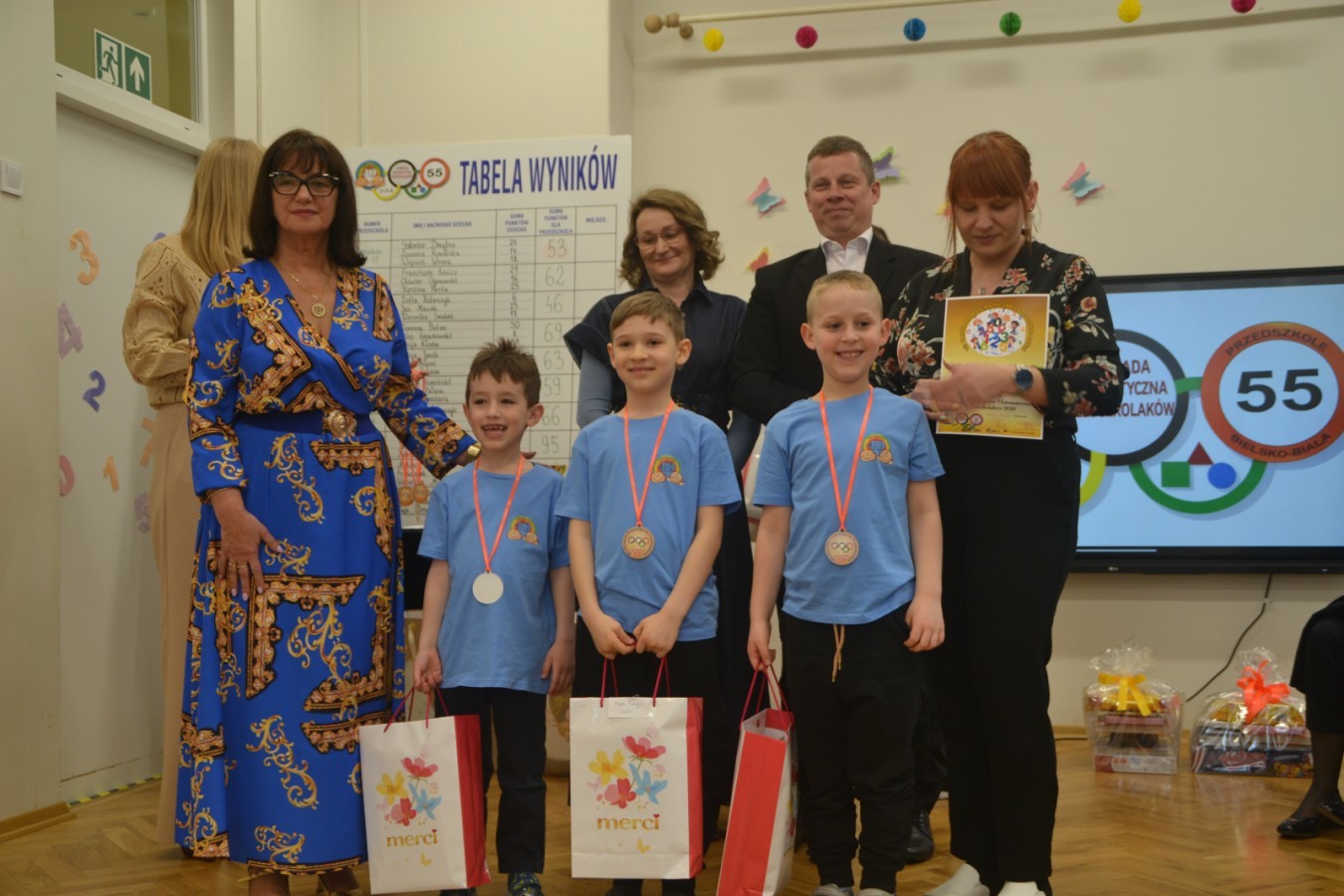 Wszystkie dzieci otrzymały bardzo atrakcyjne nagrody ufundowane przez sponsorów: wydawnictwo „Nowa Era”, „WSiP”, „Edukacja”, „Moje Bambino”,V Liceum Ogólnokształcące w B-B oraz Rady Rodziców z przedszkoli organizujących olimpiadę.