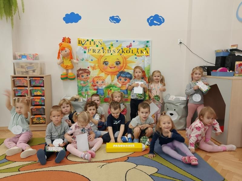 Takie wydarzenie miało miejsce 19.09.2025r. - w przeddzień "Międzynarodowego Dnia Przedszkolaka". Akt ślubowania na dzielnego przedszkolaka złożyły dzieci z grupy "Kotki". Dzieci wspólnie obiecały zgodnie bawić się w przedszkolu, przychodzić każdego dnia z uśmiechem, słuchać Pań, pomagać kolegom i zjadać wszystko z talerzy.
