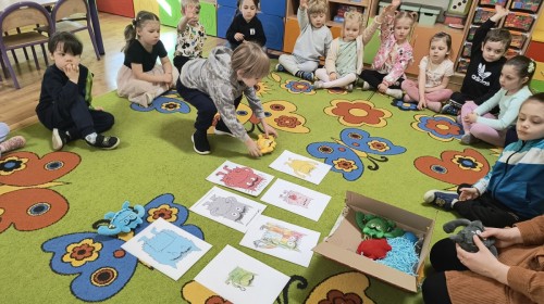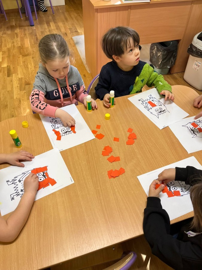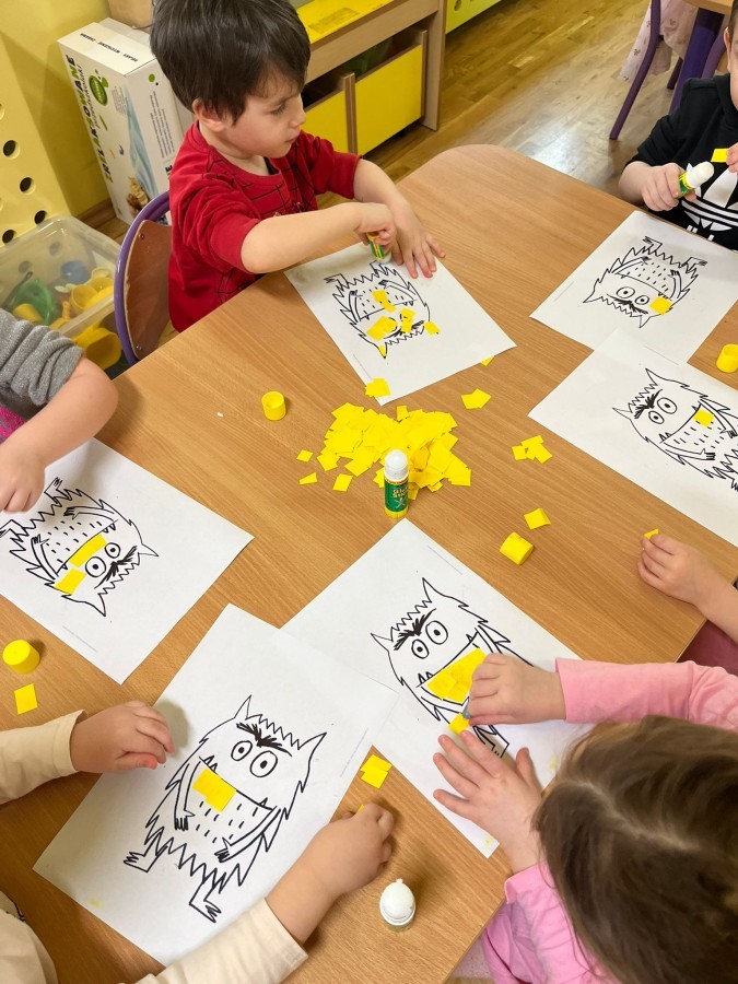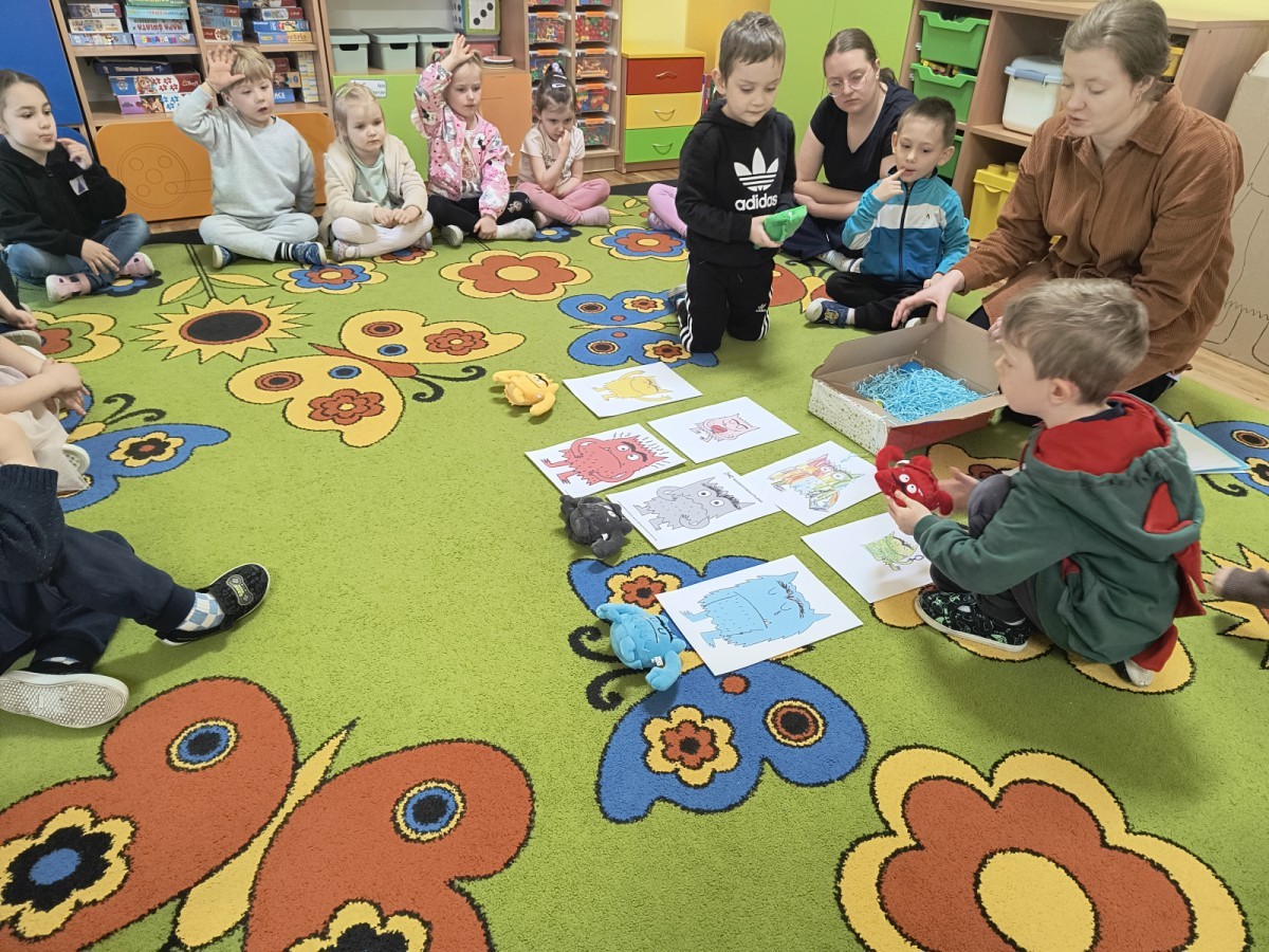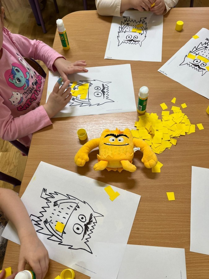 W poniedziałek grupa "Muchomorków" poznawała emocje podstawowe. Dzieci pięknie poradziły sobie z rozpoznawaniem emocji i rozmowie o nich. Wraz z Kolorowym Potworem nauczyły się nazywać regulować swoje emocje. Na koniec każdy wykonał swojego własnego Kolorowego Potwora. Dziękujemy pani Adzie psycholog za ciekawe i wartościowe warsztaty!