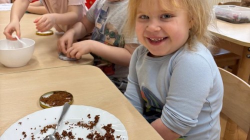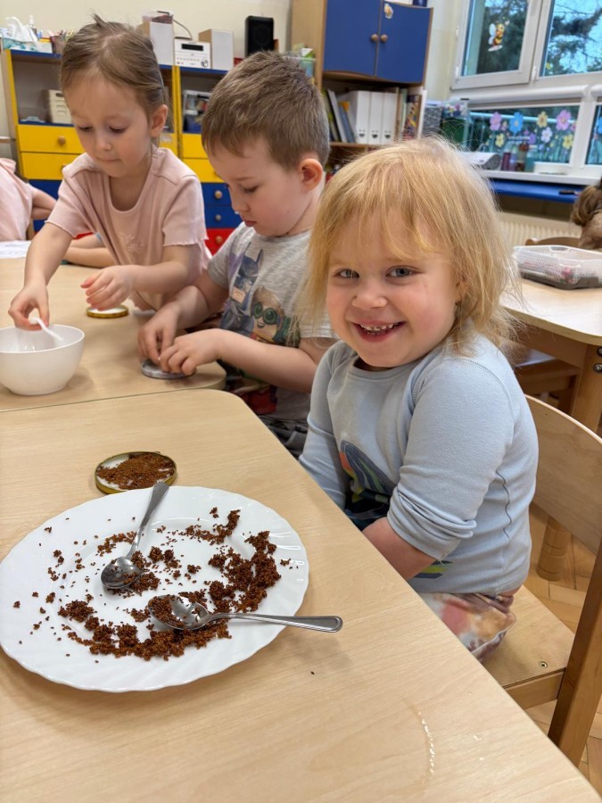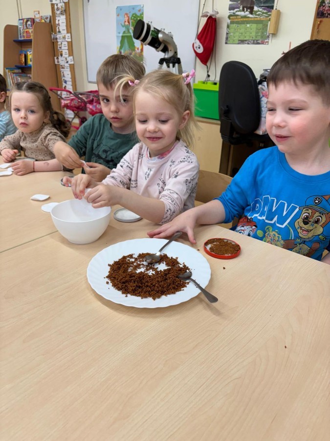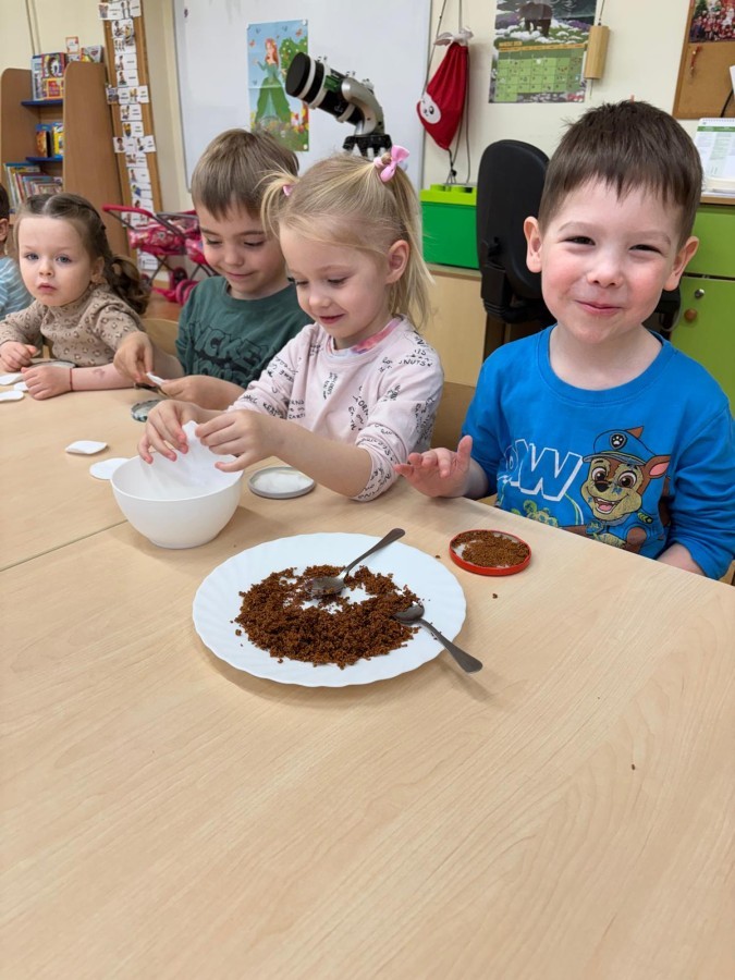 Podczas zajęć przedszkolaki samodzielnie siały rzeżuchę, ucząc się przy tym, jak dbać o rośliny i obserwować ich wzrost. Dzieci z dużym zaangażowaniem podlewały swoje uprawy i codziennie sprawdzały, jak pojawiają się pierwsze zielone listki.