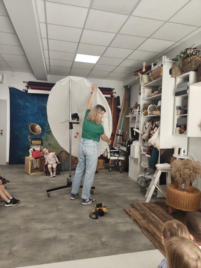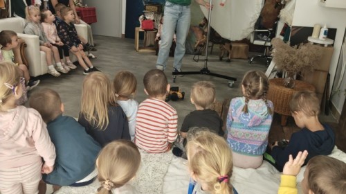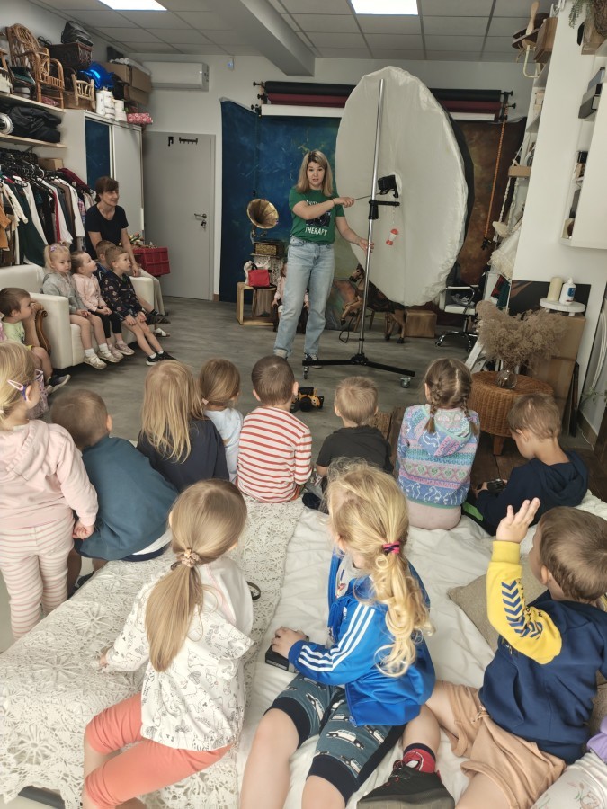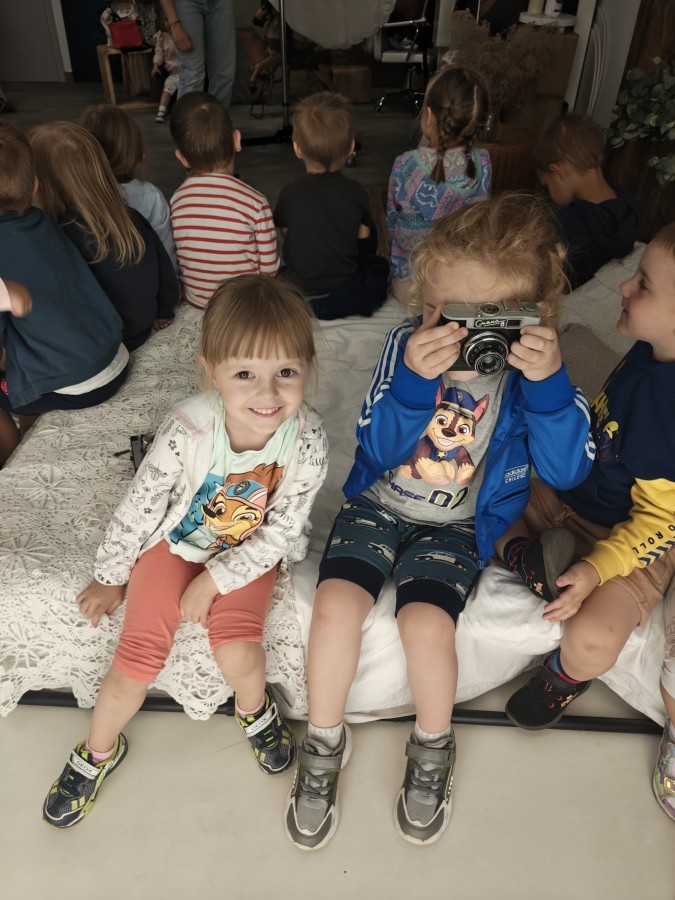 Dzieci z grupy "Pszczółki" wybrały się na wycieczkę do studia fotograficznego pani Ani D. ( Mamy Sary i Artura) aby poznać tajniki pracy fotografa. Podczas spotkania dowiedziały się, na czym polega wykonywanie zdjęć, jak wygląda profesjonalny sprzęt oraz jak ważne jest światło w fotografii. Miały okazję zobaczyć tło i lampy studyjne, a także obserwować, jak powstaje portret. Największą atrakcją była możliwość samodzielnego pozowania do zdjęć i obejrzenia efektów pracy fotografa. Wycieczka była ciekawym doświadczeniem, które pozwoliło dzieciom lepiej zrozumieć, na czym polega zawód fotografa.Pani Ani bardzo dziękujemy za profesjonalne podejście, poświęcony czas i zaproszenie.