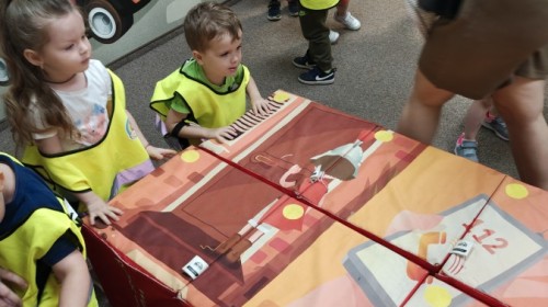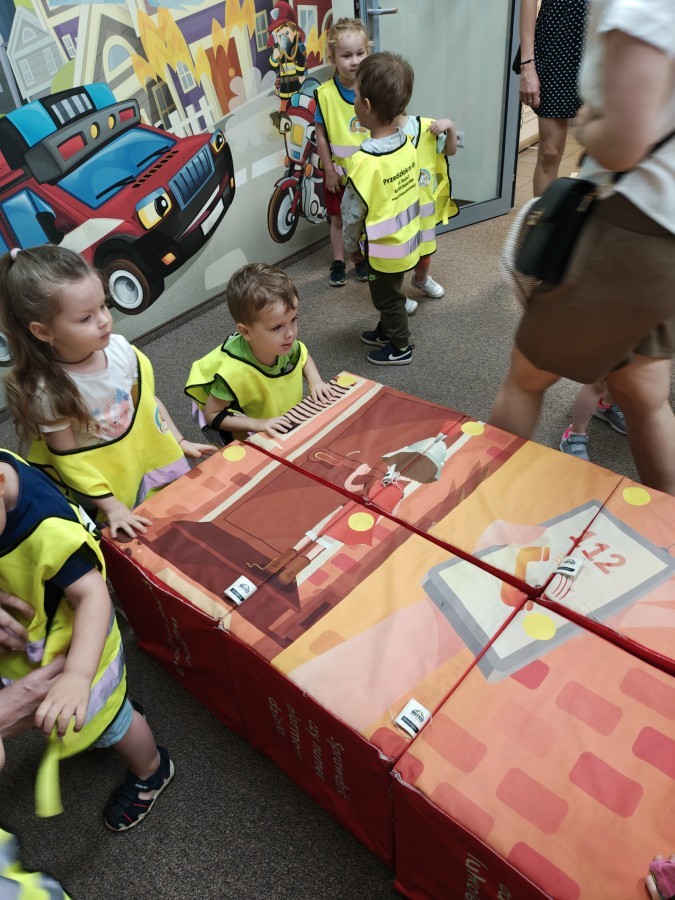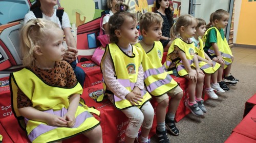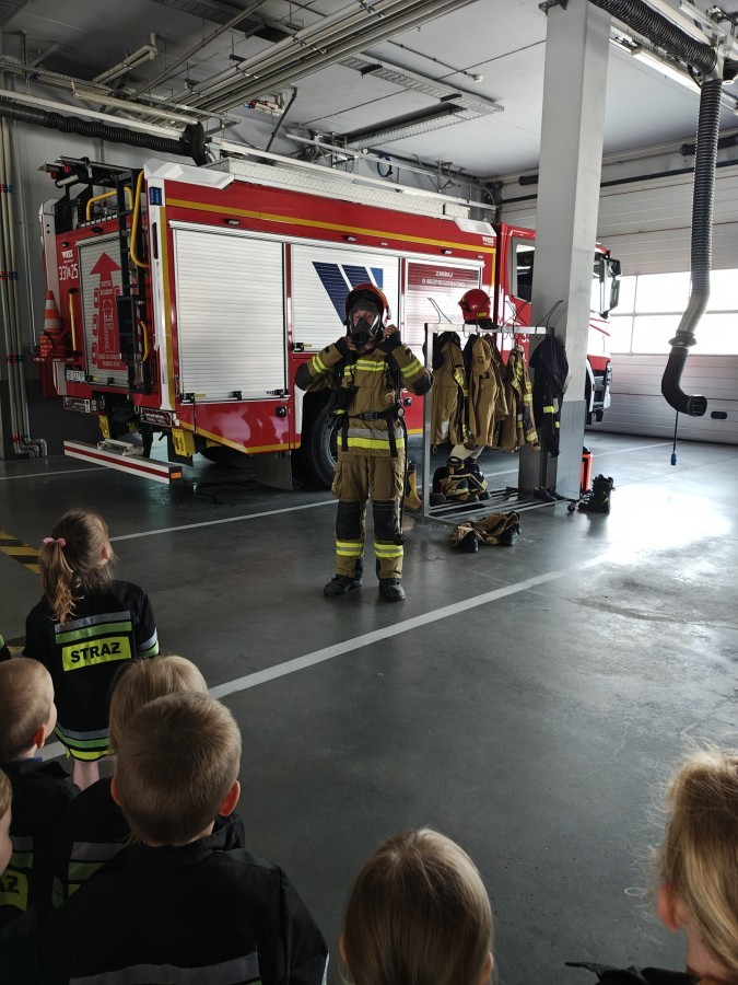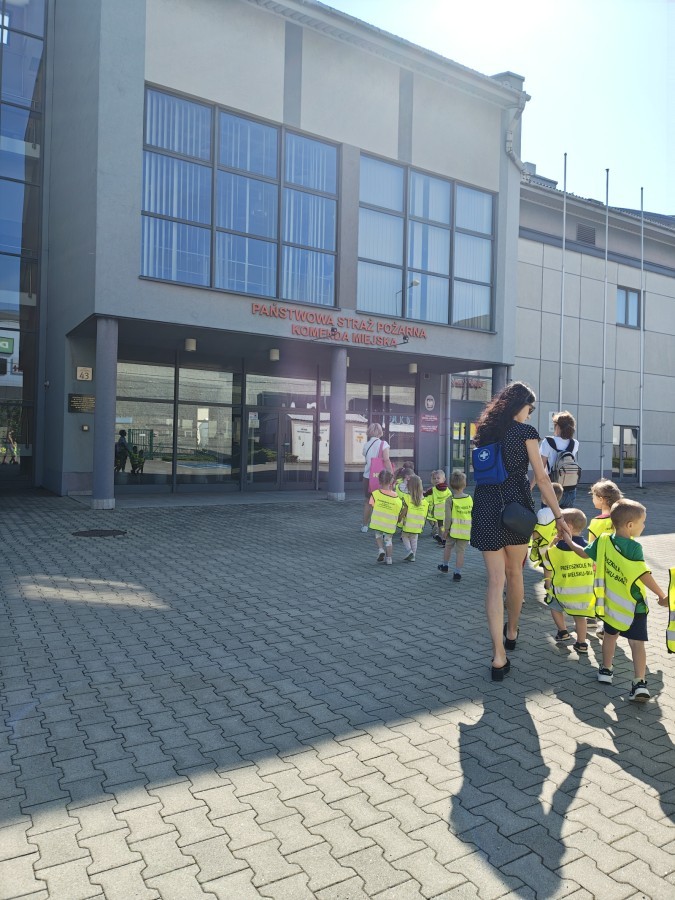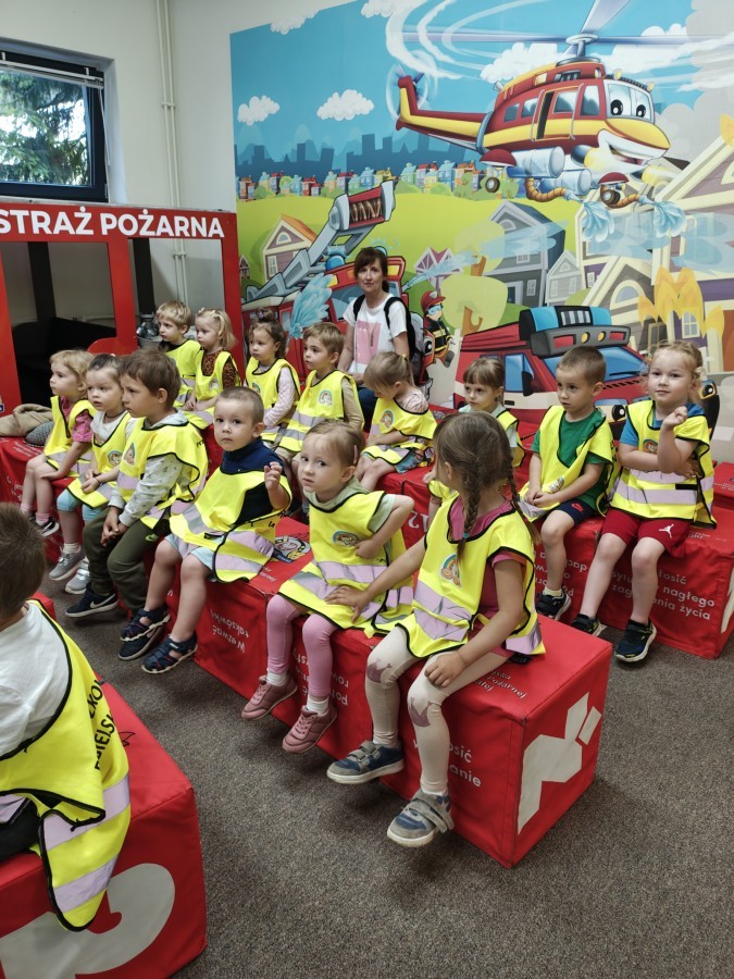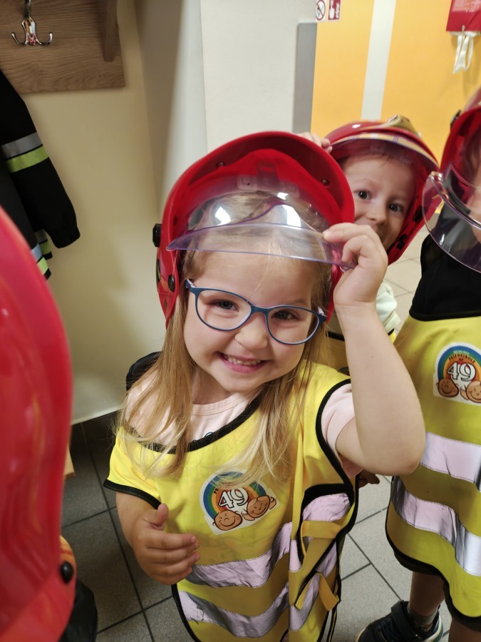 Nasze Przedszkolaki miały okazję poznać specyfikę pracy strażaka, zwiedzić garaż wyposażony w wiele sprzętów i pojazdów specjalistycznych, wziąć udział w zajęciach w sali 'Ognik', a także spróbować swoich sił w zjeździe strażacką rurą.