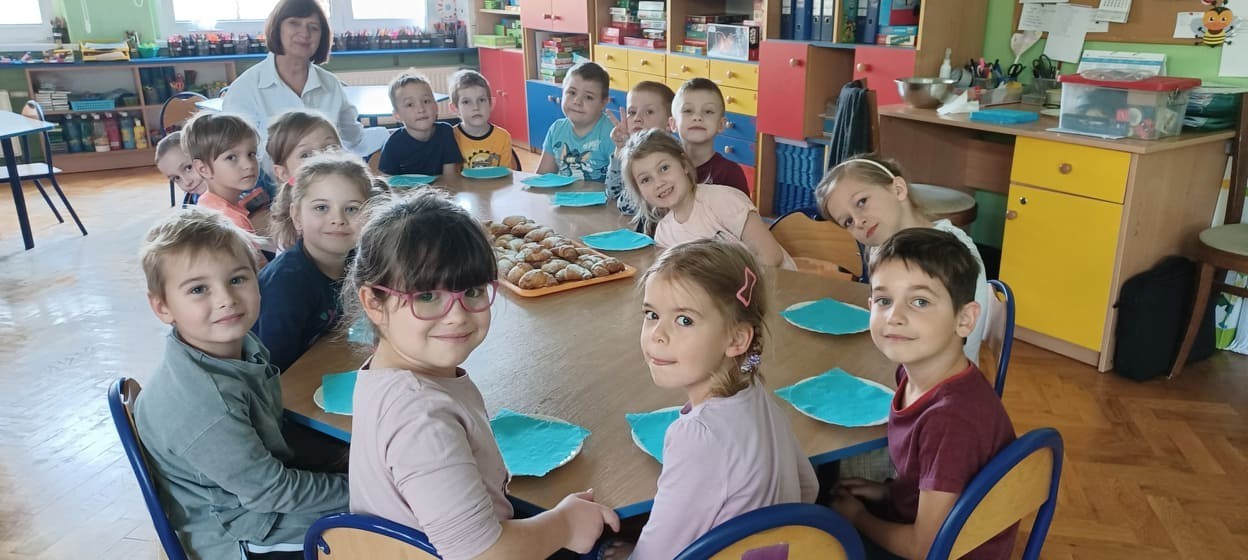 W środę 27 października dzieci z grupy SŁONECZKA poznawały tajniki kuchni, a mianowicie: produkty, sposób wykonania rogalików krucho-drożdżowych z nadzieniem konfitury z płatków róży. Samodzielnie wyrobiły ciasto, bawiąc się przy tym doskonale. Dzieci zapoznały się ze sposobem zawijania rogalików. Po upieczeniu ich w naszej przedszkolnej kuchni, odbyła się w sali ich degustacja. Nasze rogaliki były przepyszne. Miam. Mniam….