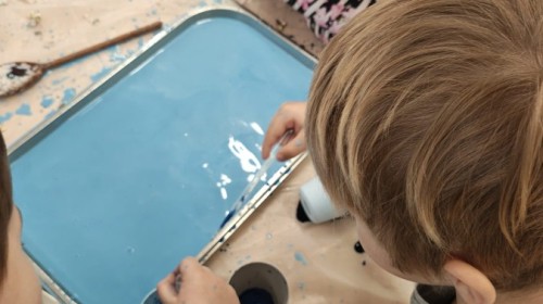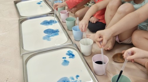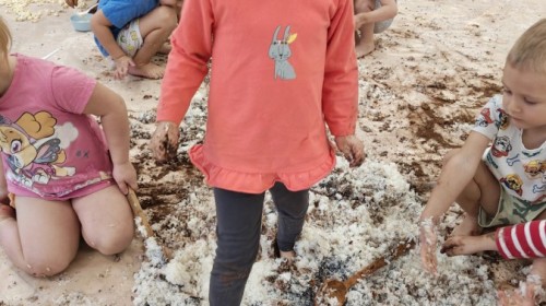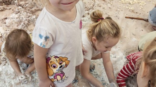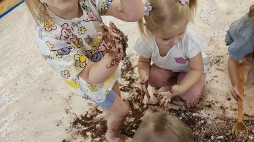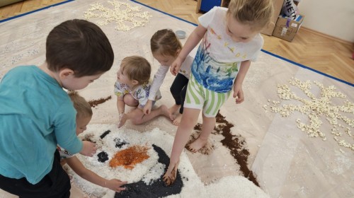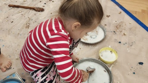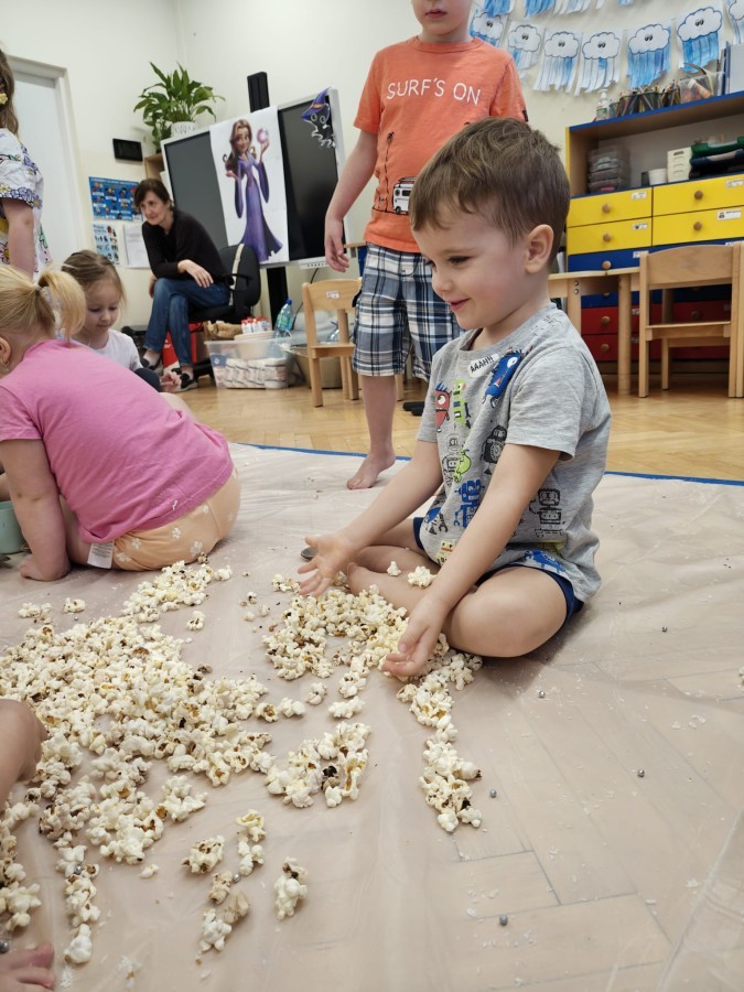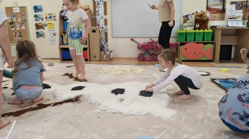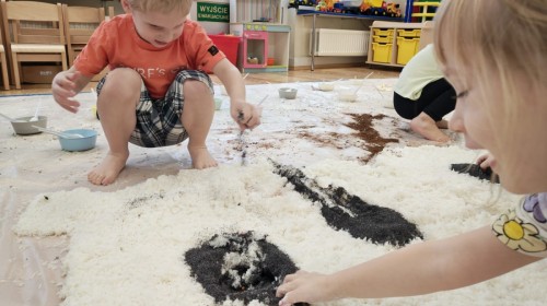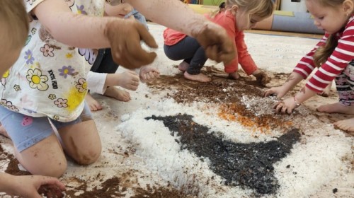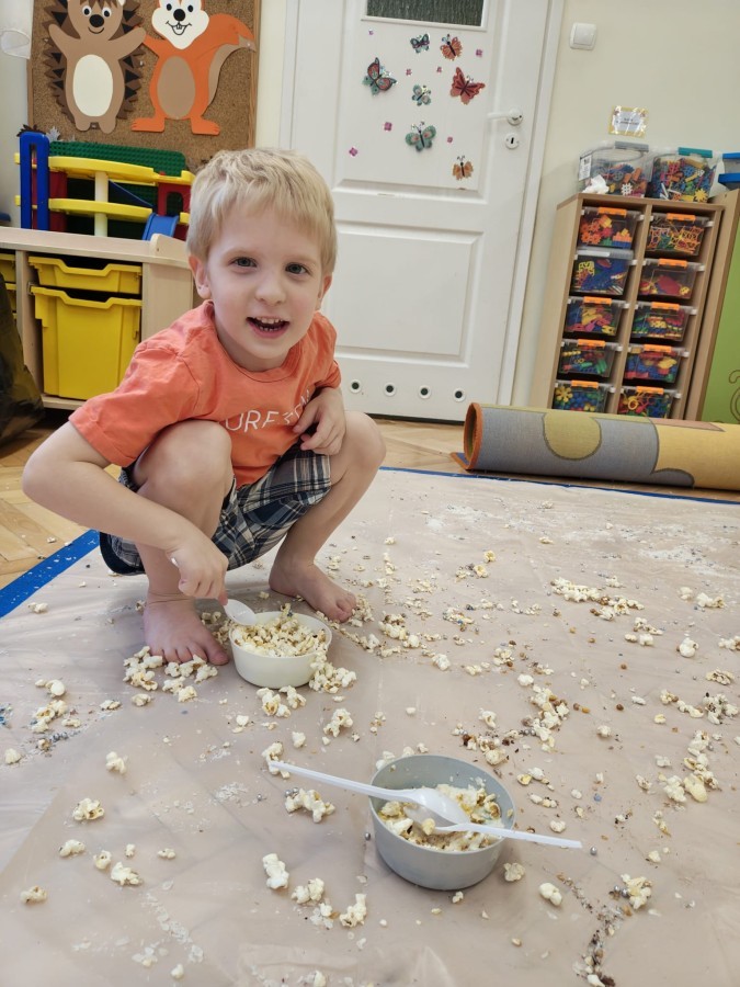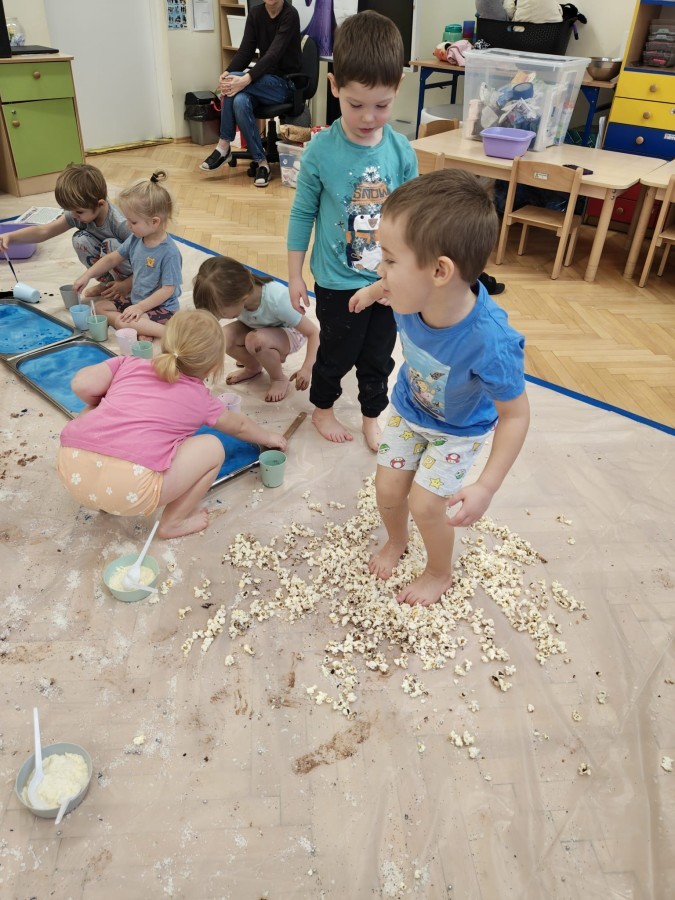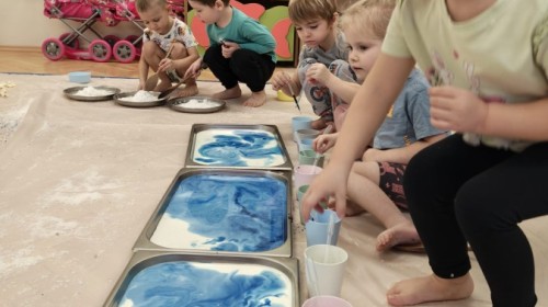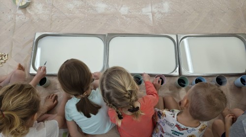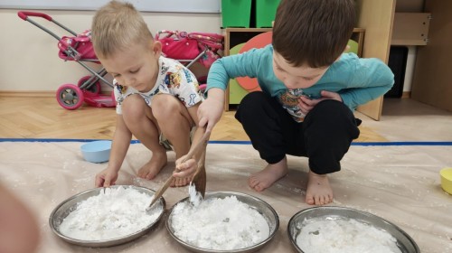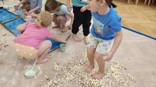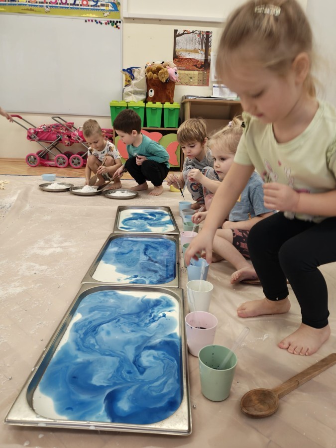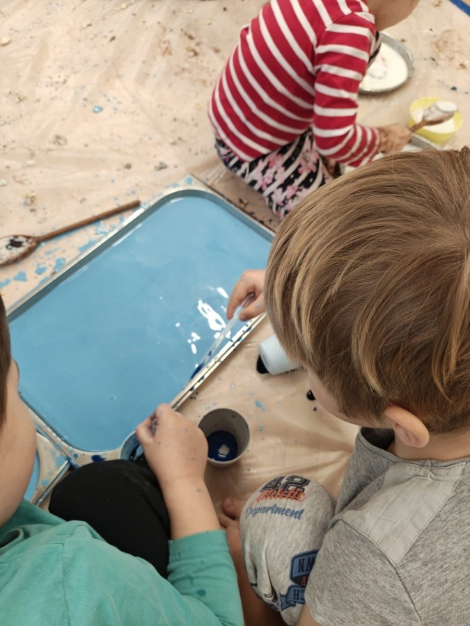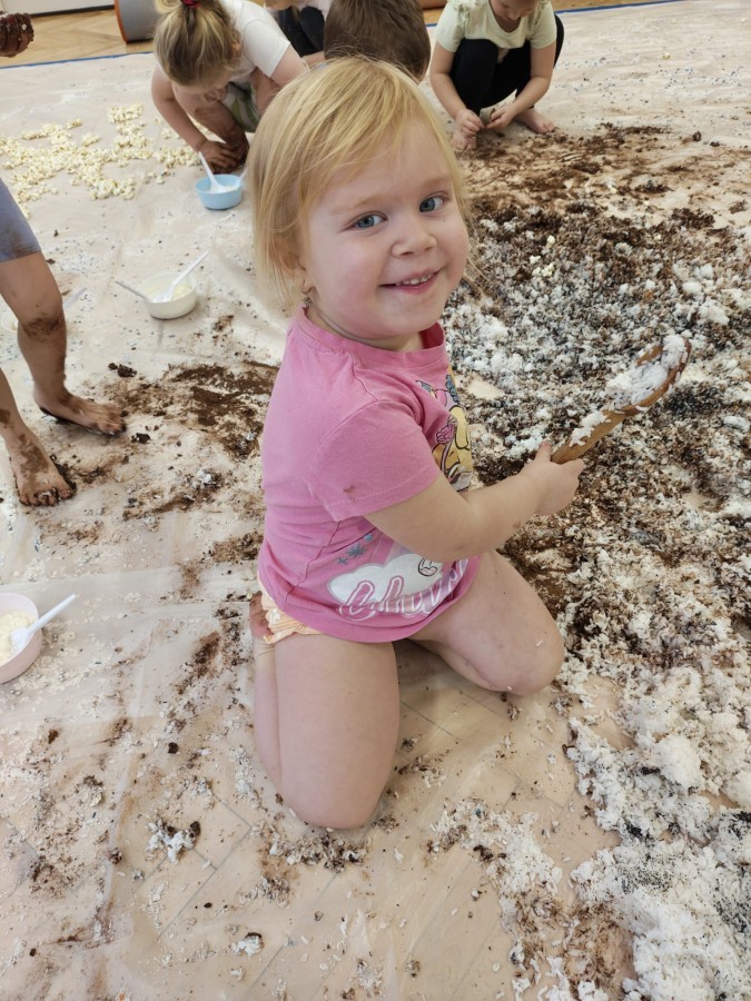 Przedszkolaki mieszały, ugniatały, lepiły i odkrywały nowe faktury, korzystając z naturalnych i bezpiecznych składników. Zabawa sprawiła im ogromną radość – dzieci świetnie się bawiły, rozwijając przy tym wyobraźnię oraz motorykę małą.