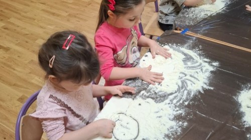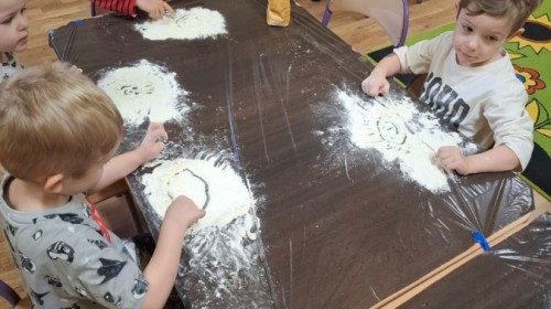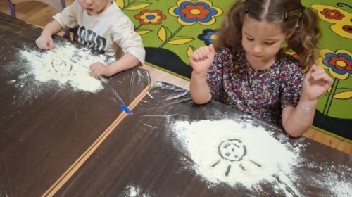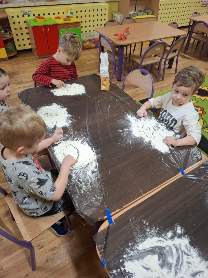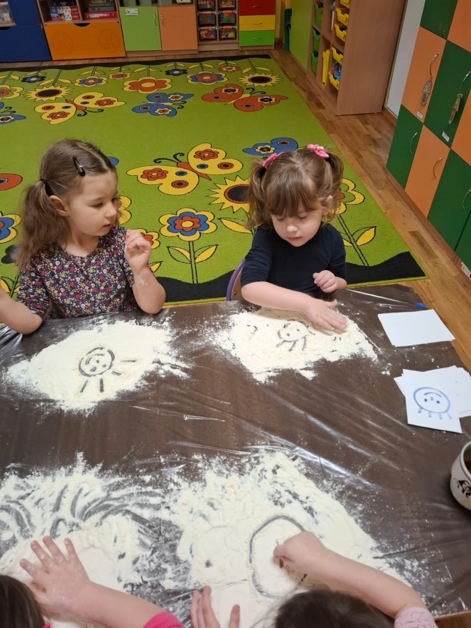 Podczas zajęć przedszkolaki usprawniały dłonie i paluszki, rozwijały zmysł dotyku i czucie, a także ćwiczyły umiejętność odwzorowywania kształtów. Dzieci z ciekawością poznawały różne faktury, struktury i materiały, odkrywając świat wszystkimi zmysłami. ✋✨
