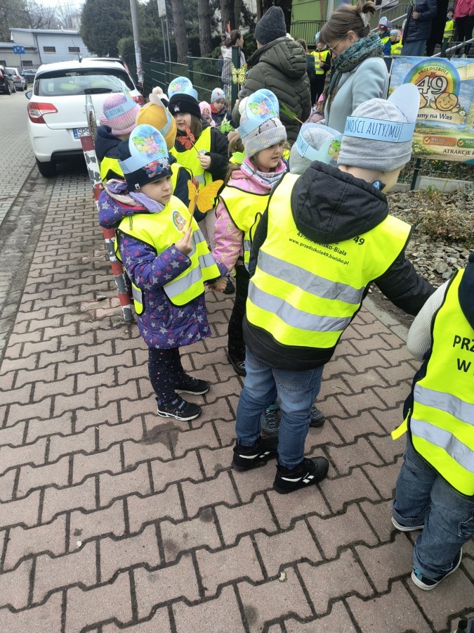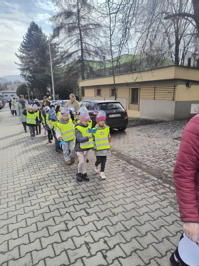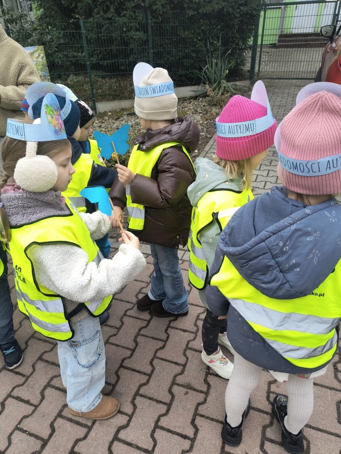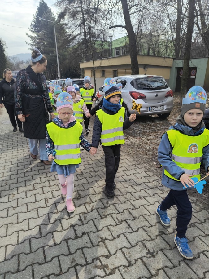 Dzieci wybrały się na wspólny pochód w okolicę przedszkola, trzymając w dłoniach kolorowe motyle – jeden z symboli autyzmu. 🦋 Każdy krok był wyrazem solidarności oraz przypomnieniem, jak ważne są empatia, otwartość i szacunek wobec drugiego człowieka.