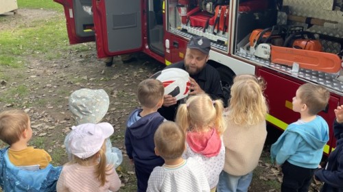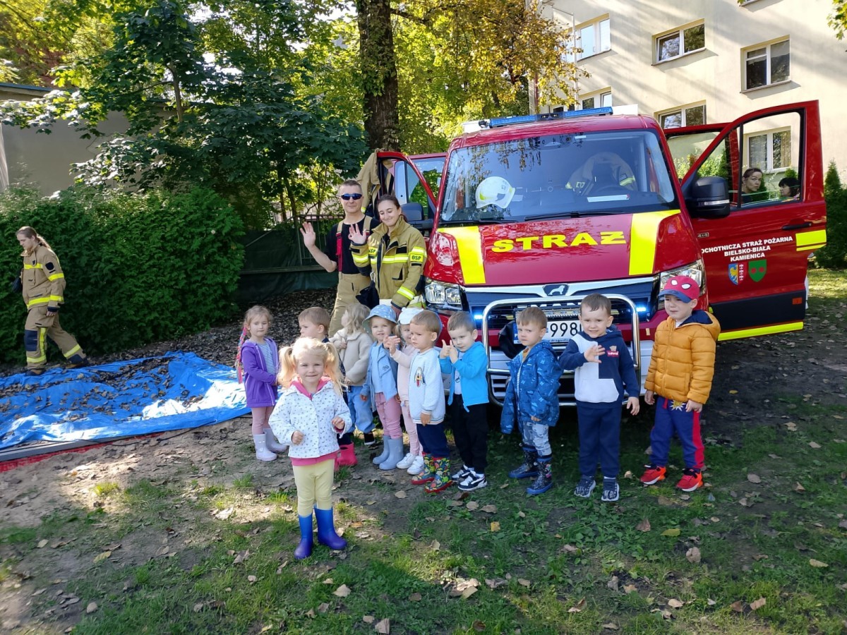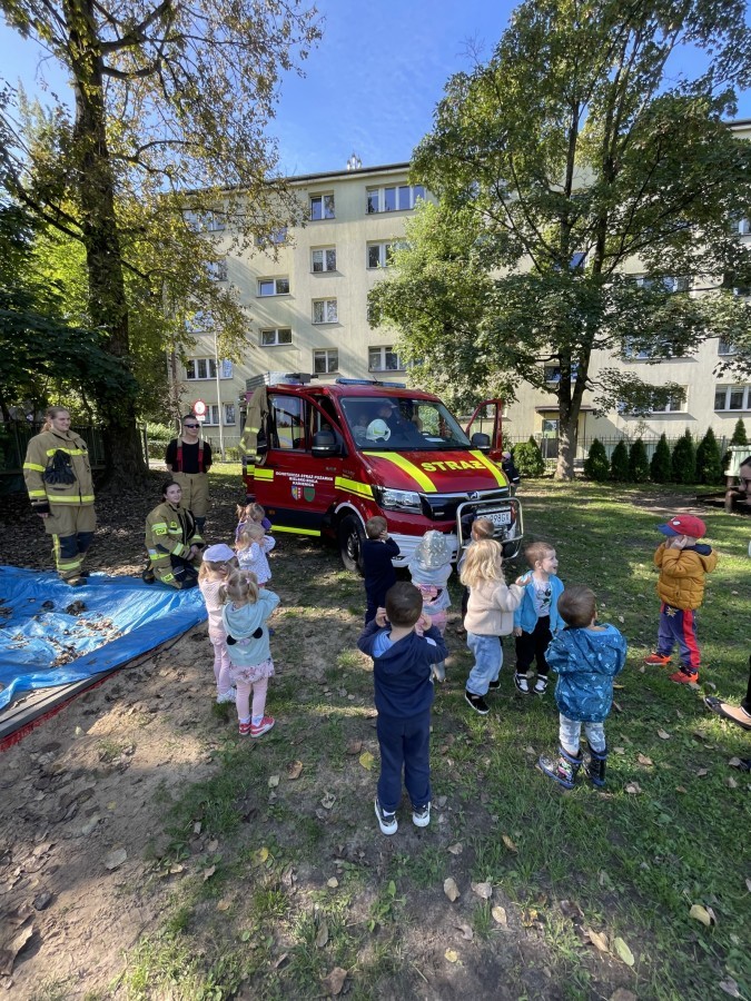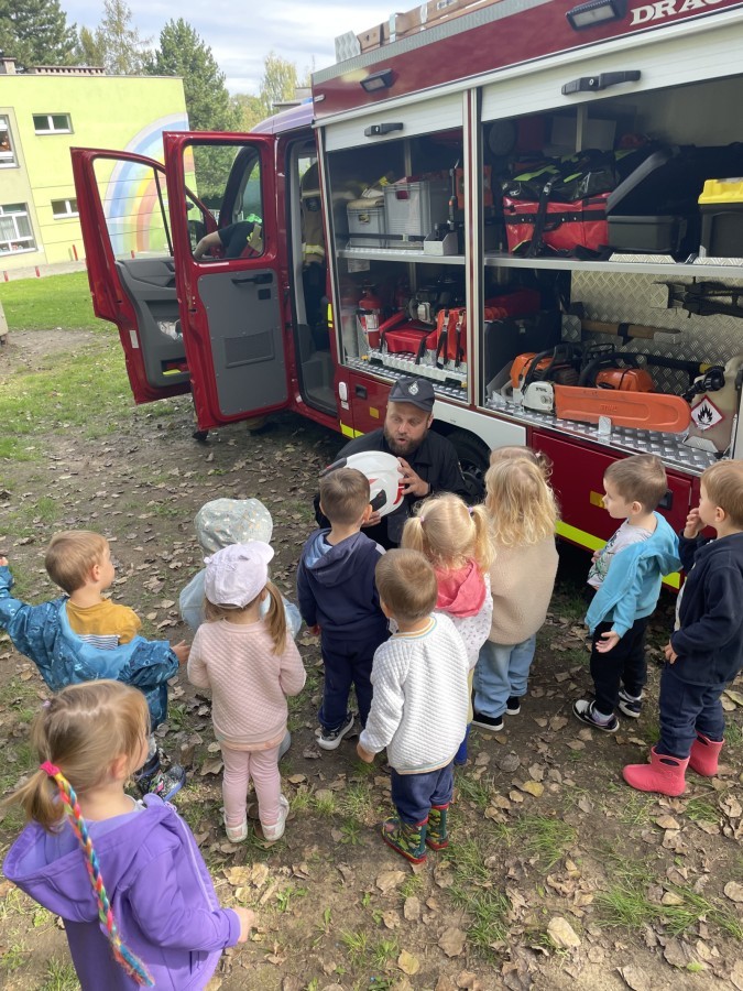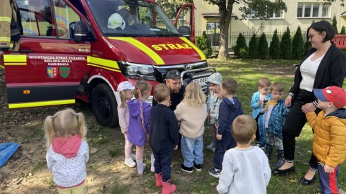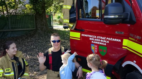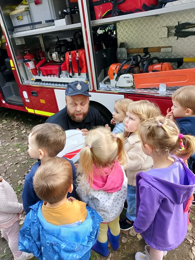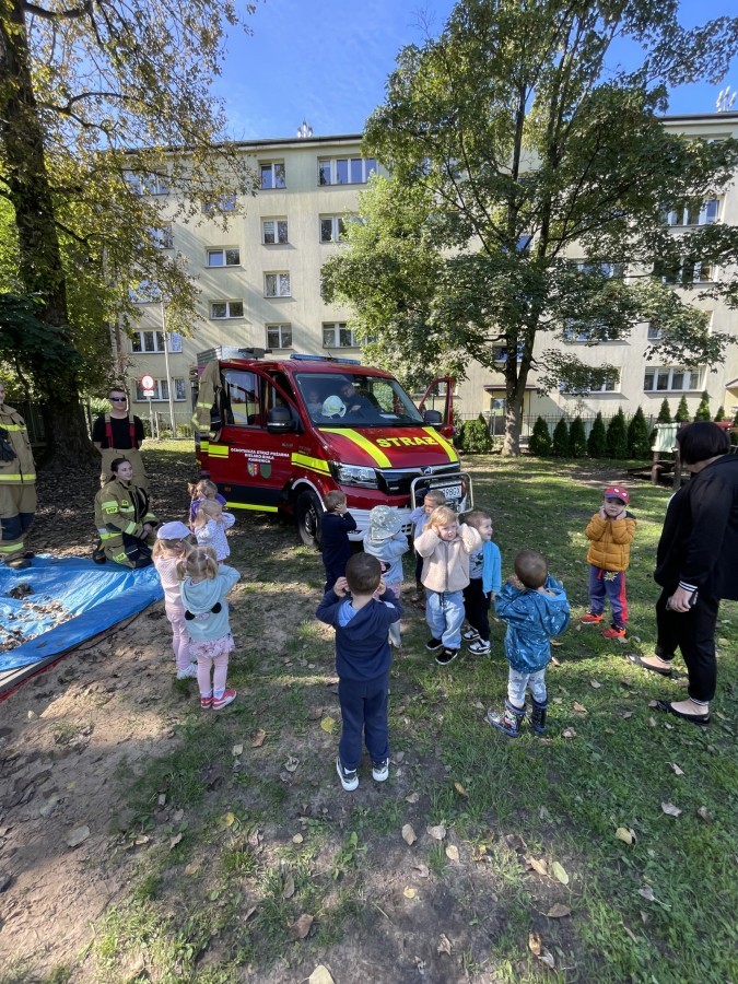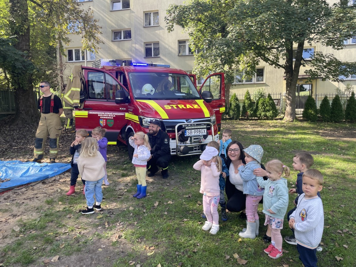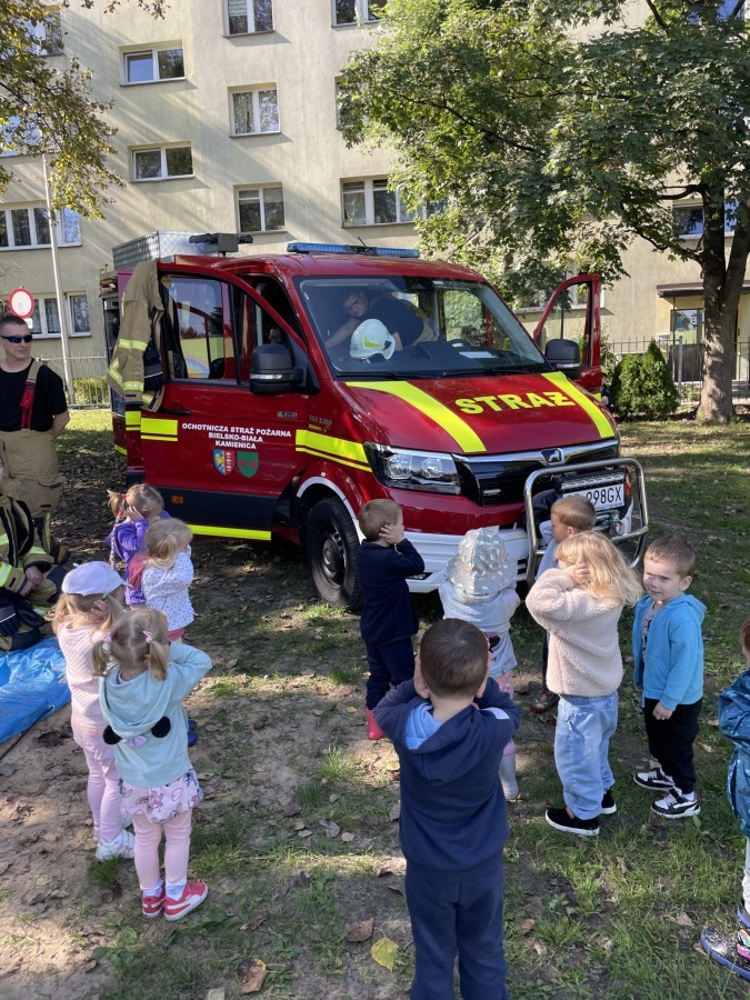 W Dniu 19.09.2025 dzieci z grupy PI - KOTKI miały przyjemność poznać ciężki i niebezpieczny, ale bardzo potrzebny zawód - strażaka . Odwiedziła nas odważna ekipa z Ochotniczej Straży Pożarnej Bielsko -Biała Kamienica , która opowiedziała o swojej pracy . Dzieci miały możliwość podziwiać wyposażenie, jakim dysponują strażacy podczas swojej pracy, poznały elementy ubioru, a ochotnicy mogli nawet przymierzyć hełm strażacki. Każdy mógł wejść do wozu i poczuć się jak prawdziwy strażak. Na koniec otrzymaliśmy słodko - mokrą niespodziankę :) DZIĘKUJEMY !