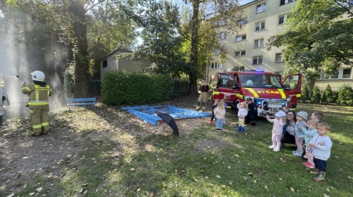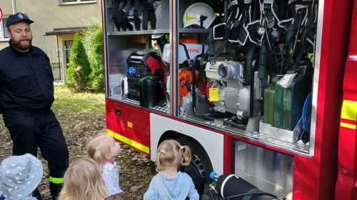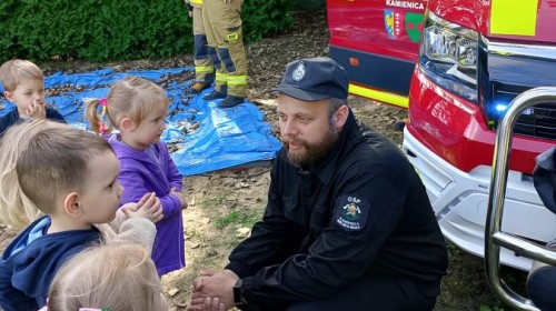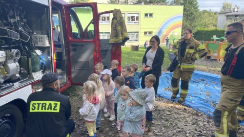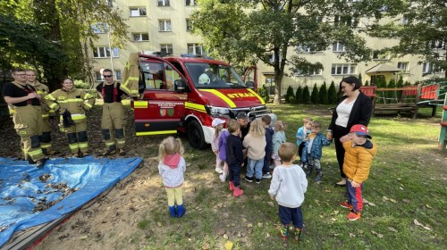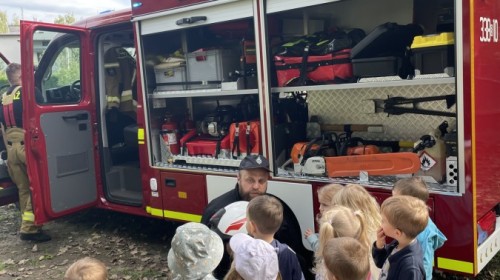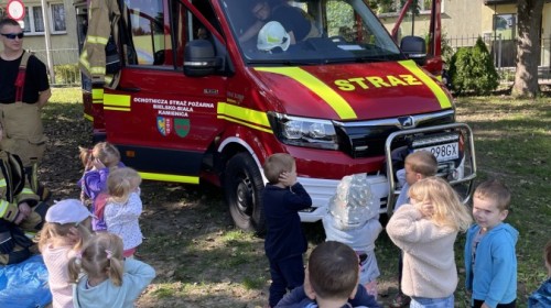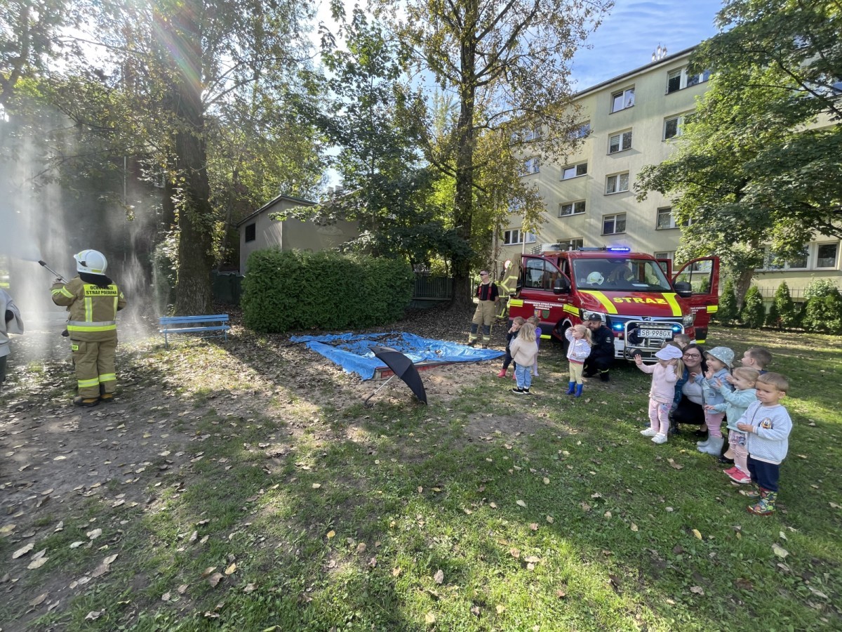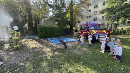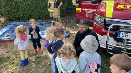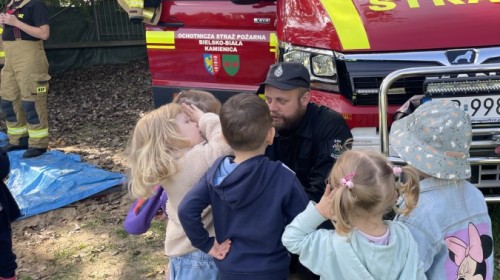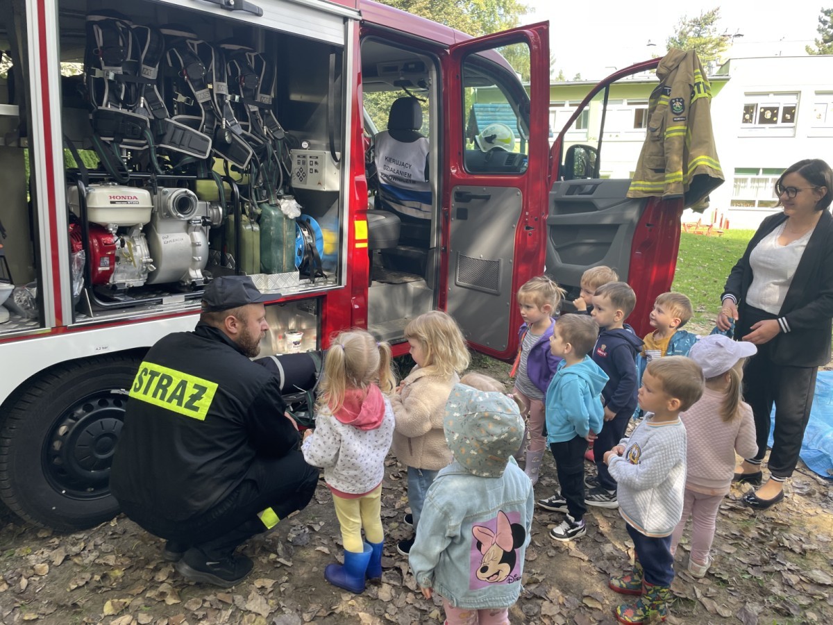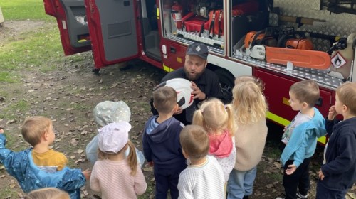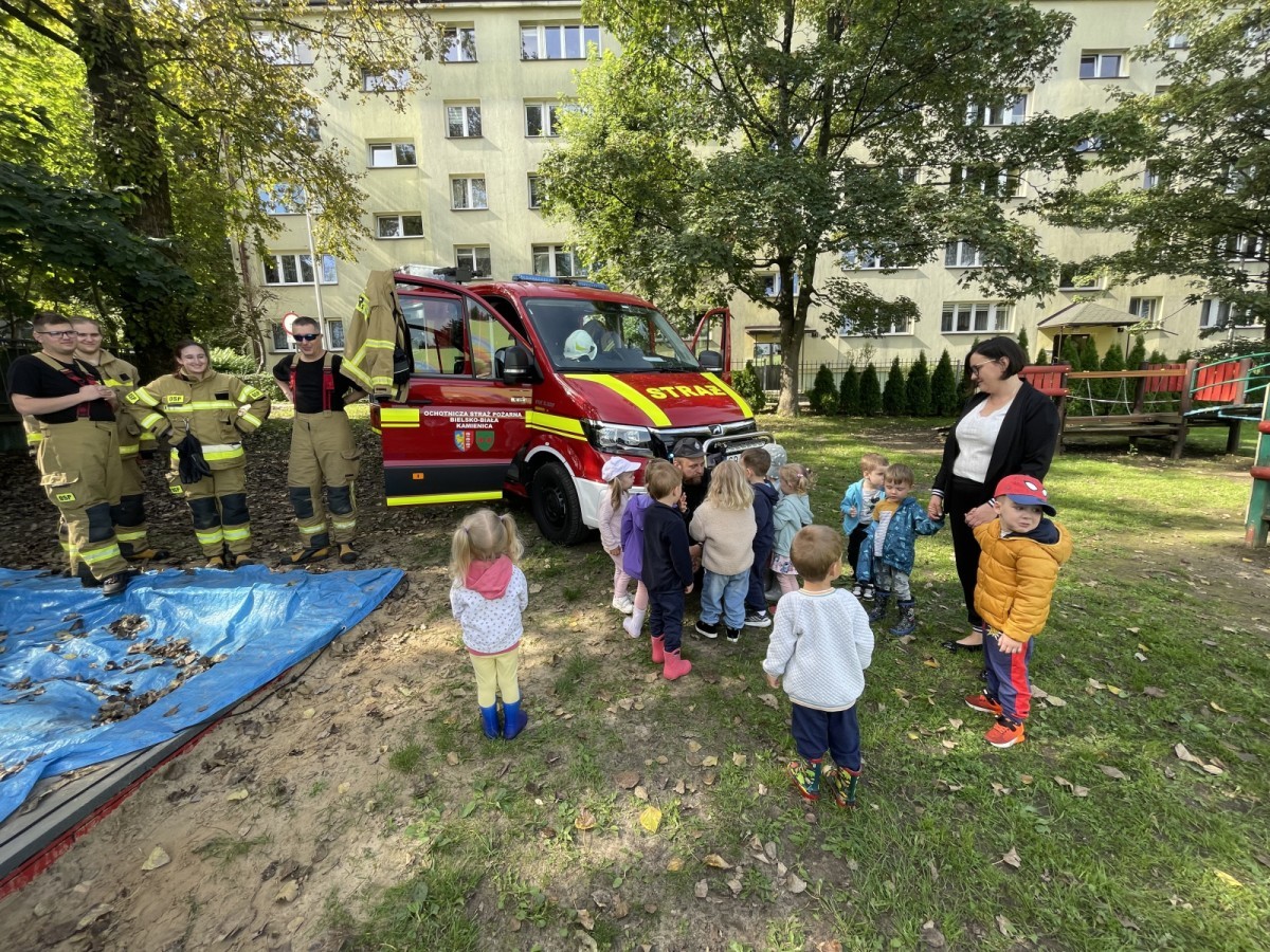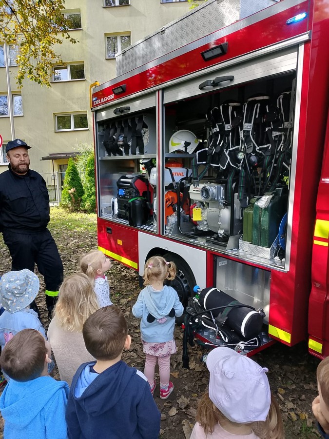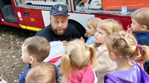 W Dniu 19.09.2025 dzieci z grupy PI - KOTKI miały przyjemność poznać ciężki i niebezpieczny, ale bardzo potrzebny zawód - strażaka . Odwiedziła nas odważna ekipa z Ochotniczej Straży Pożarnej Bielsko -Biała Kamienica , która opowiedziała o swojej pracy . Dzieci miały możliwość podziwiać wyposażenie, jakim dysponują strażacy podczas swojej pracy, poznały elementy ubioru, a ochotnicy mogli nawet przymierzyć hełm strażacki. Każdy mógł wejść do wozu i poczuć się jak prawdziwy strażak. Na koniec otrzymaliśmy słodko - mokrą niespodziankę :) DZIĘKUJEMY !