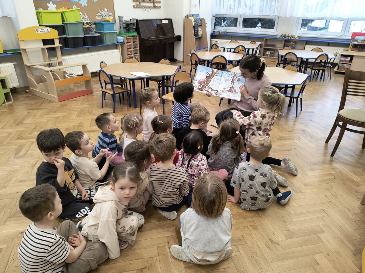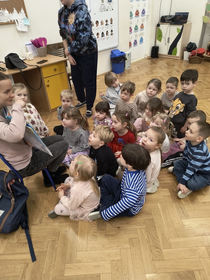 W naszym przedszkolu gościliśmy wyjątkowego gościa – panią bibliotekarkę, która zabrała dzieci w magiczny świat zimowej opowieści. Przedszkolaki z ogromnym zainteresowaniem wsłuchiwały się w piękną historię, pełną zimowego klimatu i niezwykłych przygód. ✨