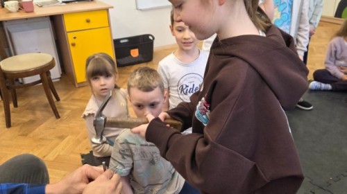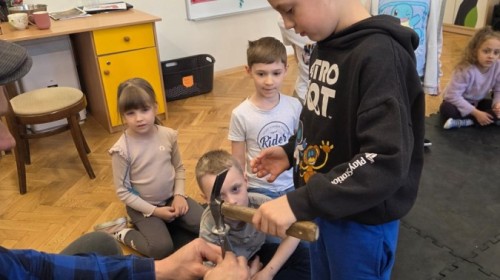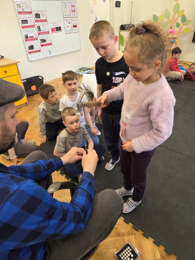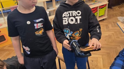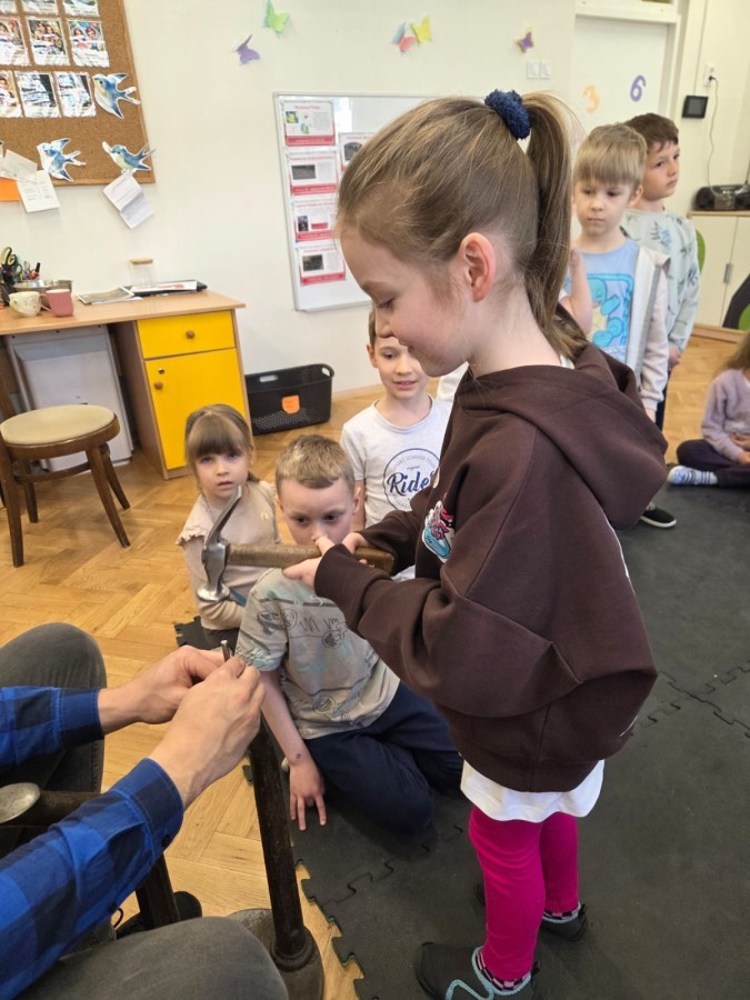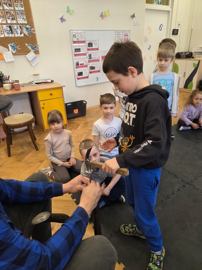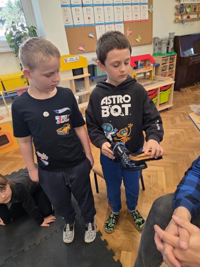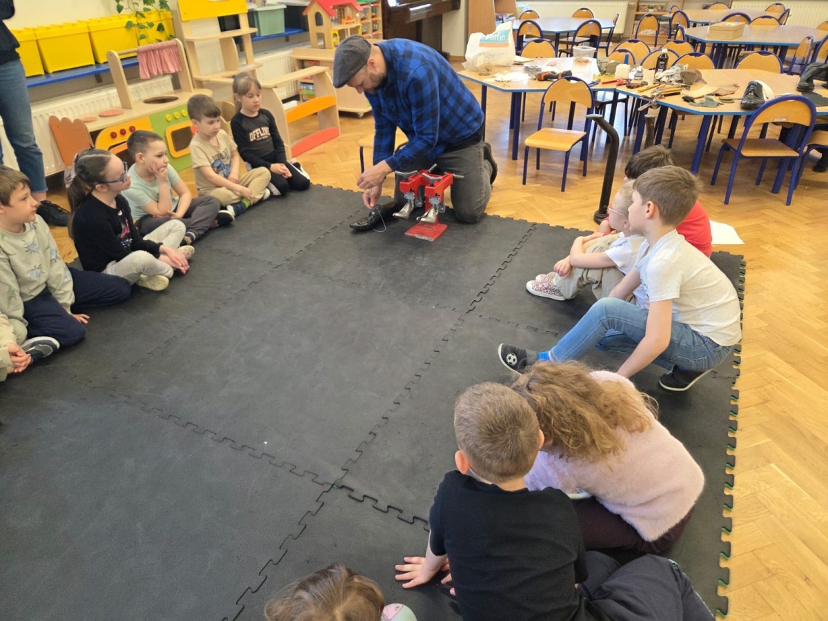 Podczas wizyty dzieci miały możliwość obejrzenia różnych narzędzi używanych przez szewca, a także dowiedziały się, jak wygląda proces tworzenia i naprawy butów. Z dużym zaciekawieniem słuchały opowieści o kolejnych etapach pracy, chętnie zadawały pytania i z uwagą słuchały odpowiedzi.
