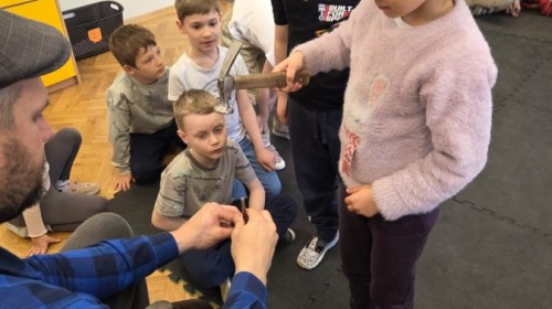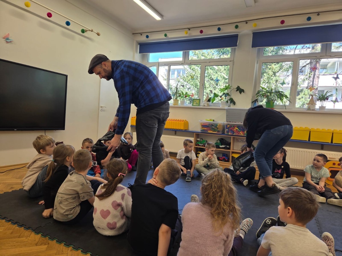 W grupie „Słoneczek” miało miejsce niezwykle ciekawe i inspirujące spotkanie – odwiedził nas szewc, który z ogromnym zaangażowaniem opowiedział dzieciom o swojej pracy. Było to bardzo wartościowe doświadczenie, dzięki któremu najmłodsi mogli bliżej poznać jeden z najstarszych zawodów rzemieślniczych. Gość w przystępny i interesujący sposób wyjaśnił, na czym polega jego codzienna praca oraz podzielił się najważniejszymi sekretami swojego fachu.