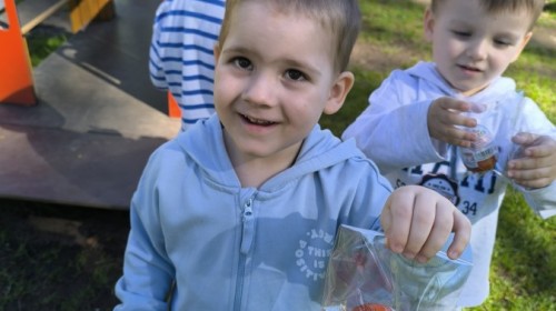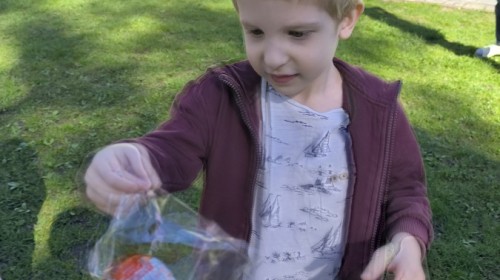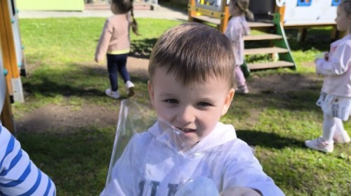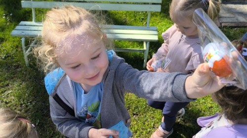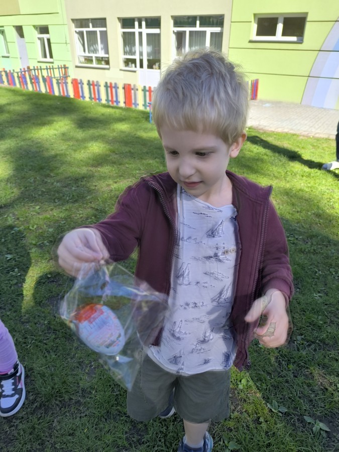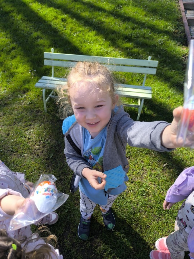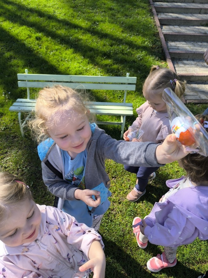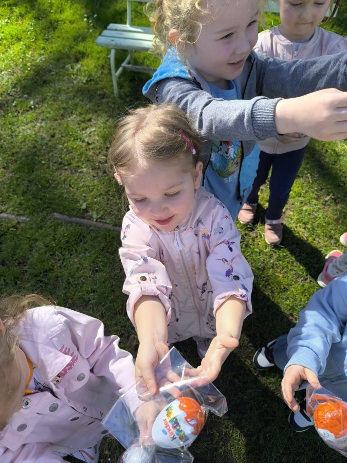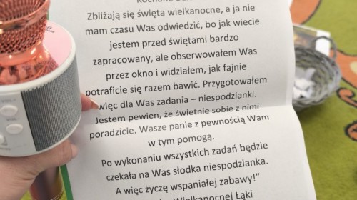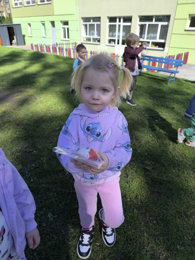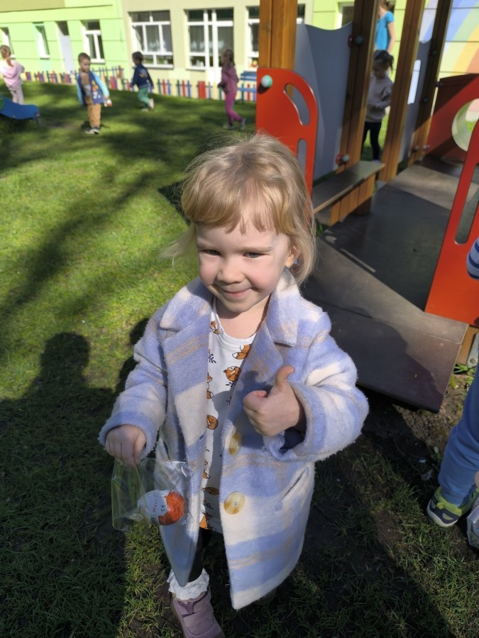 16 kwietnia do naszego przedszkola zawitał niespodziewanie Wielkanocny Zajączek. Już od samego rana wszyscy z niecierpliwością wypatrywali śladów zajączka. Dzieci odnalazły koszyczek z listem od Wielkanocnego Zajączka, który prosił dzieci o pomoc w odszukaniu zaginionych jajeczek, jak również dzieci wykonały wszystkie zadania, które ukryte były w liście. Po ich wykonaniu nasze przedszkolaki udały się wyznaczoną trasą szukać śladów Wielkanocnego Gościa. Z wielkim zapałem dzieci szukały w ogrodzie jajek niespodzianek , ale to nie był koniec niespodzianek, ponieważ w sali zajączek ukrył jeszcze jeden prezent :)