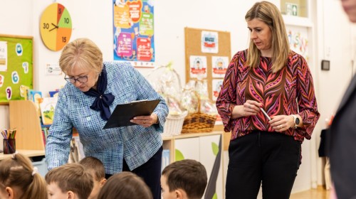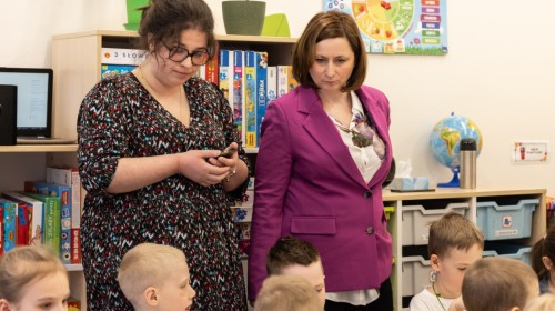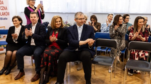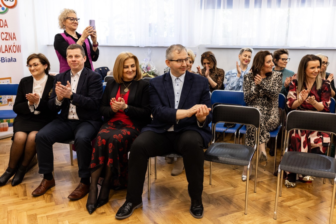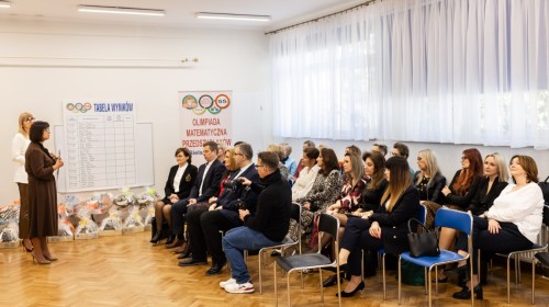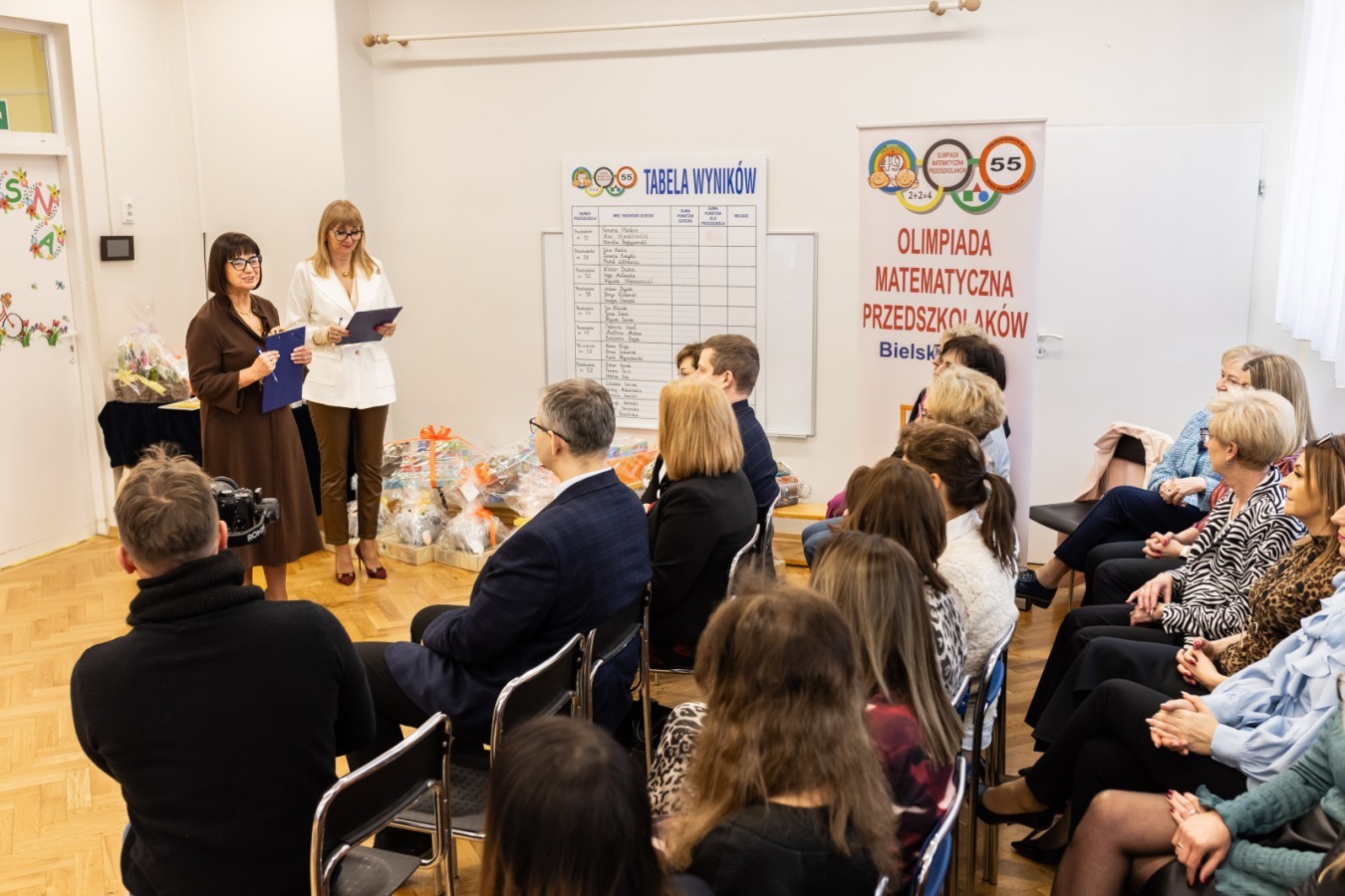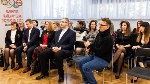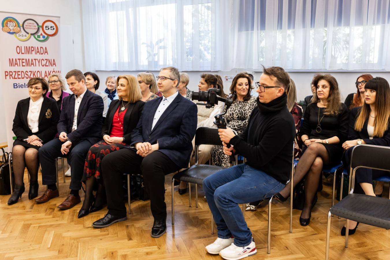 Wśród zaproszonych gości byli: p. dr Agnieszka Herma – Naczelnik Wydziału Edukacji i Sportu wraz z pracownikami p. Danutą Paluch- st. inspektorem, Joanna Mentel inspektor, p. Krzysztof Bańczyk – dyrektor Centrum Usług Wspólnych w B-B, p. Alina Janosz – zastępca dyrektora Centrum Usług Wspólnych w B-B, p. Magdalena Gacek-Książek – starszy wizytator delegatury w Bielsku-Białej, p. Marta Jurasz – dyrektor BBODN w B-B, Małgorzata Konarzewska – konsultant ds. wychowania przedszkolnego BBODN, p. Halina Juraszczyk- konsultant ds. nauczania matematyki BBODN, p. Joanna Popławska-Owczarz- konsultant ds. edukacji wczesnoszkolnej BBODN oraz dyrektorzy bielskich placówek oświatowych.