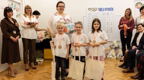 Wszystkie dzieci otrzymały bardzo atrakcyjne nagrody ufundowane przez sponsorów: , wydawnictwo „Nowa Era”, „MAC Edukacja”, V Liceum Ogólnokształcące w B-B oraz Rady Rodziców z przedszkoli organizujących olimpiadę.