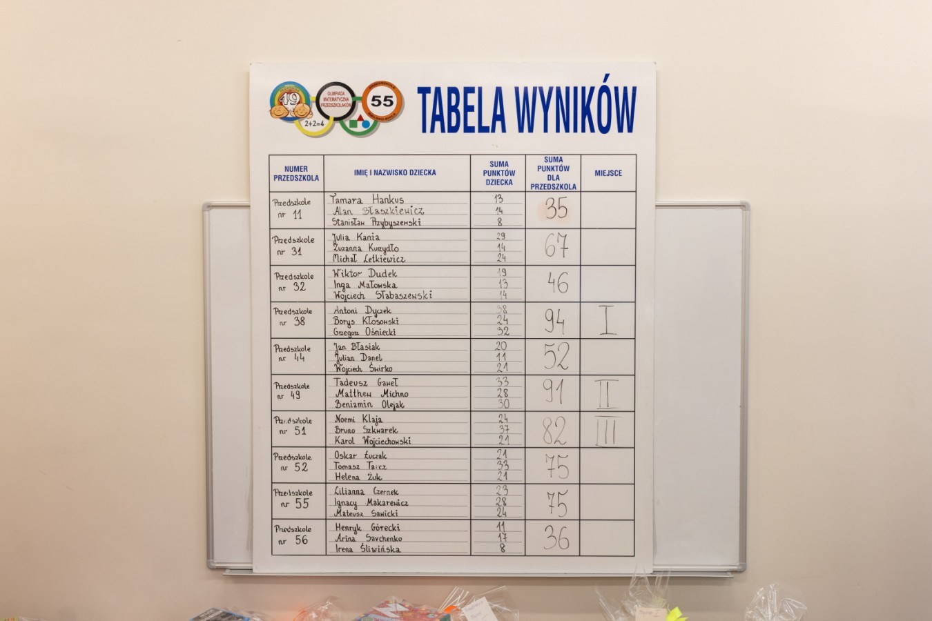 W tym roku największą liczbę punktów zdobyło Przedszkole nr 38, drugie miejsce otrzymało Przedszkole nr 49, a trzecie Przedszkole nr 51.