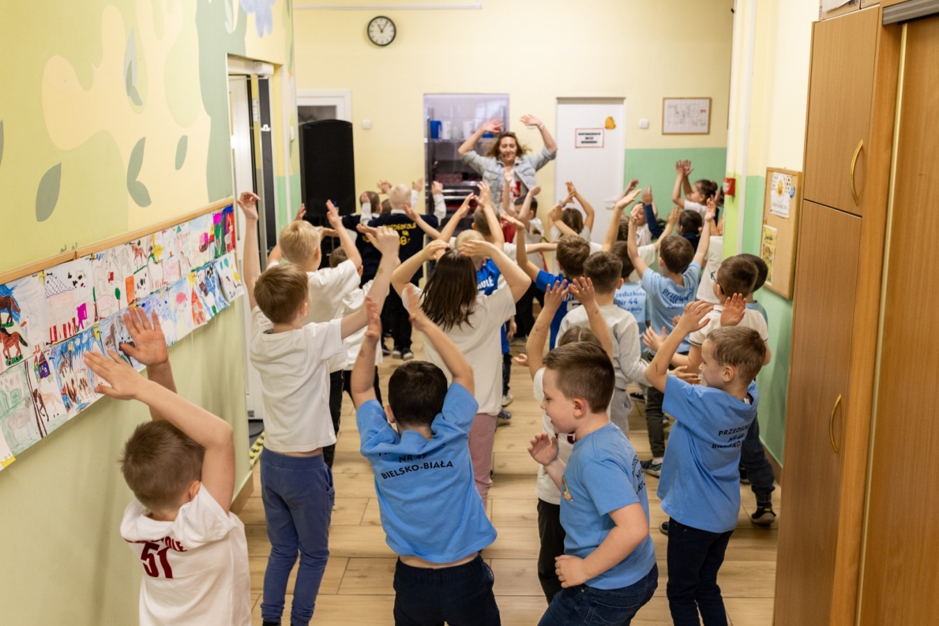Dla naszych olimpijczyków przygotowana była również niespodzianka muzyczna, w postaci zumby z panią Joanną Wałęgą z firmy „Kolorowy Świat Animacji”.