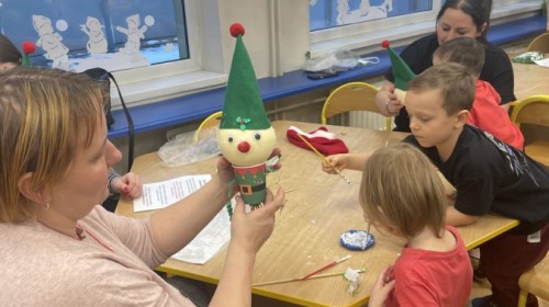 W piątkowe popołudnie Rodzice razem z dziećmi z grupy "Kotki" przenieśli się w magiczny świat do Krainy Elfów. Wspólnie przygotowywali się na przyjście Mikołaja.
