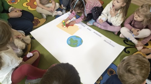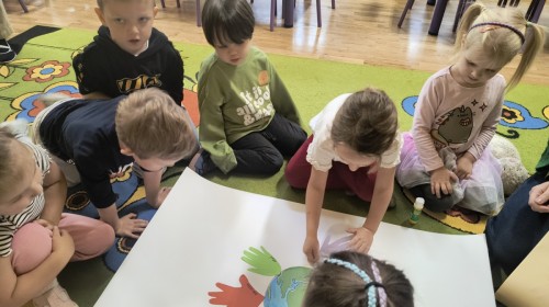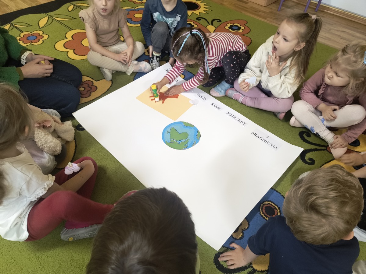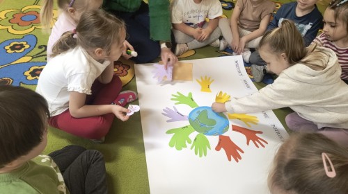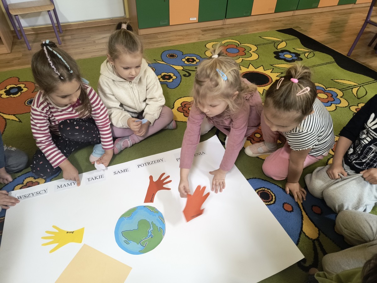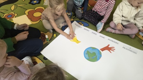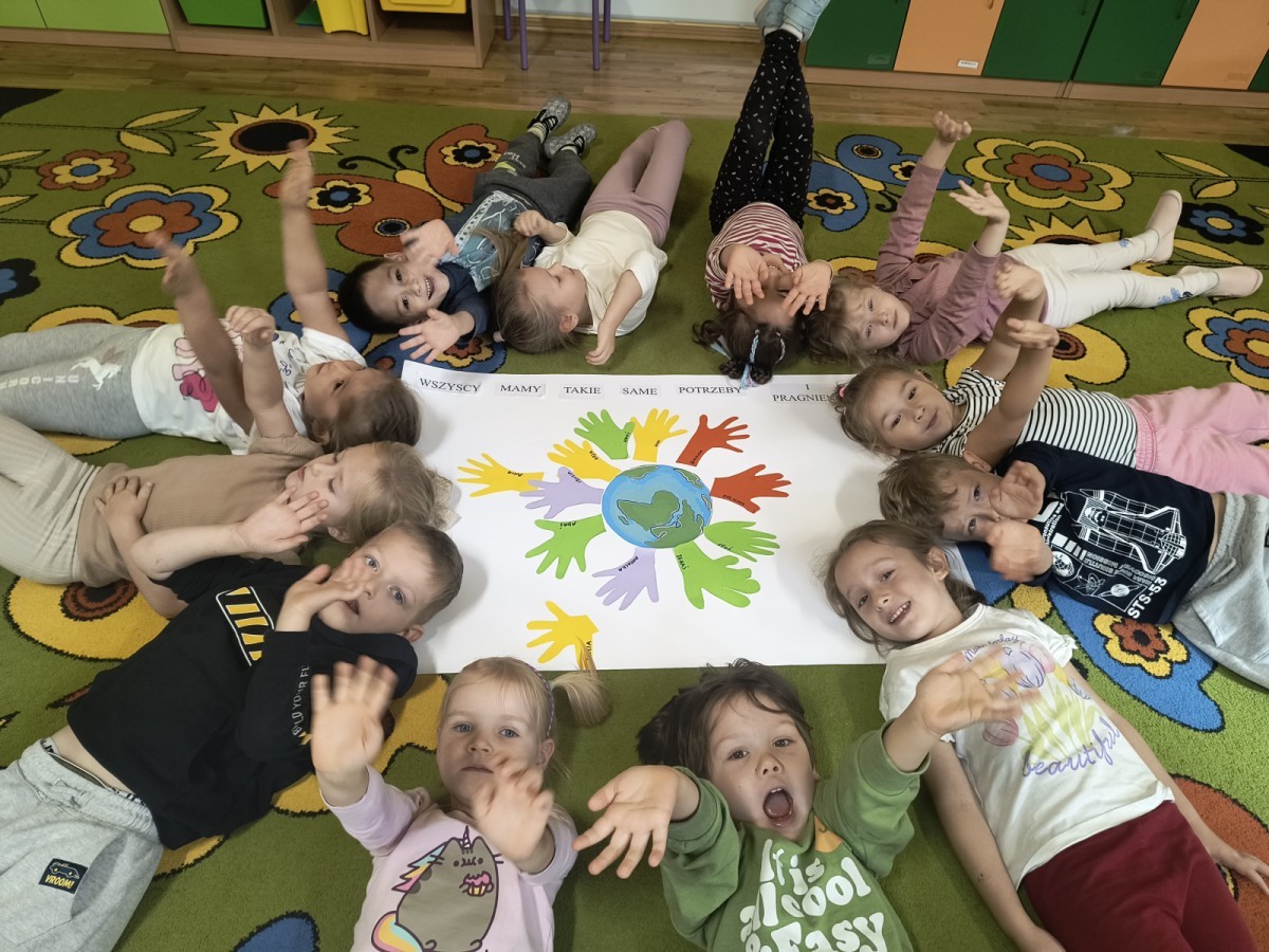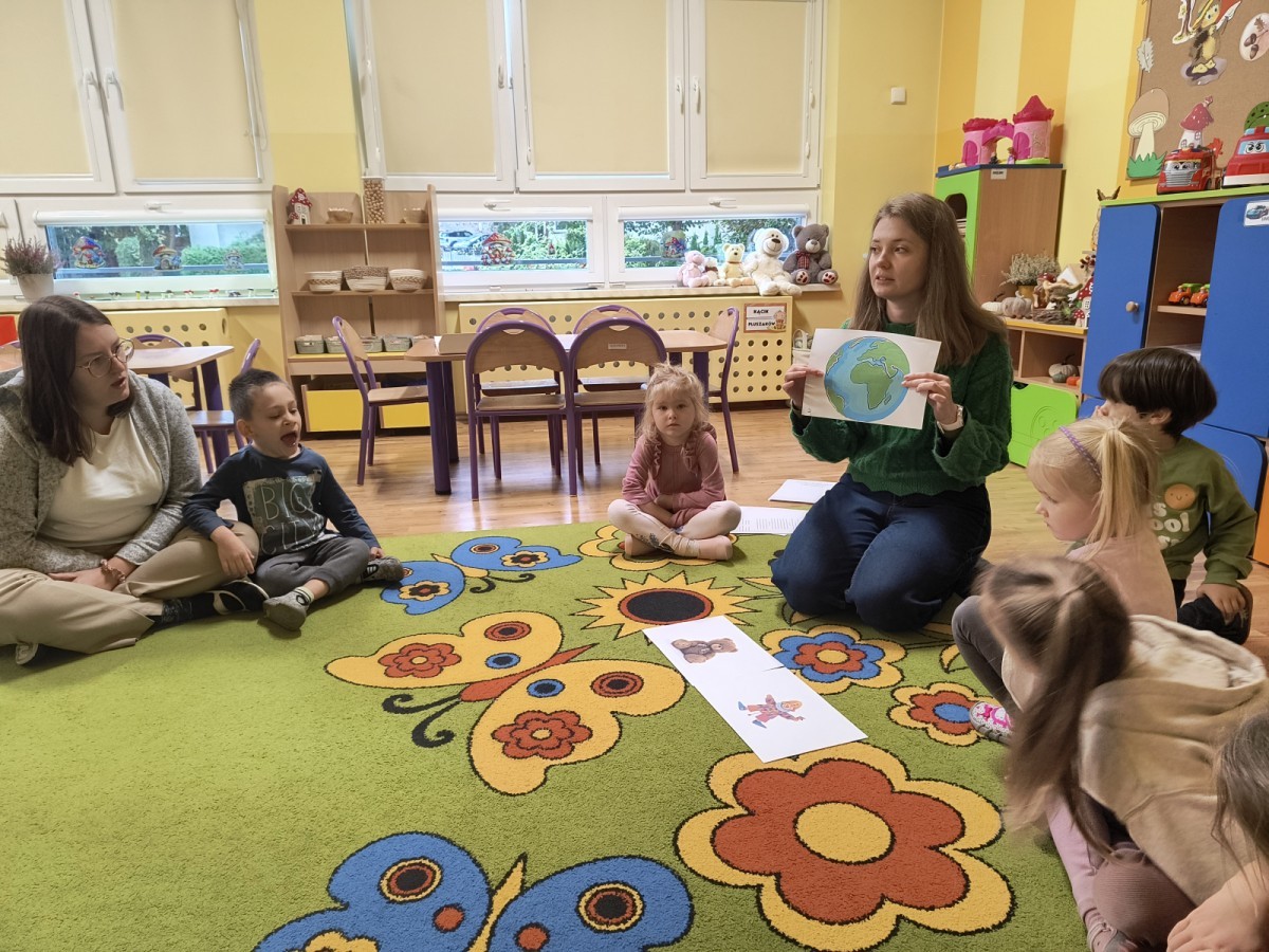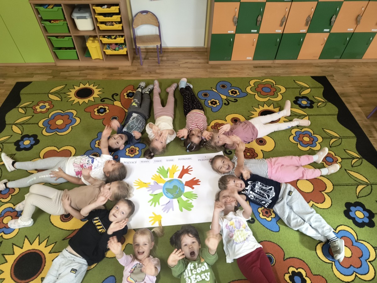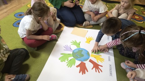 Pani Ada poprzez wspólne zabawy, aktywności, rozmowę oraz opowiadania o pajacyku i misiu, przybliżyła dzieciom tematykę tolerancji, różnorodności, inności i wzajemnego szacunku.