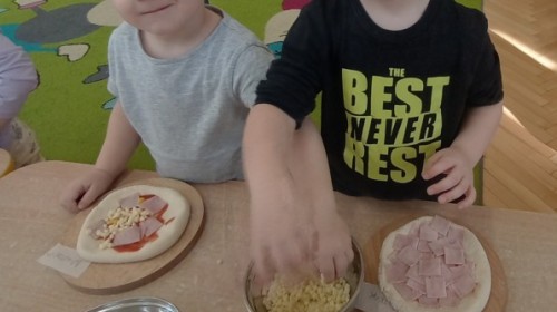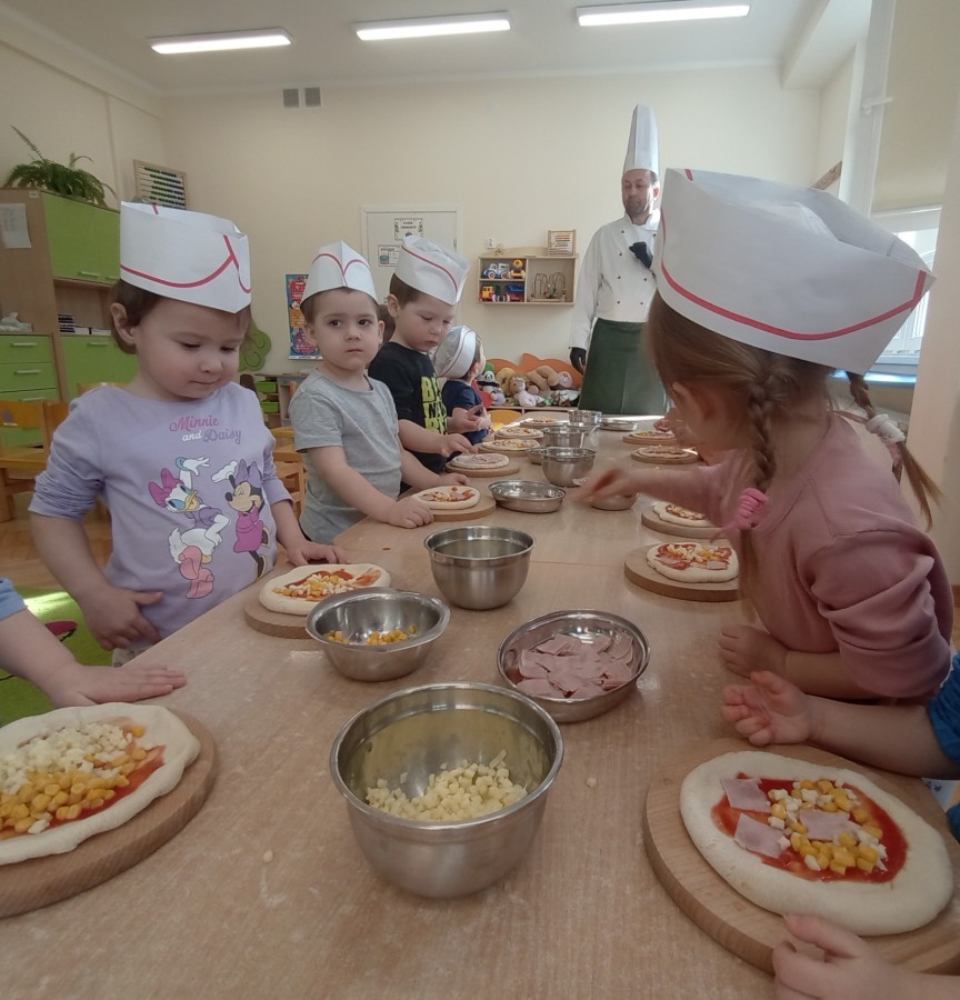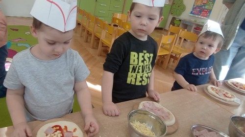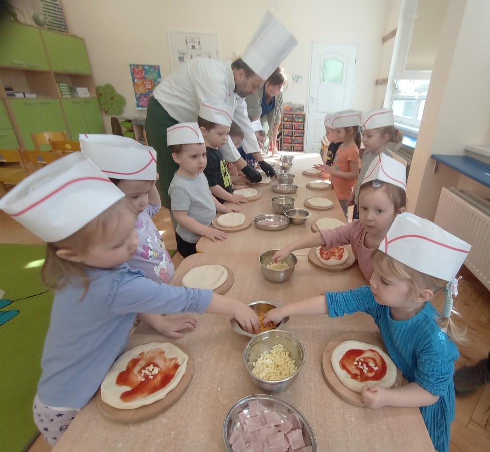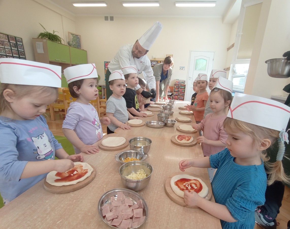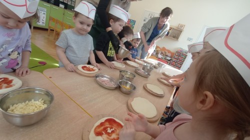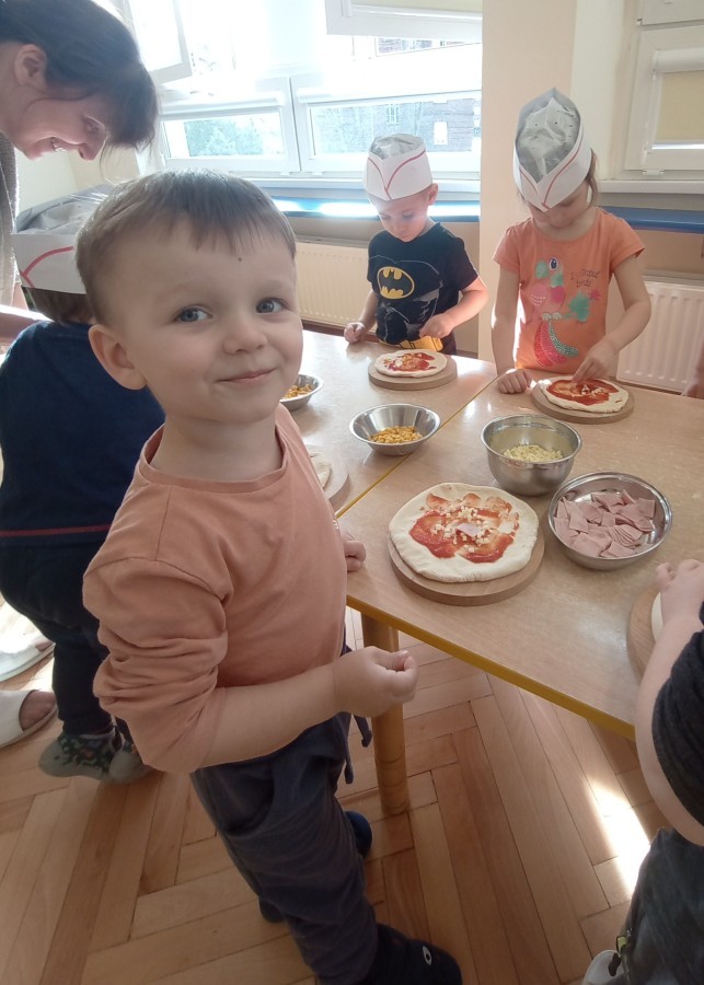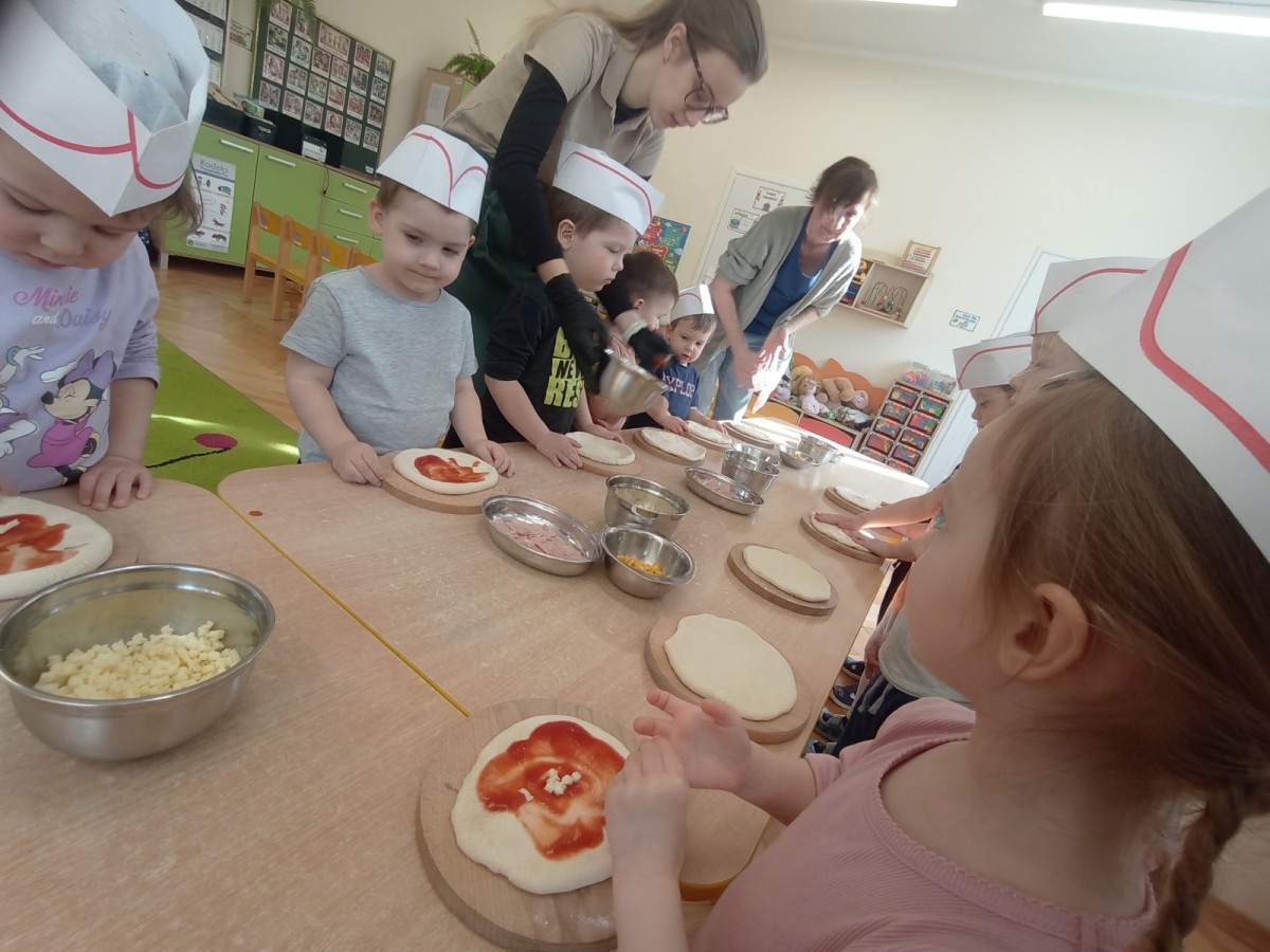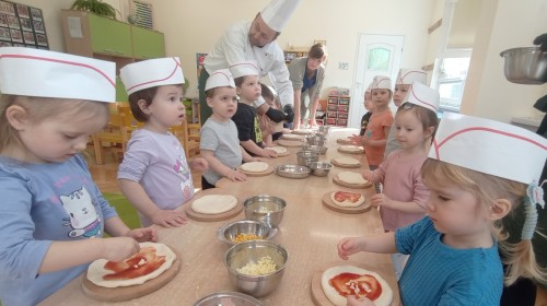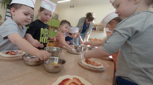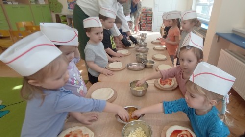 Dzisiaj w naszym Przedszkolu Przedszkolaki z grup młodszych - "Pszczółki", "Muchomorki" i "Wilczki", miały okazję wziąć udział w warsztatach z robienia pizzy, prowadzonych przez pana Augustyna. Dzieci miały okazję same przygotować pizze, które potem ze smakiem zjadły w swoich salach.