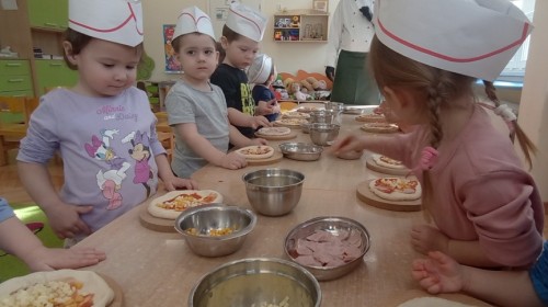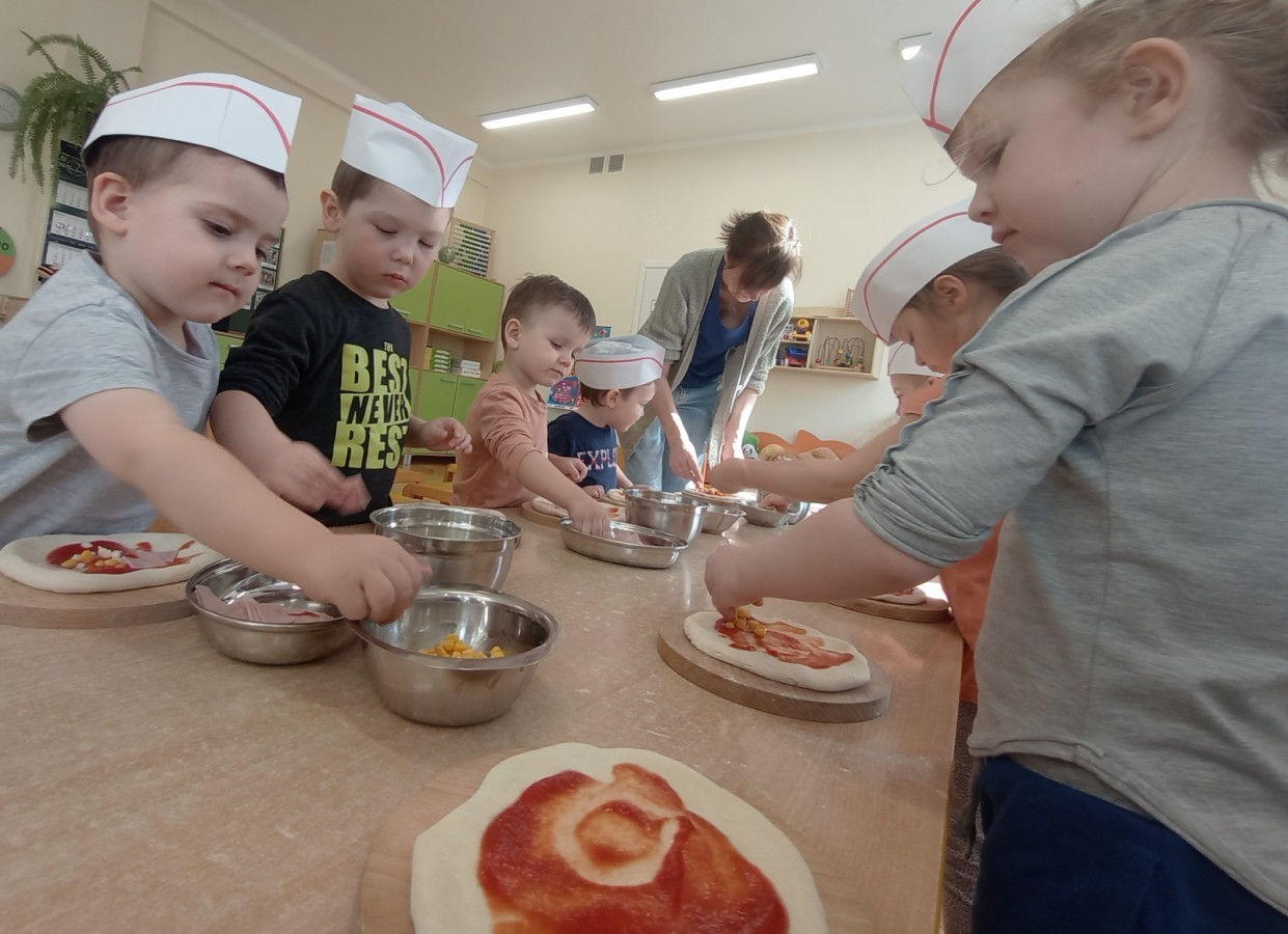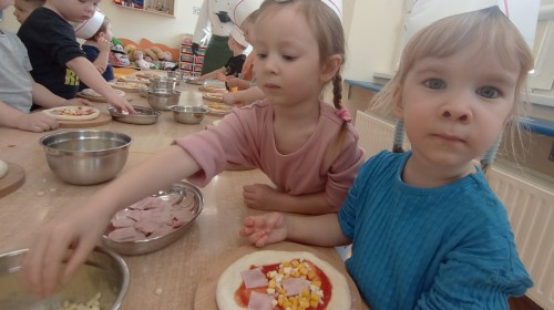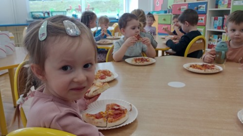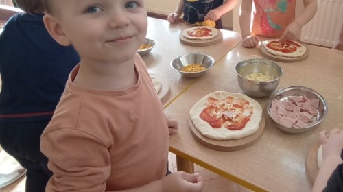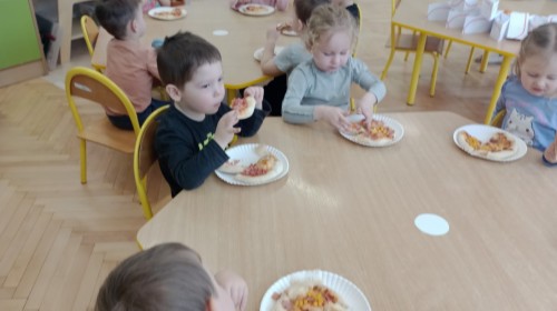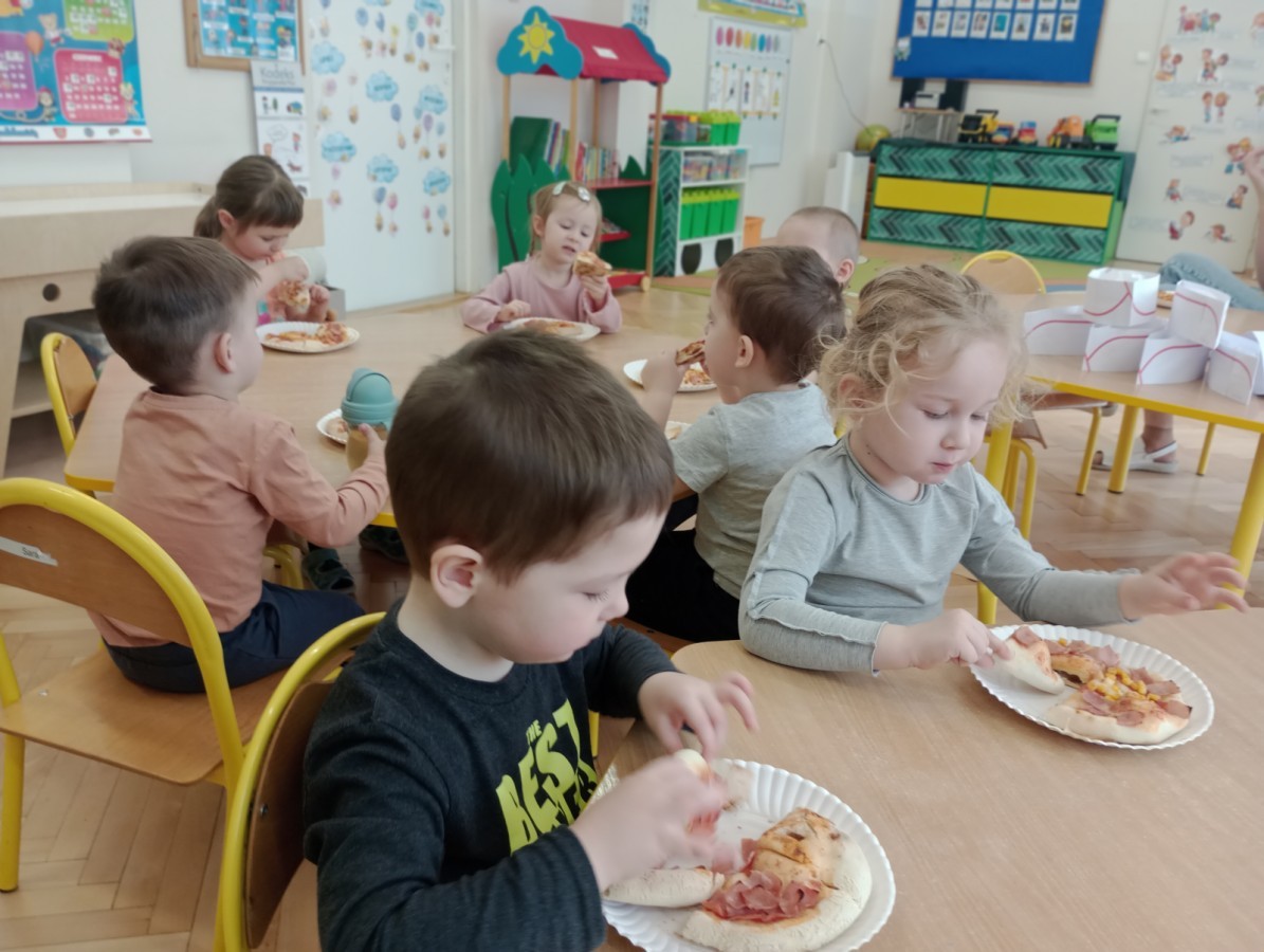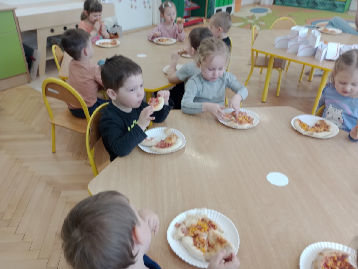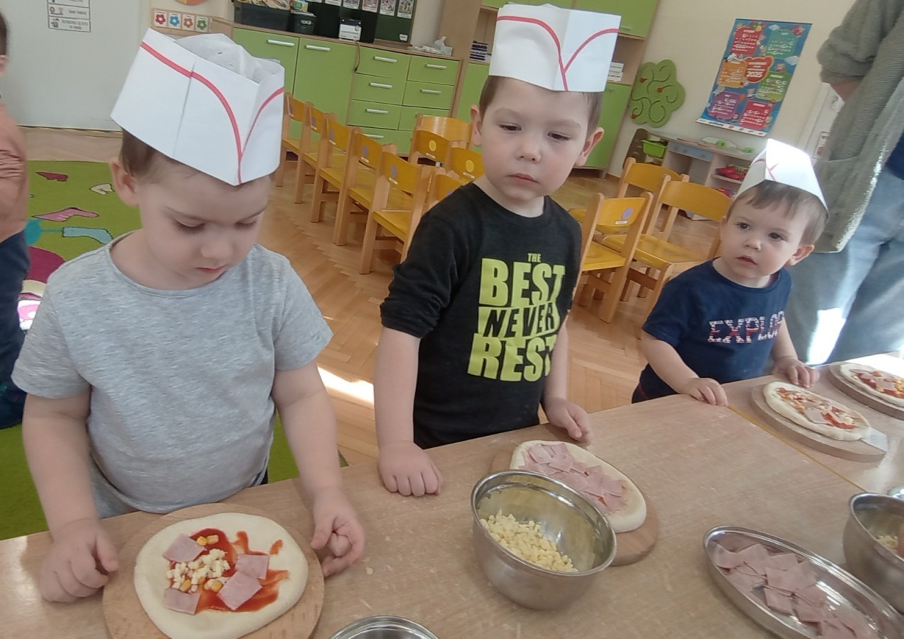 Dzisiaj w naszym Przedszkolu Przedszkolaki z grup młodszych - "Pszczółki", "Muchomorki" i "Wilczki", miały okazję wziąć udział w warsztatach z robienia pizzy, prowadzonych przez pana Augustyna. Dzieci miały okazję same przygotować pizze, które potem ze smakiem zjadły w swoich salach.
