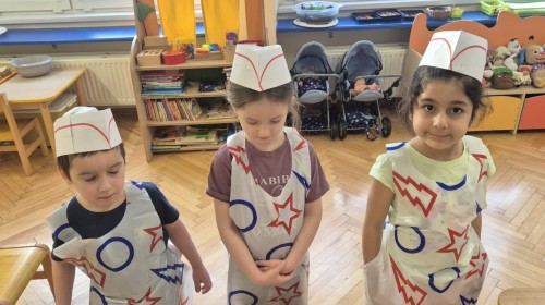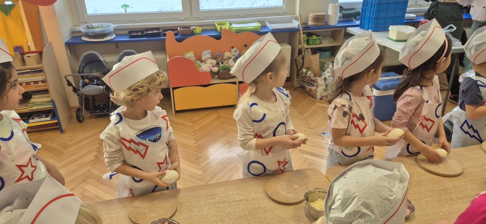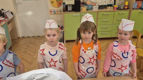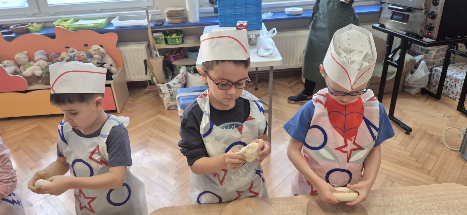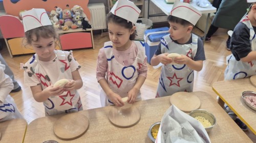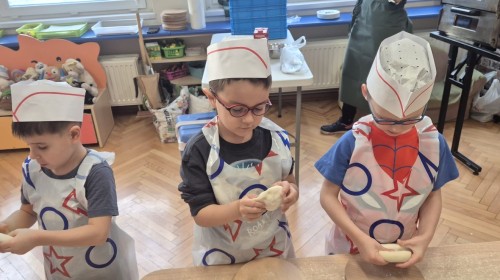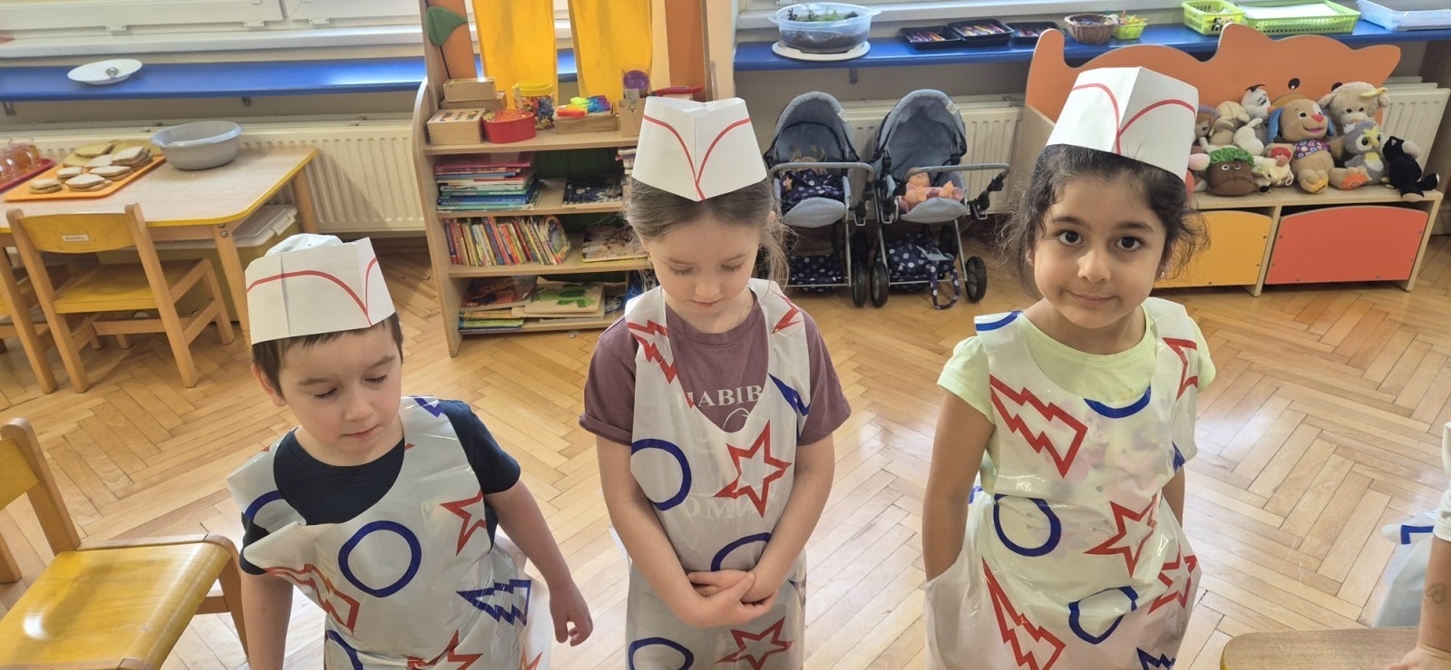 Na czas warsztatów dzieci założyły specjalne czapki pizzermana i fartuszki, co sprawiło, że poczuły się jak w prawdziwej pizzerii! 😊🎩