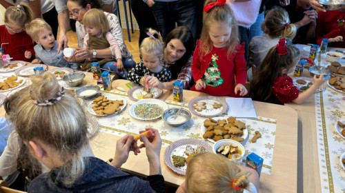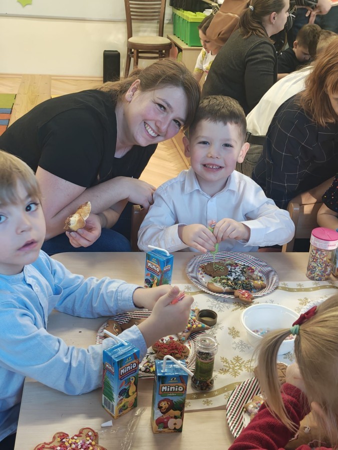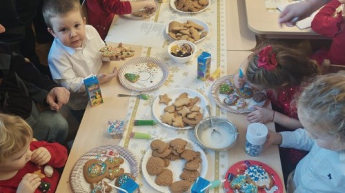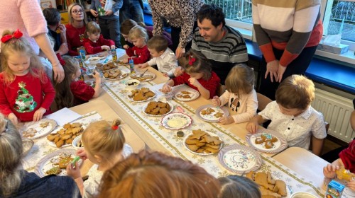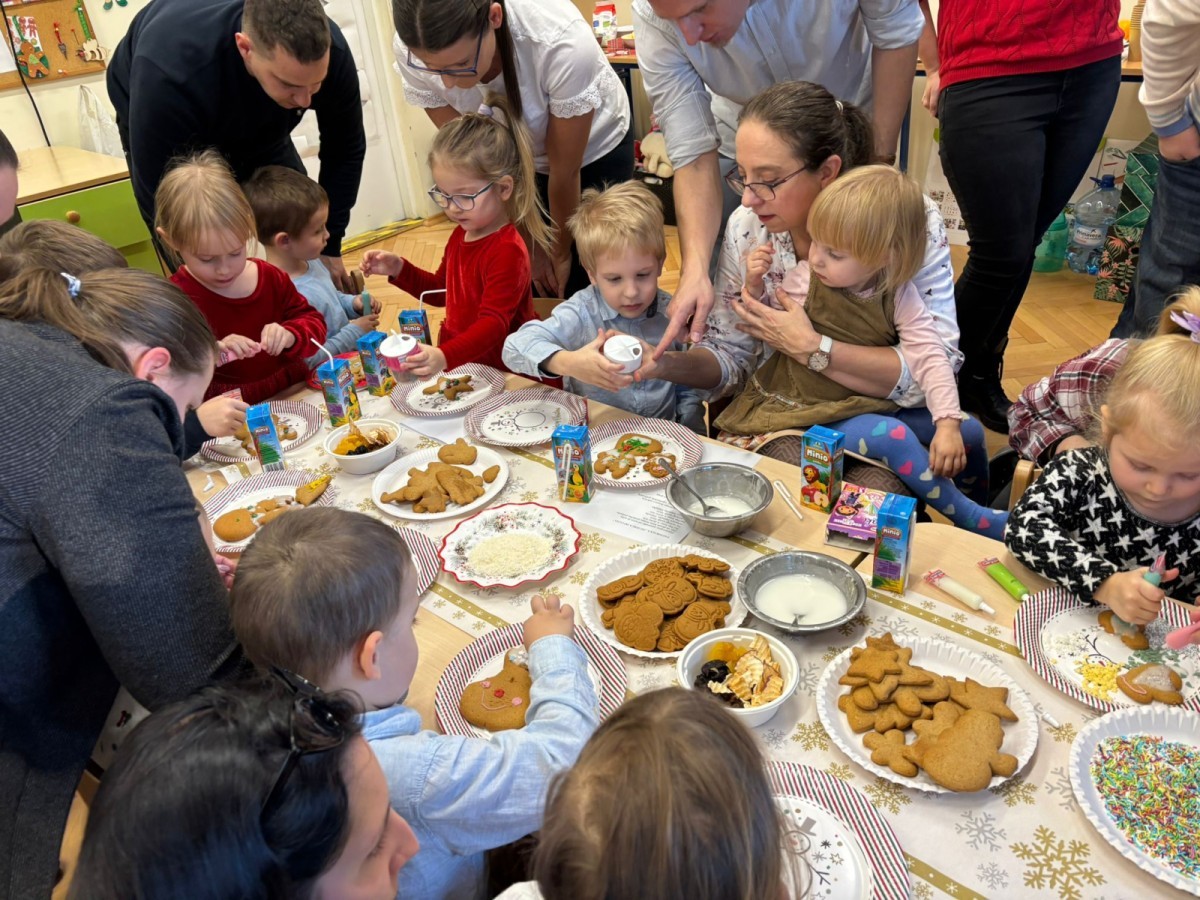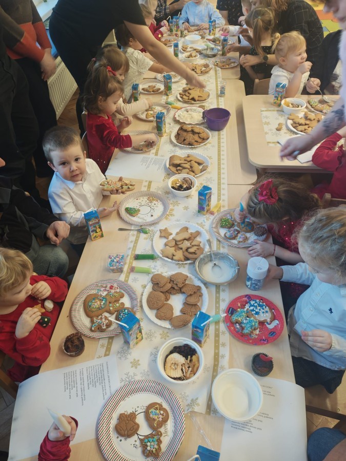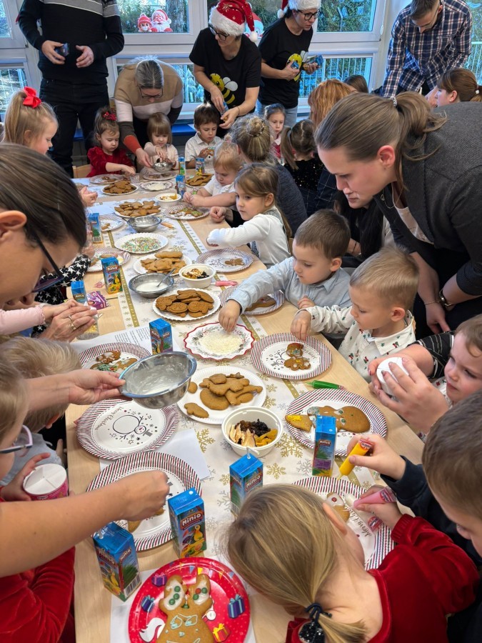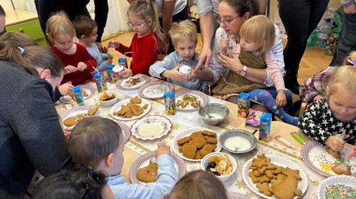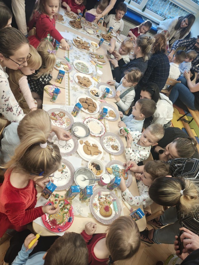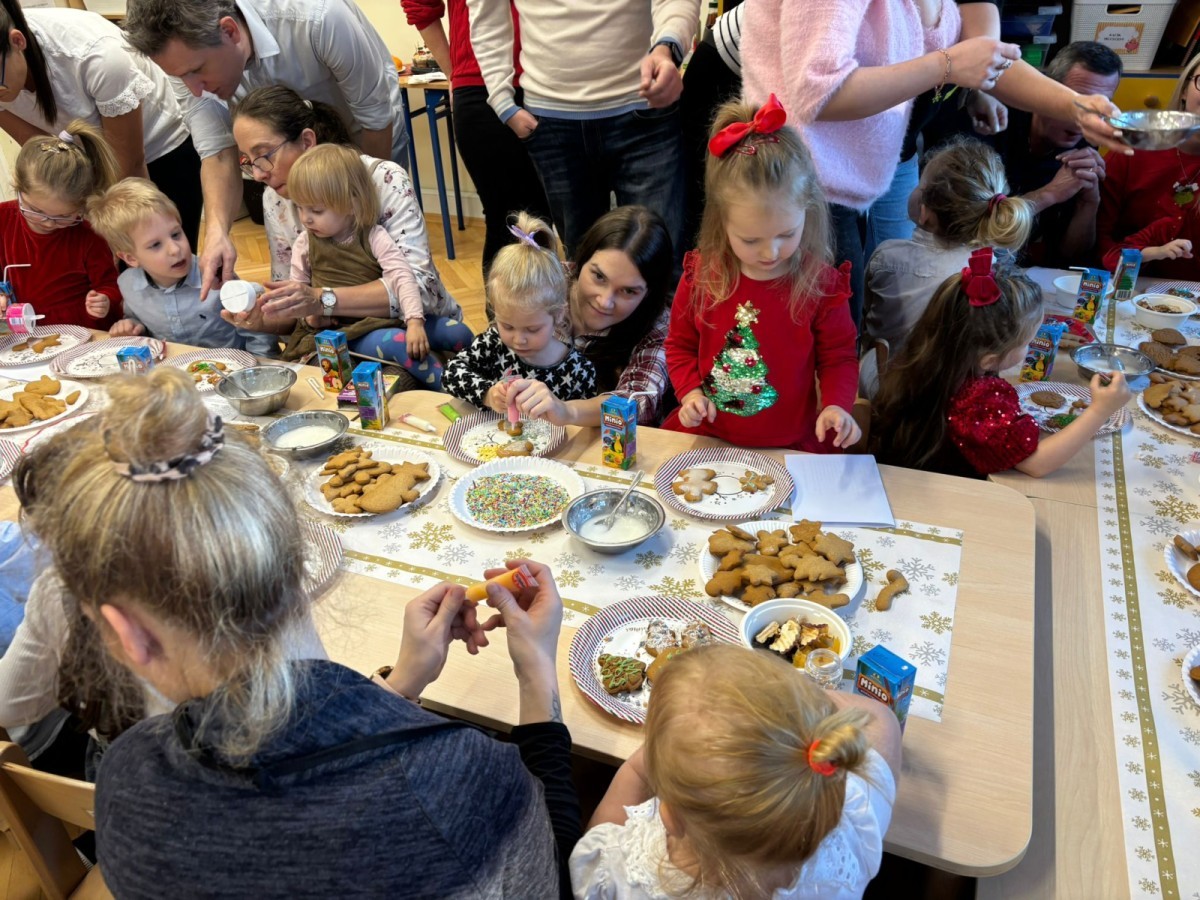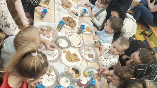 Następnie przedszkolaki wspólnie z rodzicami ozdabiały pierniki, wykazując się kreatywnością i pomysłowością.