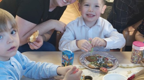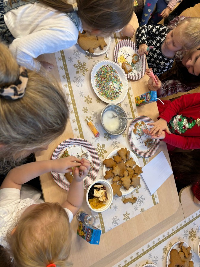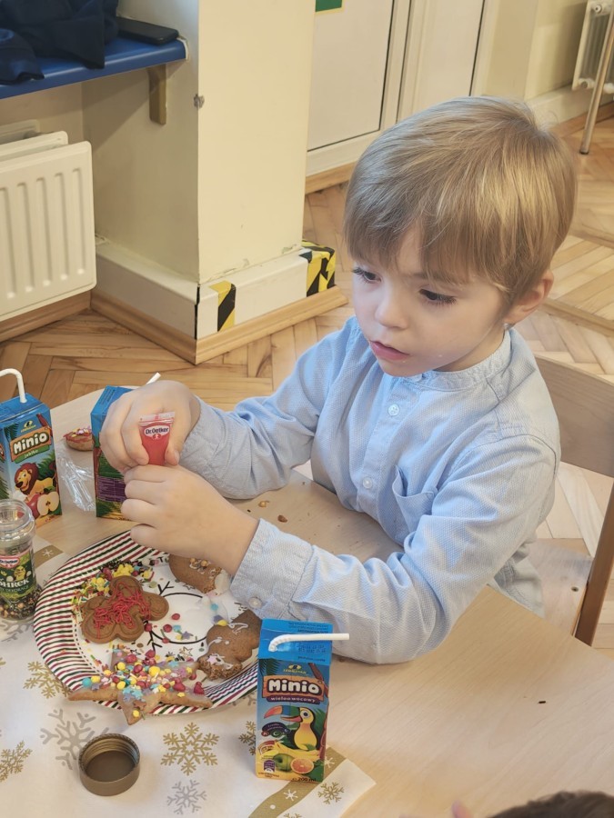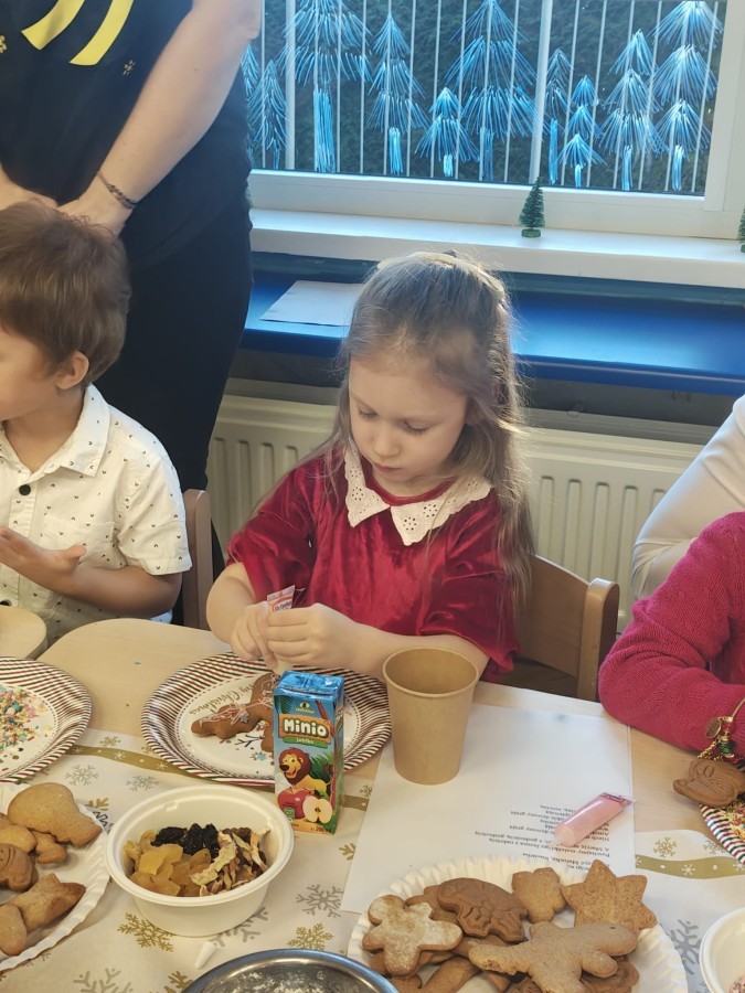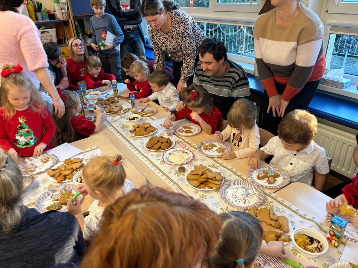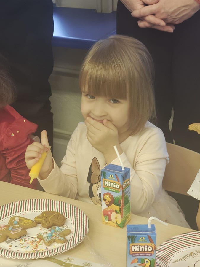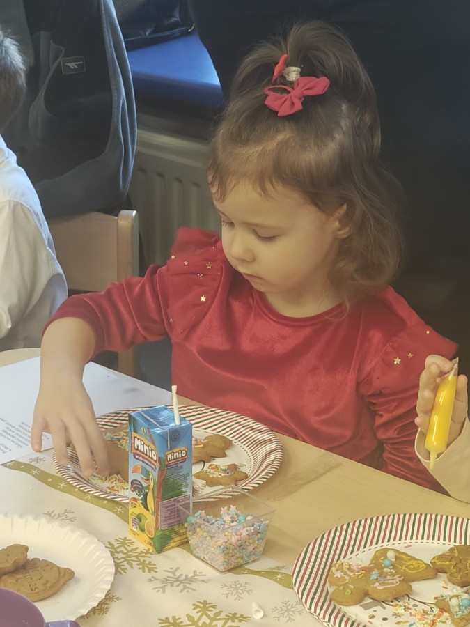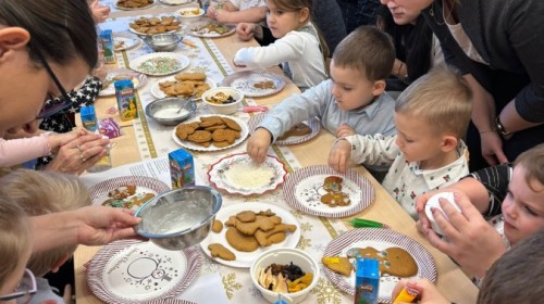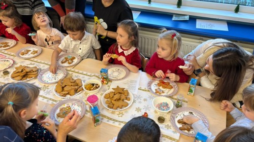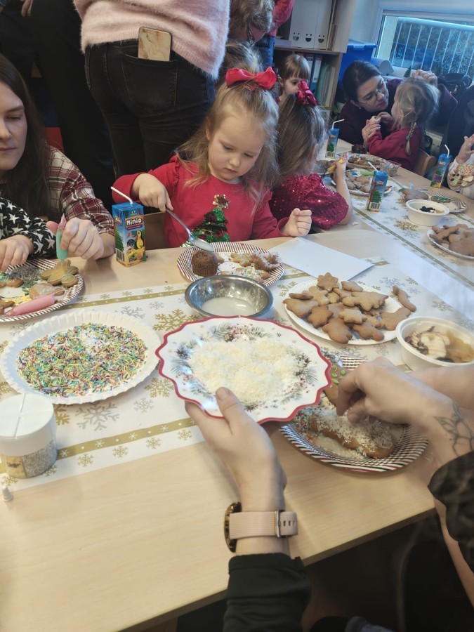 Następnie przedszkolaki wspólnie z rodzicami ozdabiały pierniki, wykazując się kreatywnością i pomysłowością.