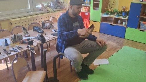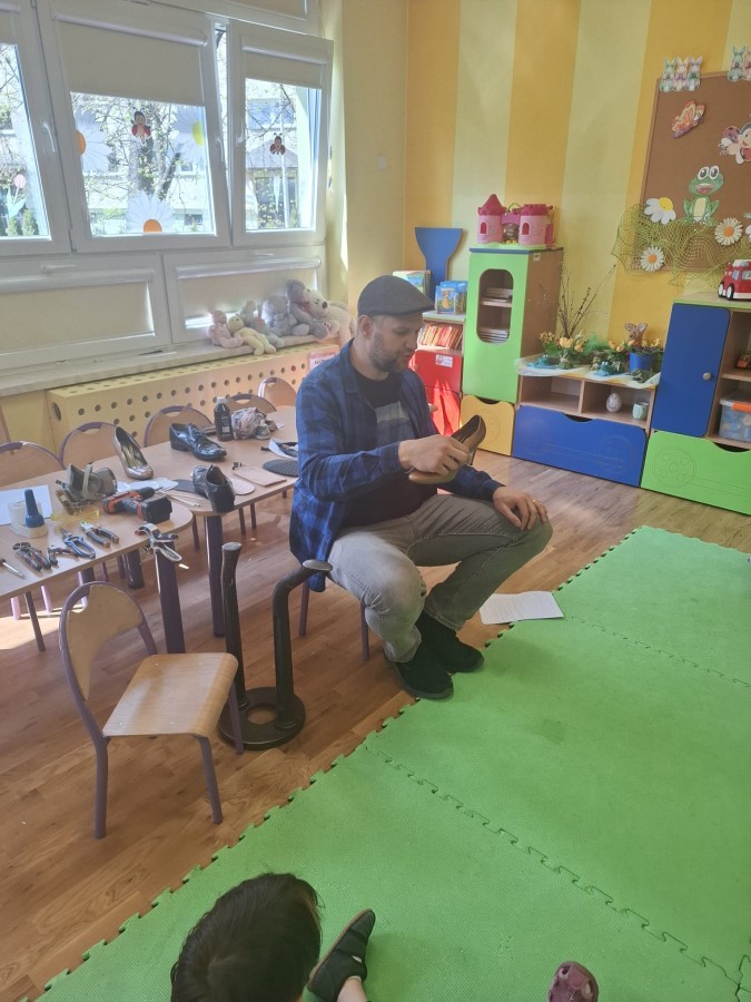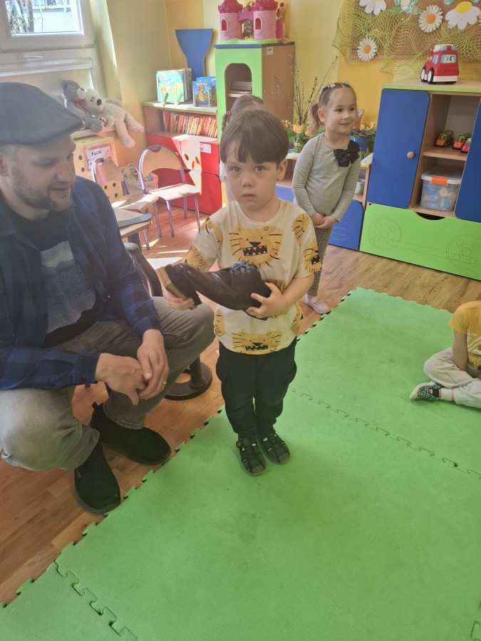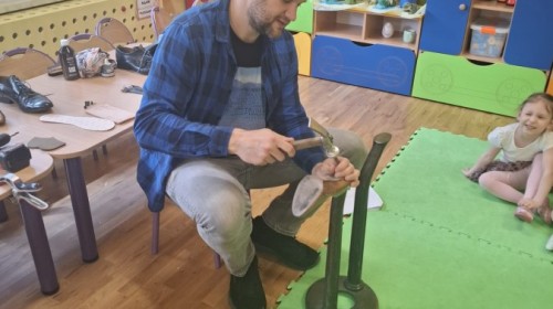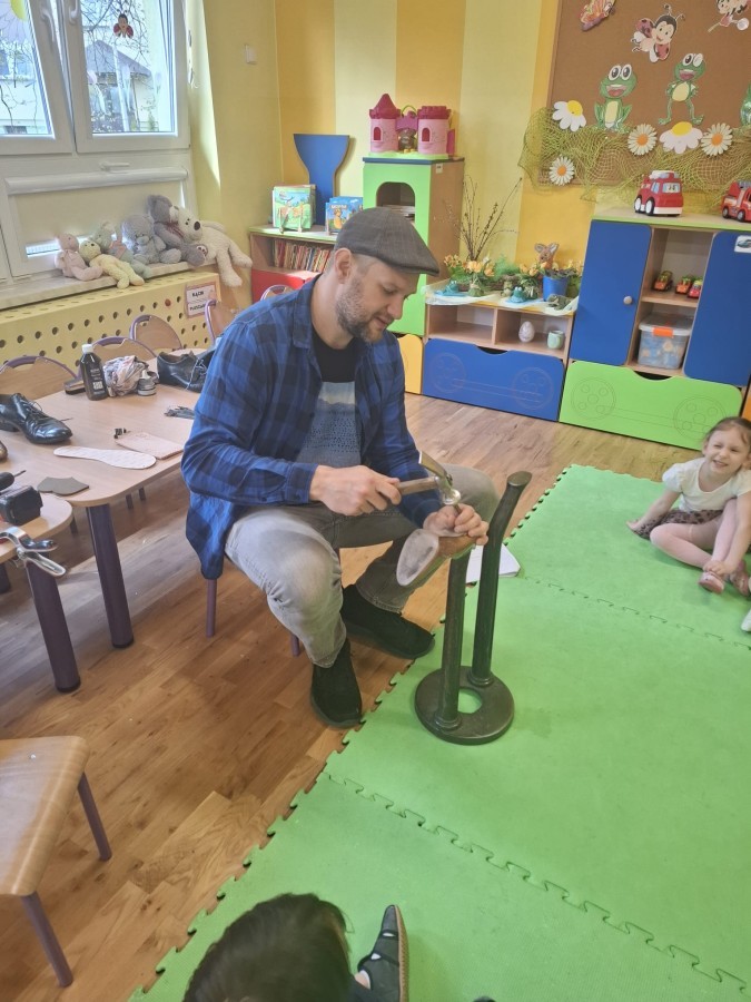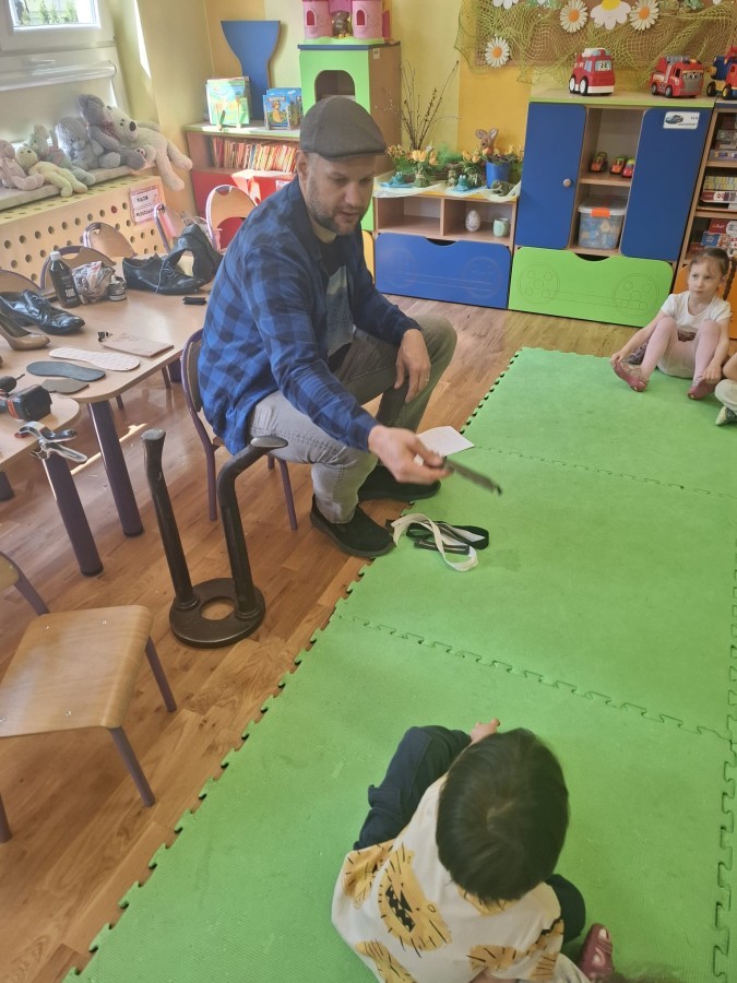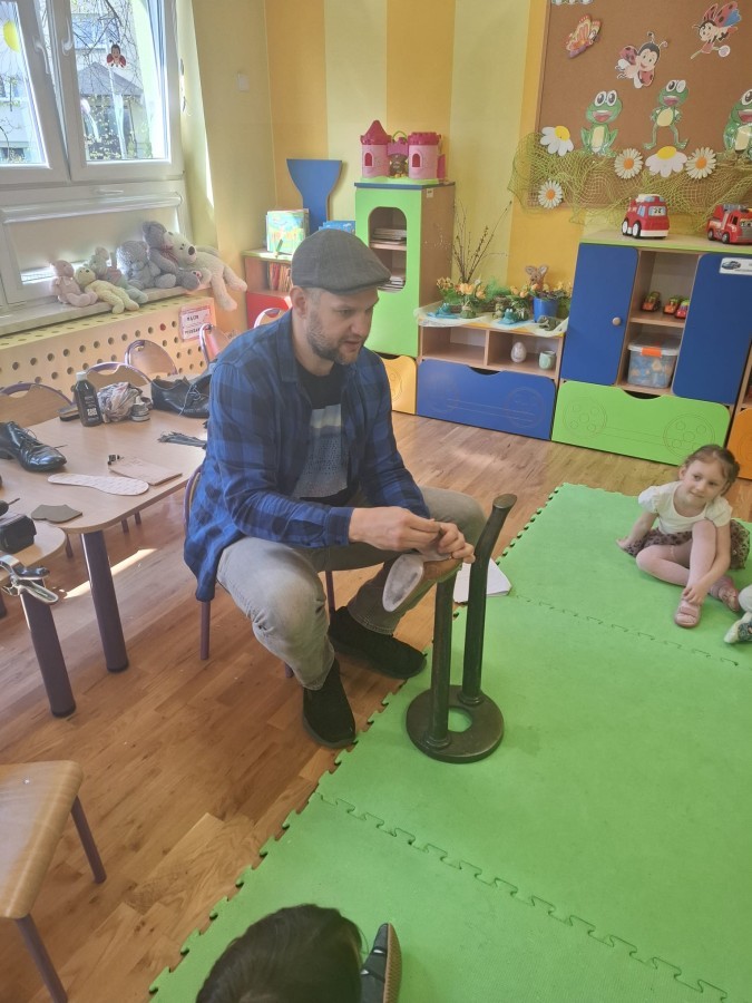 W dniu 21kwietnia nasze przedszkolaki wzięły udział w niezwykłych warsztatach rzemieślniczych! Gościliśmy mistrza szewskiego, który odkrył przed nami tajemnice swojego ginącego, ale jakże fascynującego zawodu.