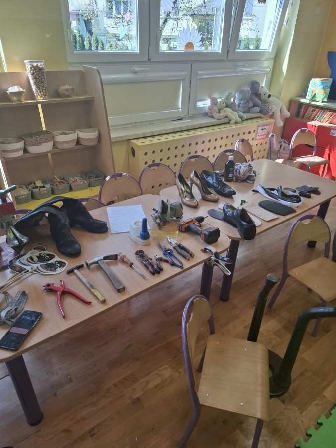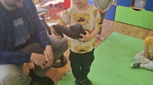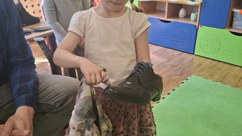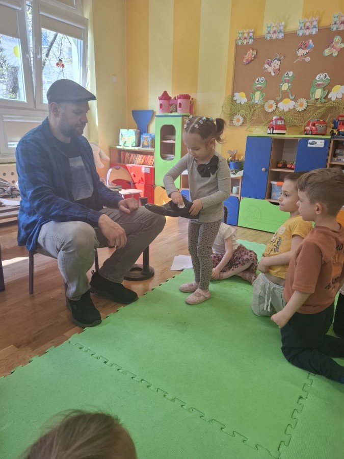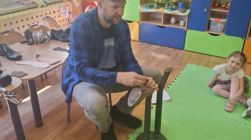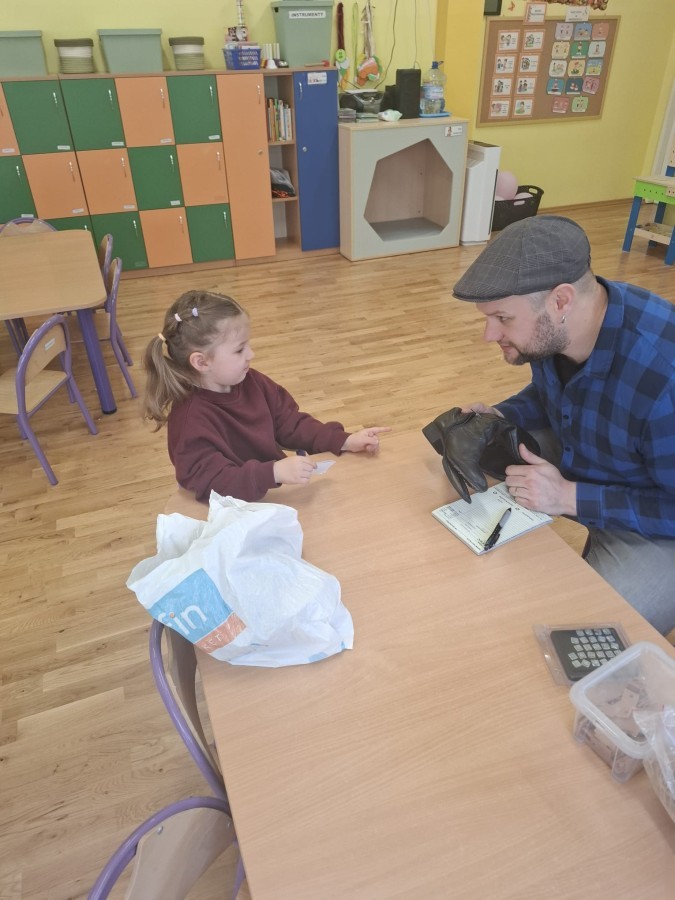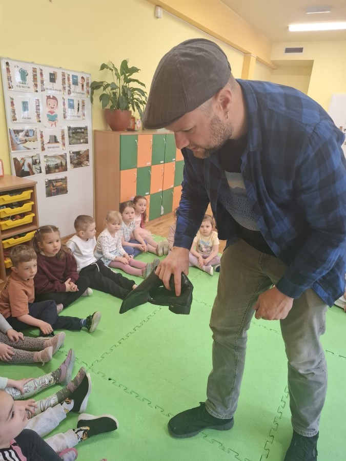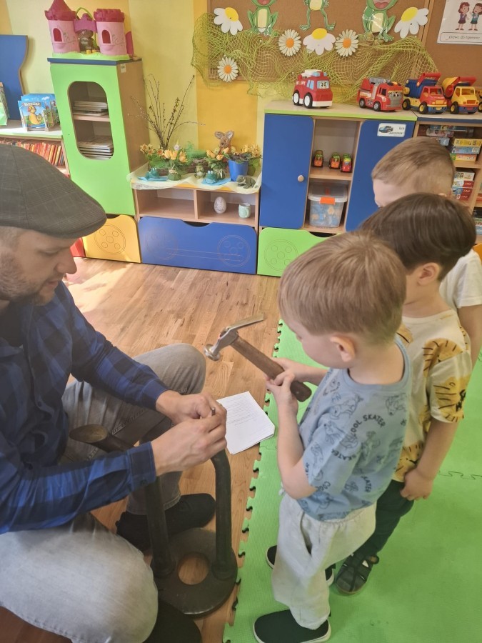 W dniu 21kwietnia nasze przedszkolaki wzięły udział w niezwykłych warsztatach rzemieślniczych! Gościliśmy mistrza szewskiego, który odkrył przed nami tajemnice swojego ginącego, ale jakże fascynującego zawodu.