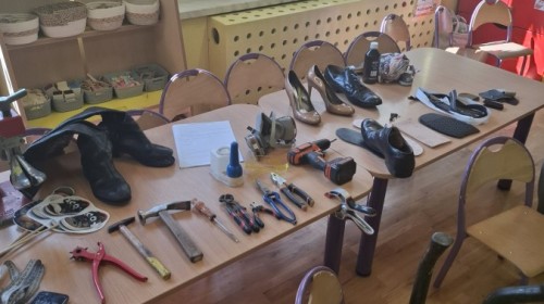 Dzieci oglądały prawdziwe kopyta szewskie, młotki, szczypce oraz grube nici i zamki,