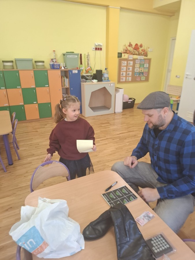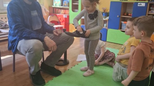 miały okazję dotykać różnych rodzajów skór i materiałów używanych do produkcji butów. Każdy przedszkolak mógł spróbować swoich sił w prostych a czasem skomplikowanych zadaniach manualnych. Dzieci miały także okazję nauczyć się komunikacji społecznej w zakresie wykonania usługi za którą trzeba było zapłacić.