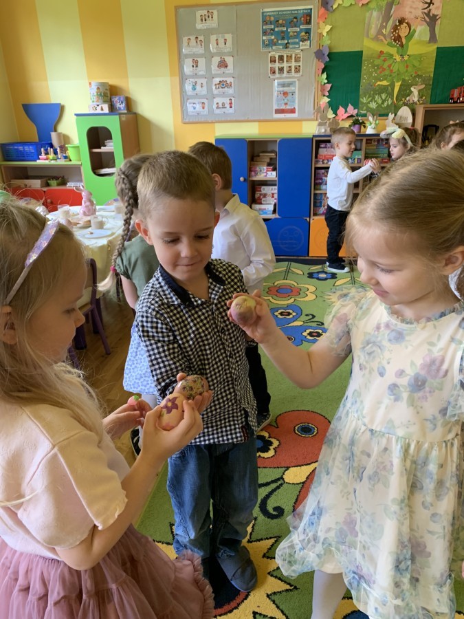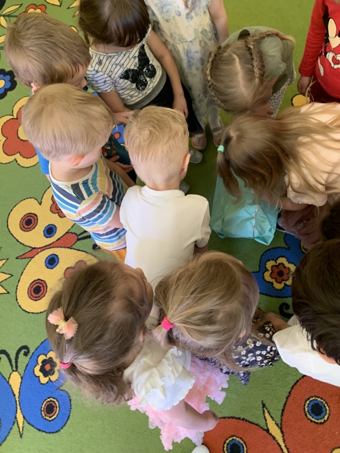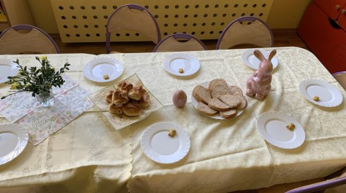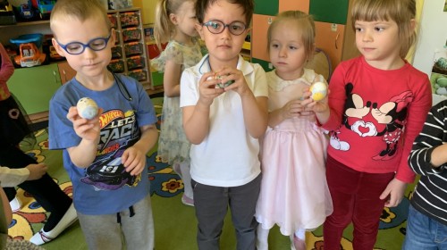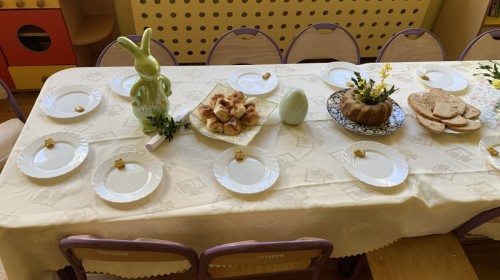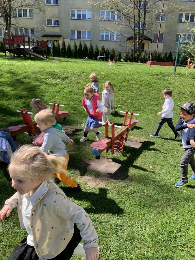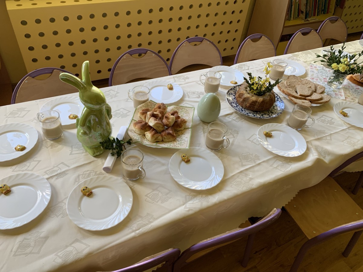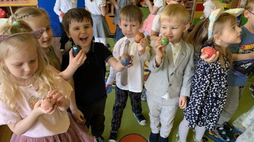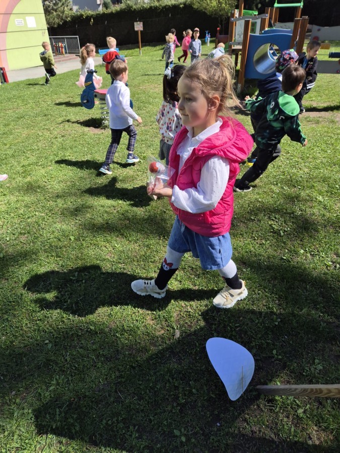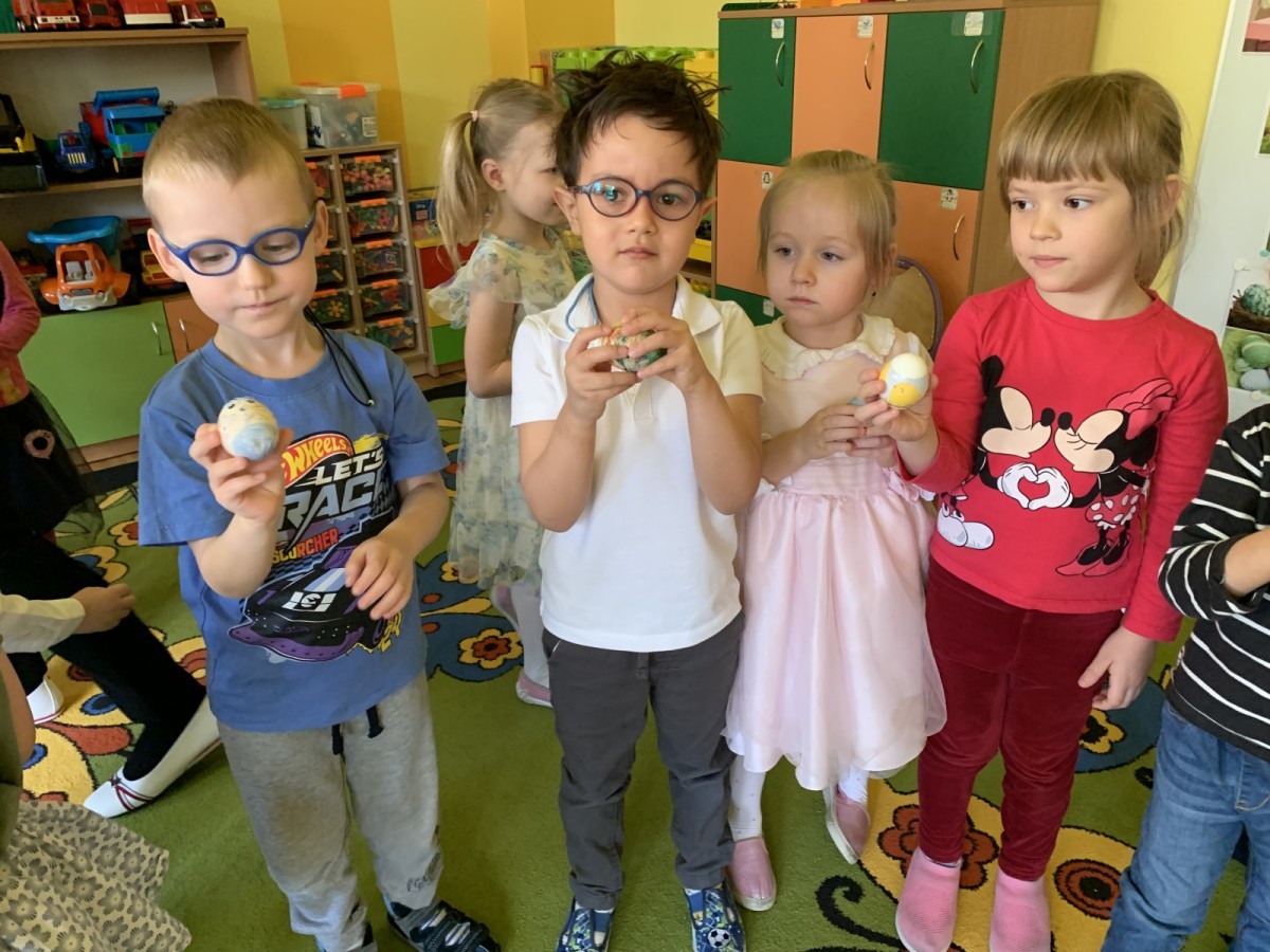 Wilczki z radością przygotowują się do Wielkanocy. Zapoznały się z najważniejszymi tradycjami, a w środę 16 kwietnia zasiadły wspólnie przy wielkanocnym śniadaniu. Nie zabrakło tradycyjnego stukania się jajkami oraz składania wielkanocnych życzeń. Tego dnia spotkała nas także niespodzianka… dostaliśmy list od tajemniczego gościa, którym okazał się Wielkanocny Zajączek. Podążaliśmy jego śladami, które zaprowadziły nas do ogrodu przedszkolnego - tam, zostawił dla nas słodkie jajka. Po powrocie okazało się, że to nie koniec niespodzianek - w sali czekał na nas prezent dla całej grupy!