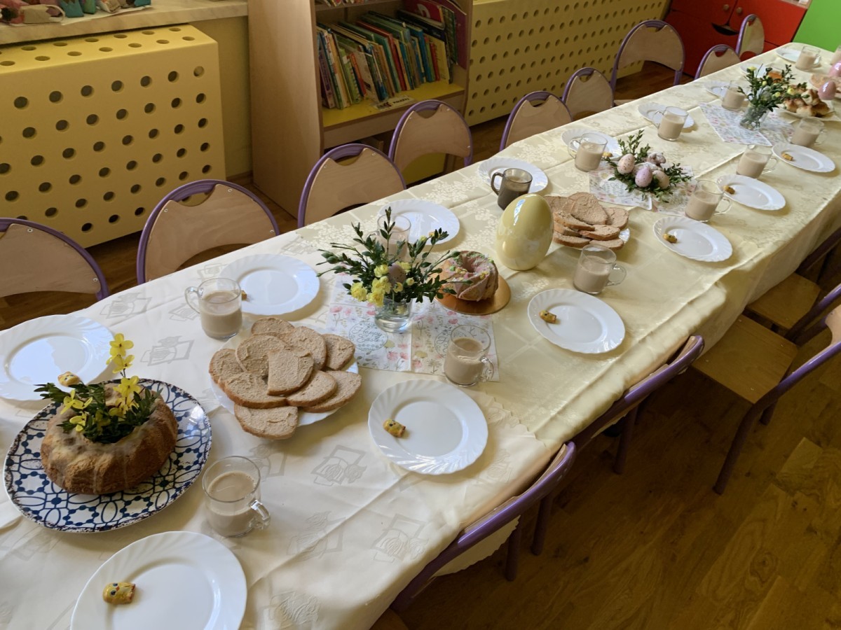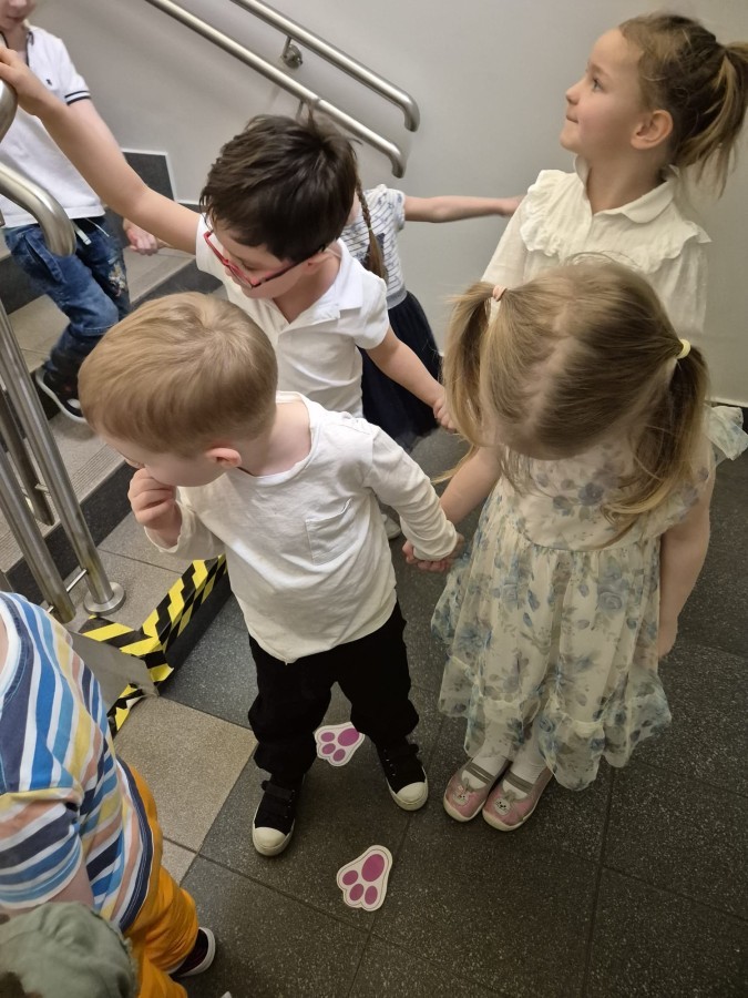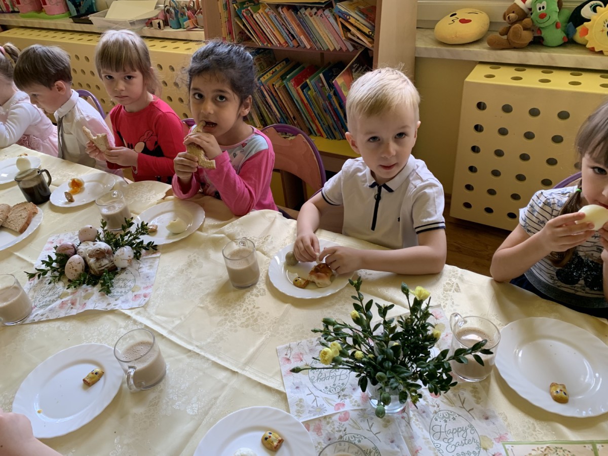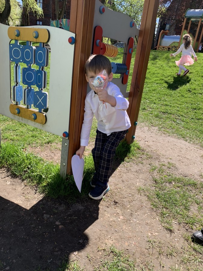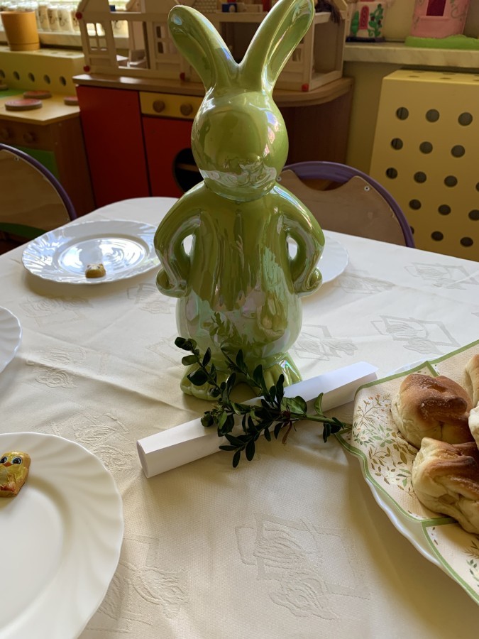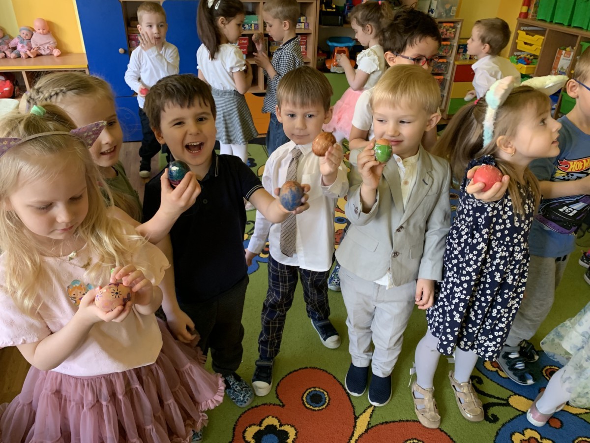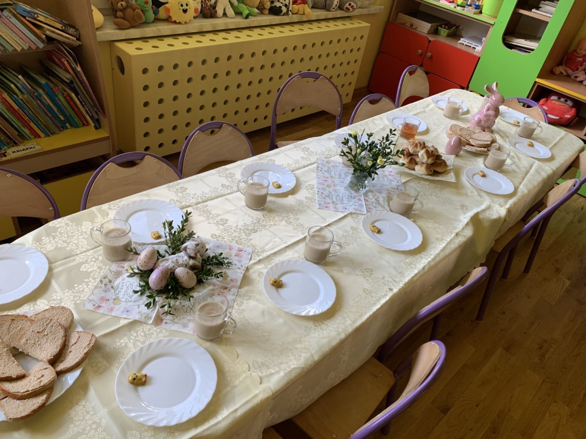 Wilczki z radością przygotowują się do Wielkanocy. Zapoznały się z najważniejszymi tradycjami, a w środę 16 kwietnia zasiadły wspólnie przy wielkanocnym śniadaniu. Nie zabrakło tradycyjnego stukania się jajkami oraz składania wielkanocnych życzeń. Tego dnia spotkała nas także niespodzianka… dostaliśmy list od tajemniczego gościa, którym okazał się Wielkanocny Zajączek. Podążaliśmy jego śladami, które zaprowadziły nas do ogrodu przedszkolnego - tam, zostawił dla nas słodkie jajka. Po powrocie okazało się, że to nie koniec niespodzianek - w sali czekał na nas prezent dla całej grupy!