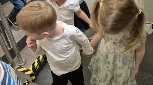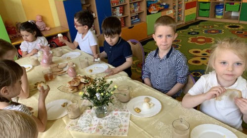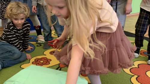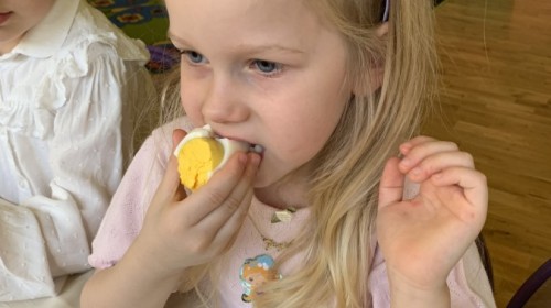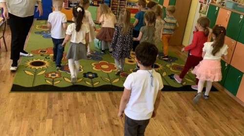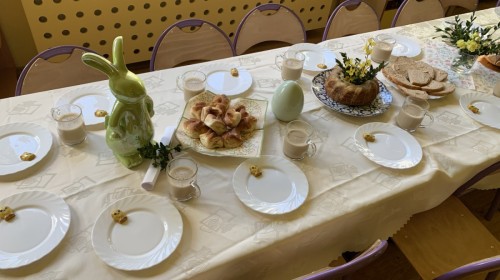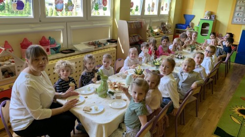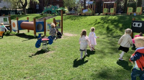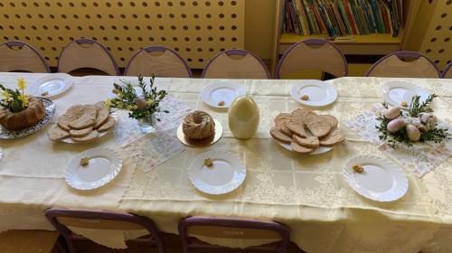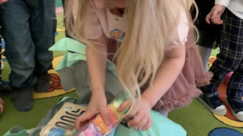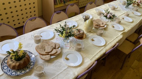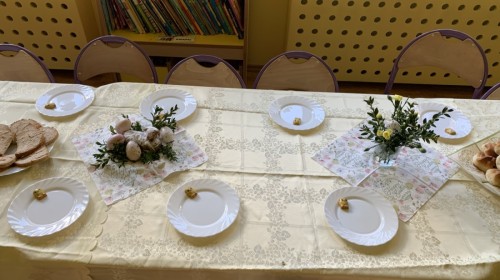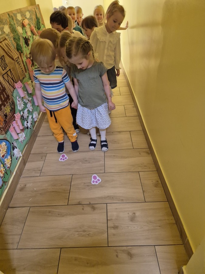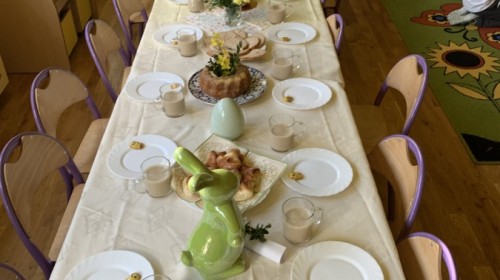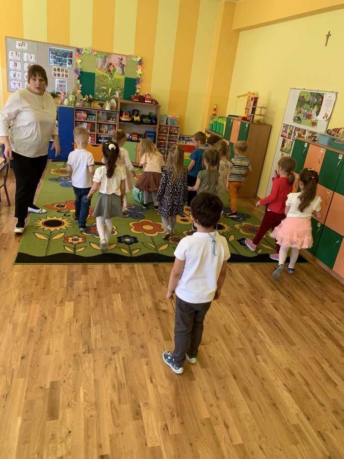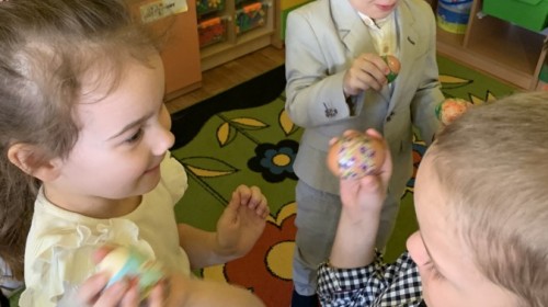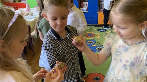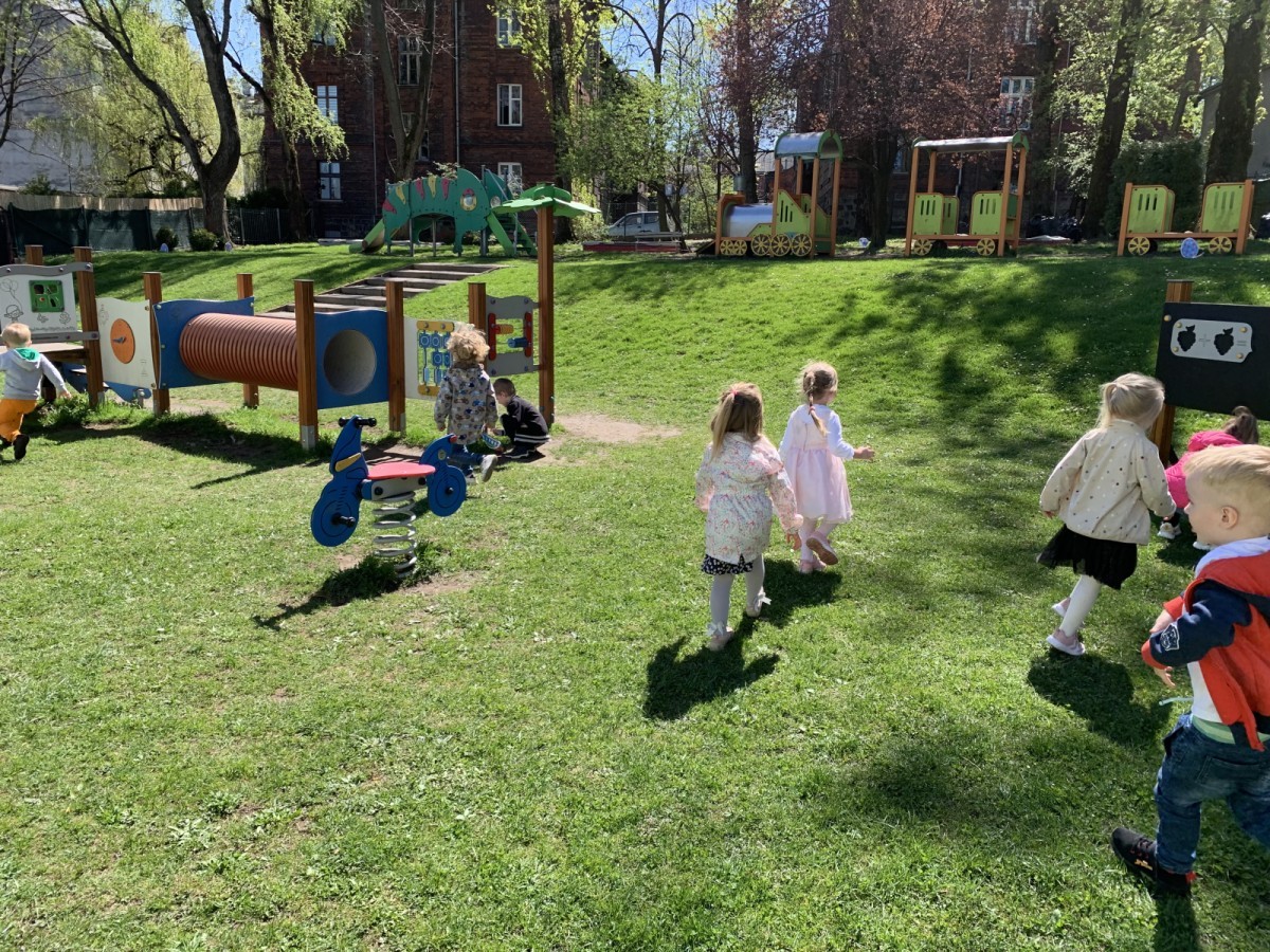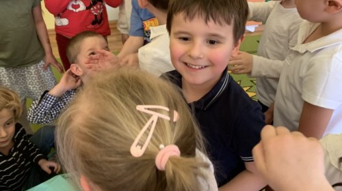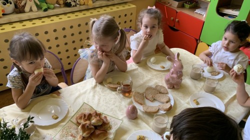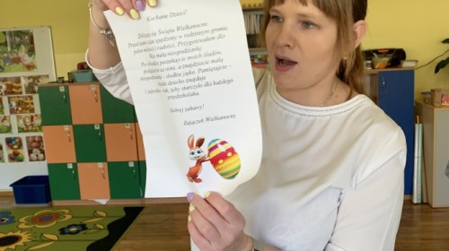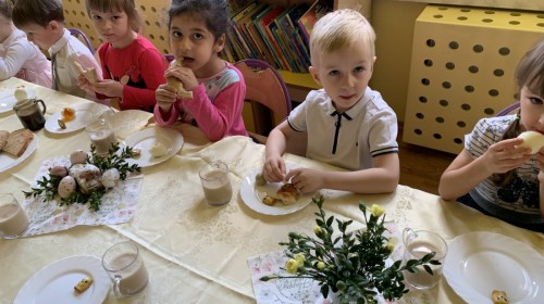 Wilczki z radością przygotowują się do Wielkanocy. Zapoznały się z najważniejszymi tradycjami, a w środę 16 kwietnia zasiadły wspólnie przy wielkanocnym śniadaniu. Nie zabrakło tradycyjnego stukania się jajkami oraz składania wielkanocnych życzeń. Tego dnia spotkała nas także niespodzianka… dostaliśmy list od tajemniczego gościa, którym okazał się Wielkanocny Zajączek. Podążaliśmy jego śladami, które zaprowadziły nas do ogrodu przedszkolnego - tam, zostawił dla nas słodkie jajka. Po powrocie okazało się, że to nie koniec niespodzianek - w sali czekał na nas prezent dla całej grupy!