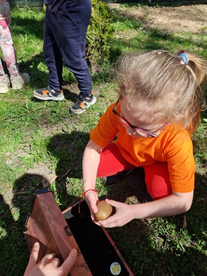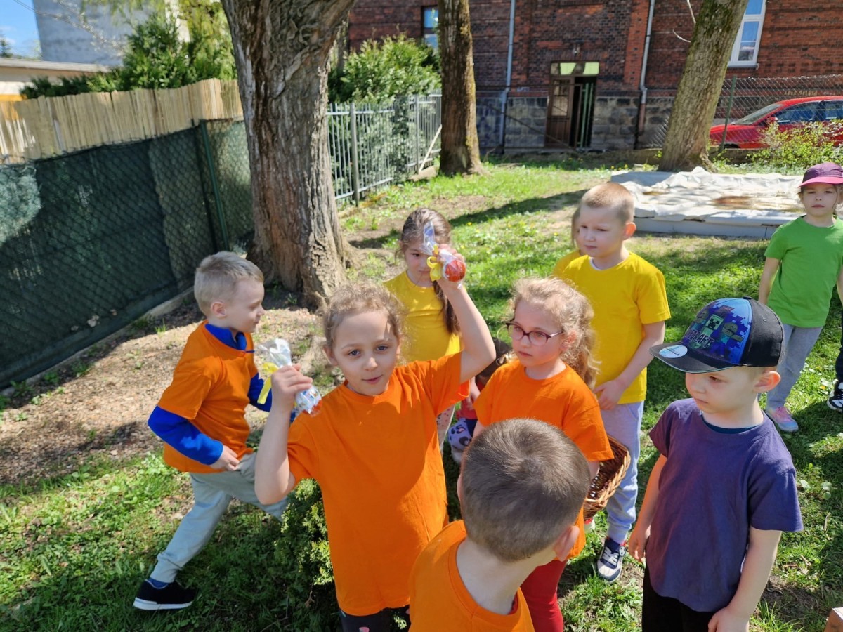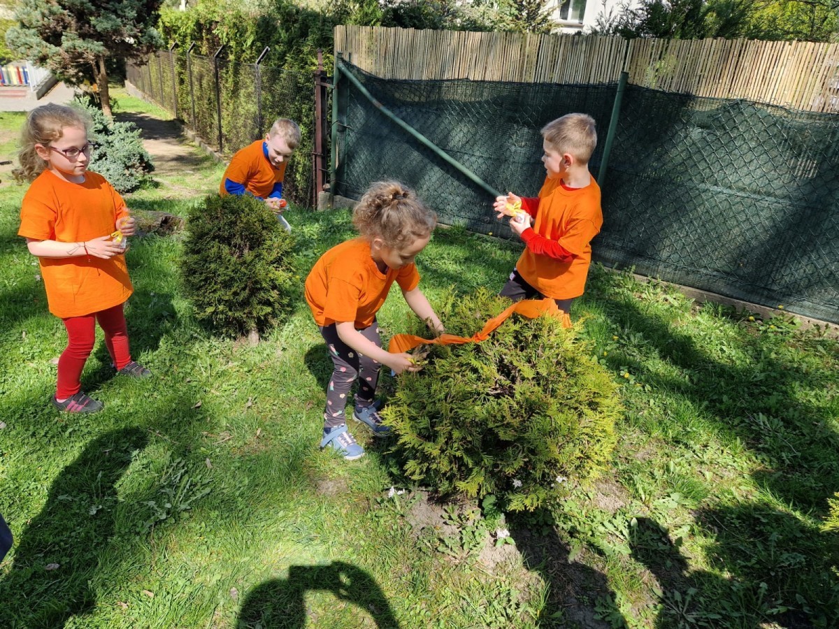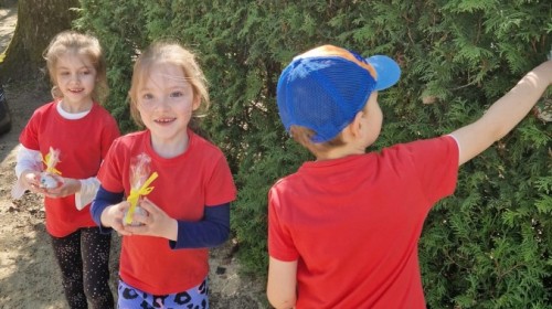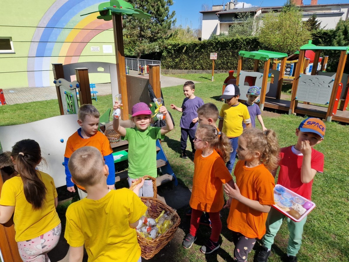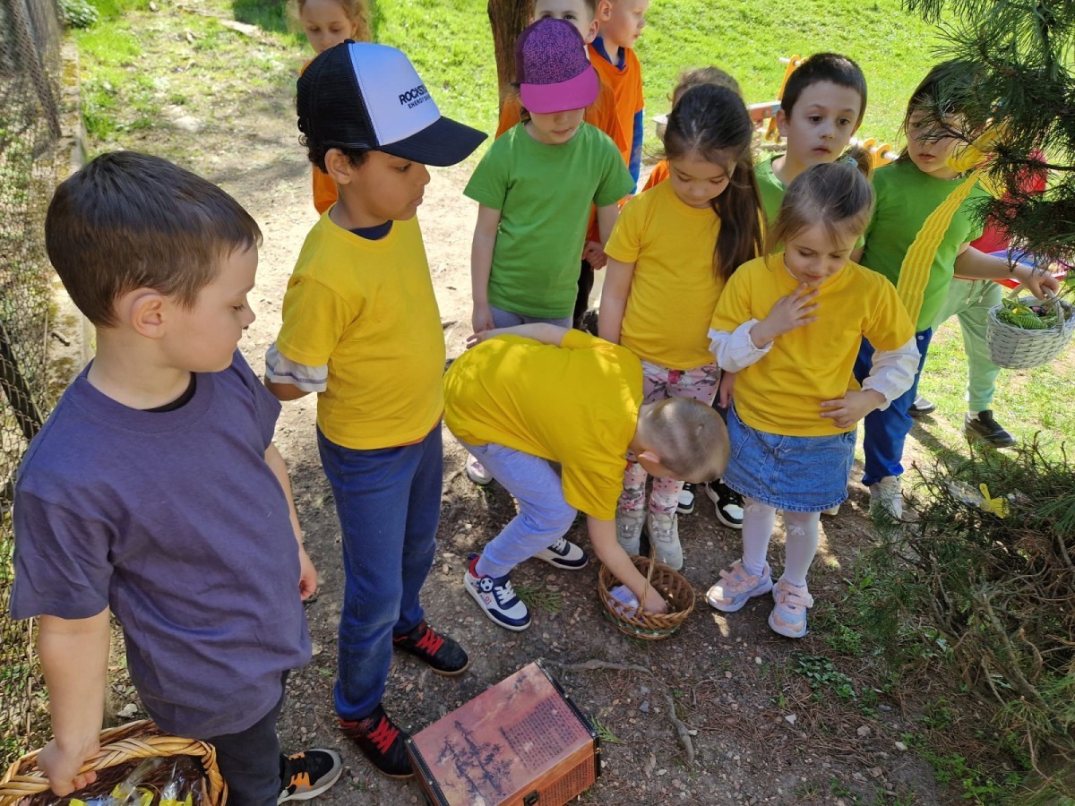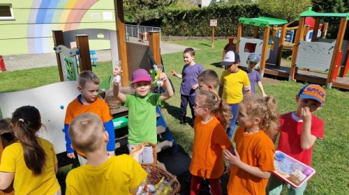 Z okazji zbliżających się Świąt Wielkanocnych Przedszkolaki z Grupy Słoneczek wzięły udział w wielkich poszukiwaniach :) Ich zadaniem było odszukanie ukrytych w ogrodzie przedszkolnym czekoladowych jajeczek. Dzieci podzielone na zespoły miały do wykonania różne zadania, których rozwiązanie pozwalało rozpocząć poszukiwania. Nasze Bystrzaki rozwiązały wszystkie rebusy i zagadki sensoryczne, a dzięki temu odnalazły ukryte w ogrodzie jajeczka :)