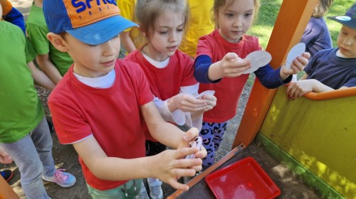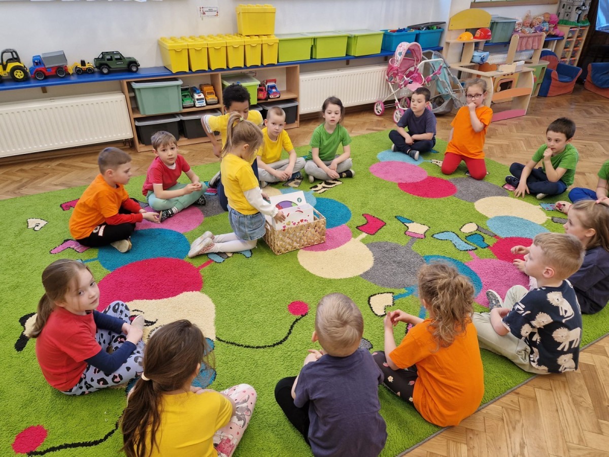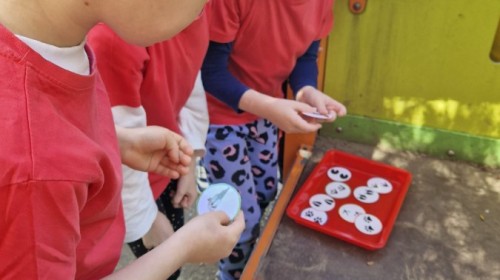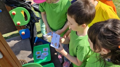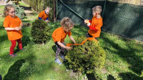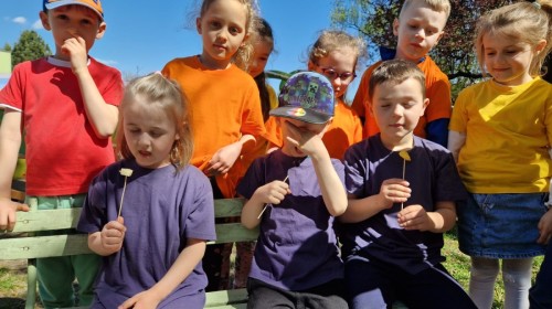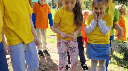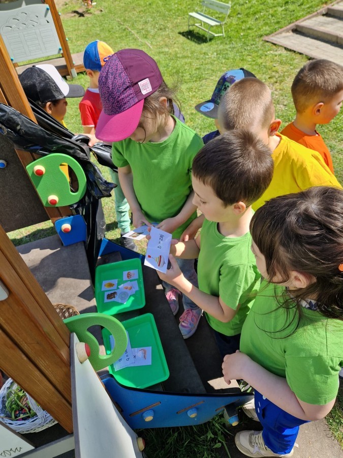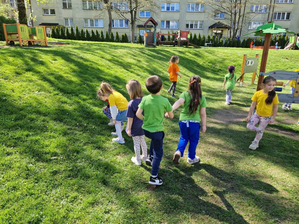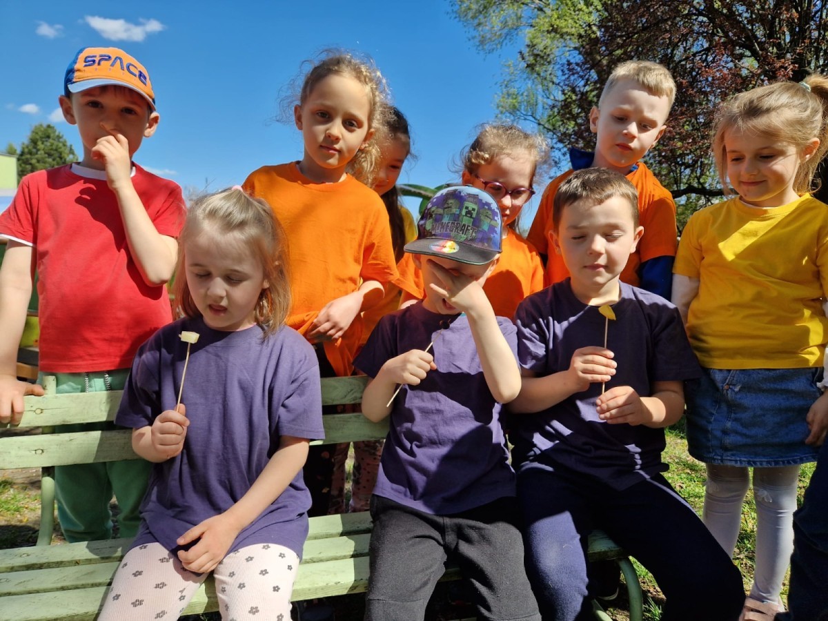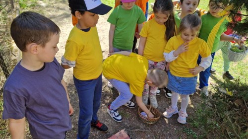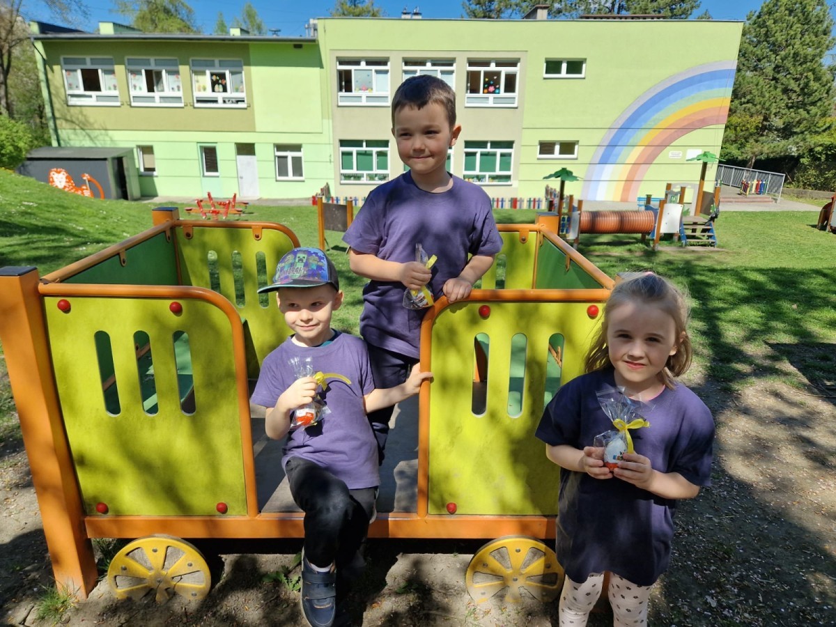 Z okazji zbliżających się Świąt Wielkanocnych Przedszkolaki z Grupy Słoneczek wzięły udział w wielkich poszukiwaniach :) Ich zadaniem było odszukanie ukrytych w ogrodzie przedszkolnym czekoladowych jajeczek. Dzieci podzielone na zespoły miały do wykonania różne zadania, których rozwiązanie pozwalało rozpocząć poszukiwania. Nasze Bystrzaki rozwiązały wszystkie rebusy i zagadki sensoryczne, a dzięki temu odnalazły ukryte w ogrodzie jajeczka :)