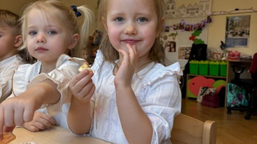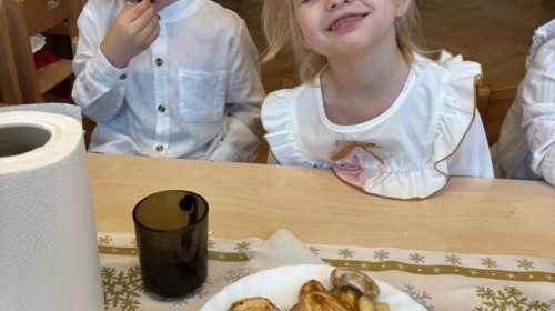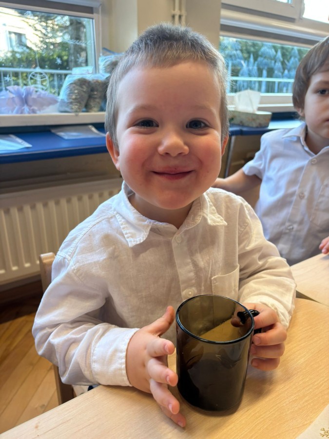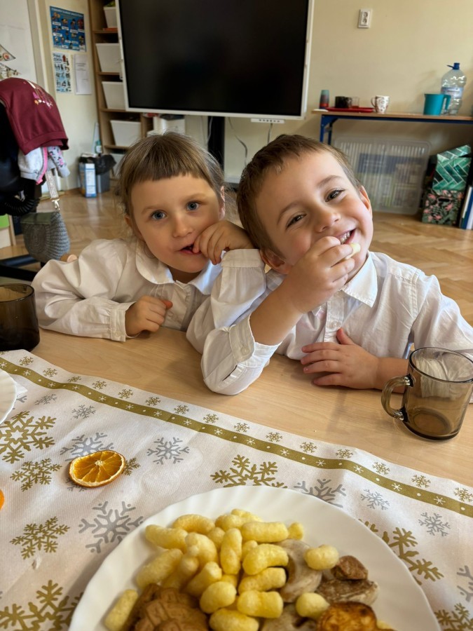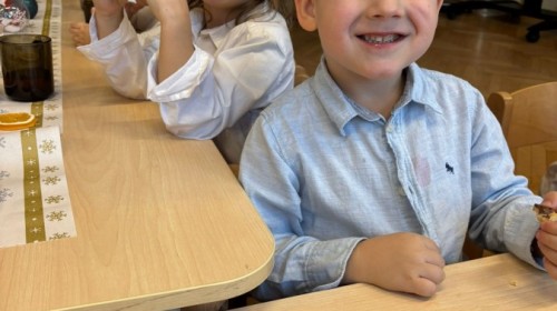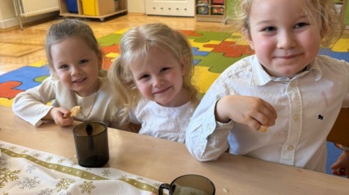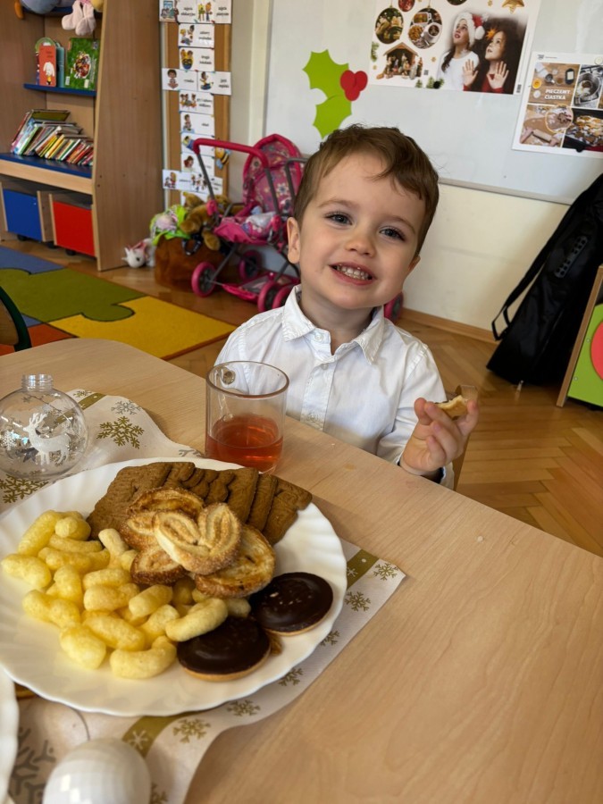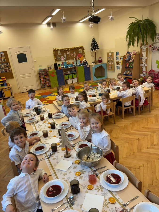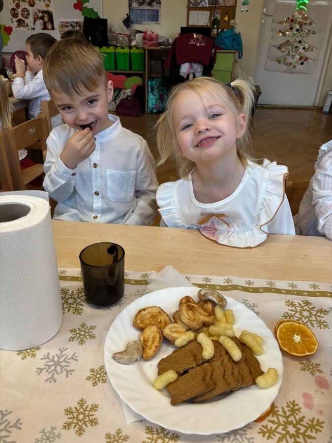 W grupie "Pszczółki" odbyła się uroczysta, grupowa wigilia. Dzieci w świątecznej atmosferze składały sobie serdeczne życzenia, dzieliły się opłatkiem oraz wspólnie świętowały przy wigilijnym stole. Spotkanie było pełne radości, ciepła i wzajemnej życzliwości, a wspólne chwile sprzyjały integracji oraz kultywowaniu świątecznych tradycji. 🎄✨