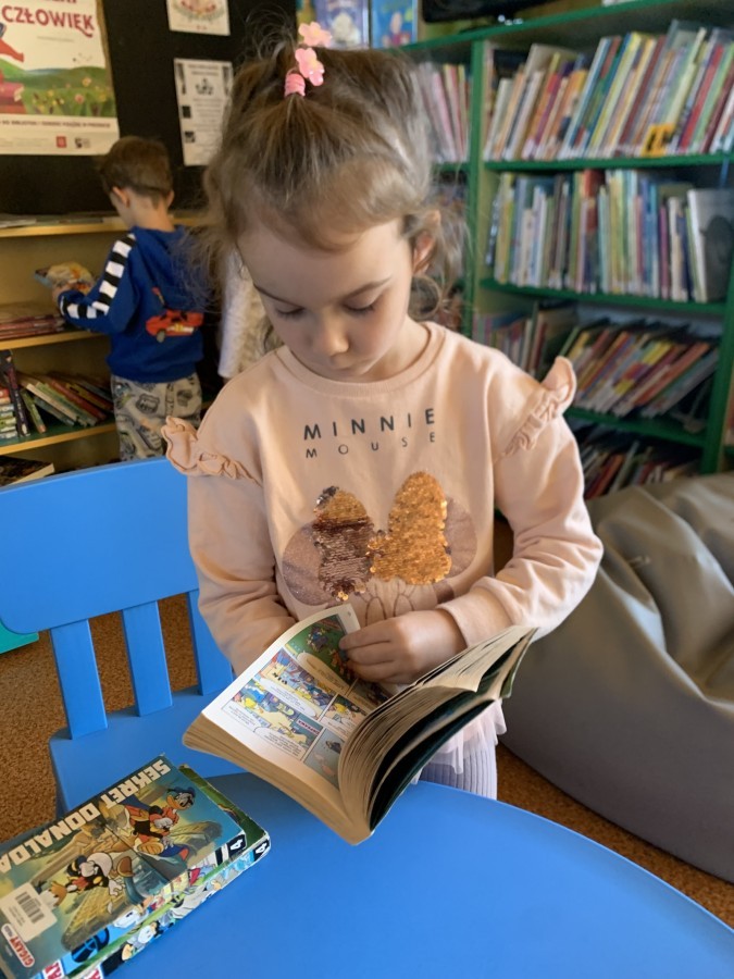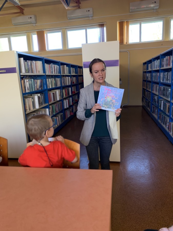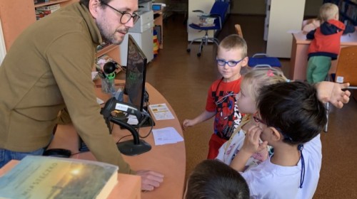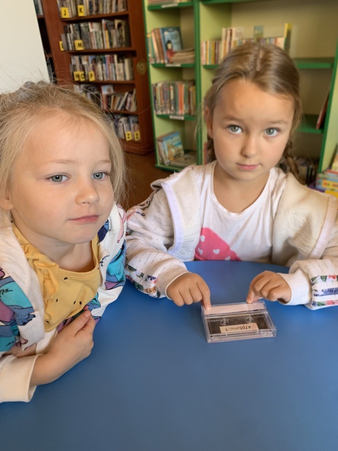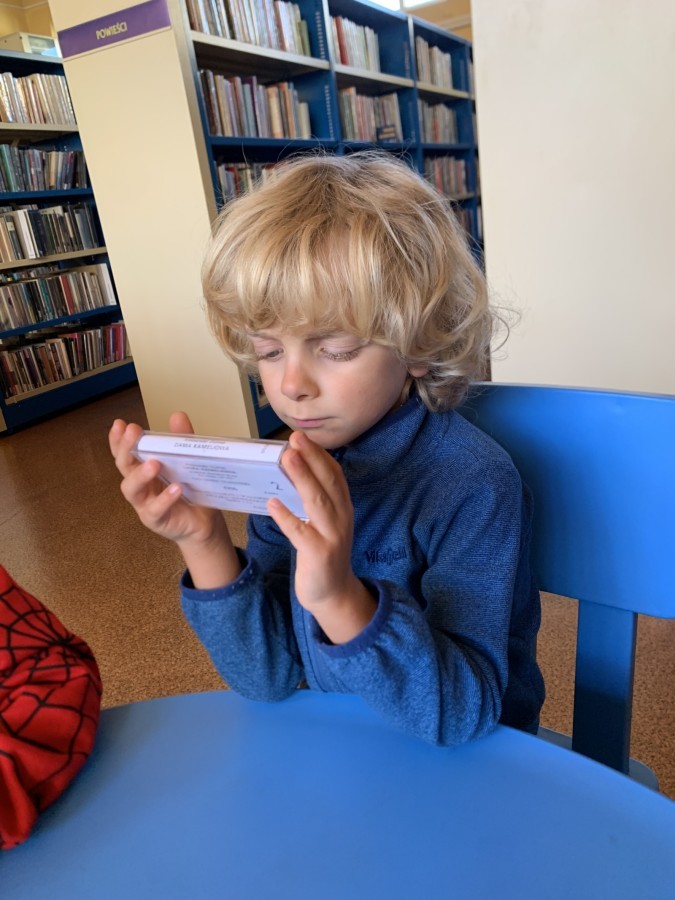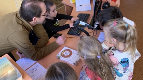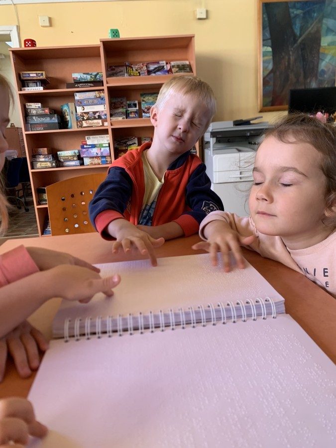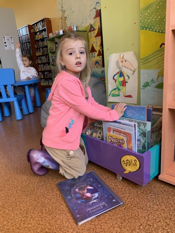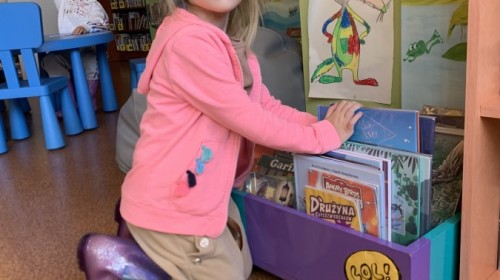 Przedszkolaki miały także okazję zaprojektować własną pieczątkę biblioteczną, tworząc ciekawe i oryginalne wzory. Wysłuchały również czytanej książki oraz wzięły udział w zabawie w „czytelników”, poznając w praktyce zasady korzystania z biblioteki.