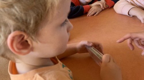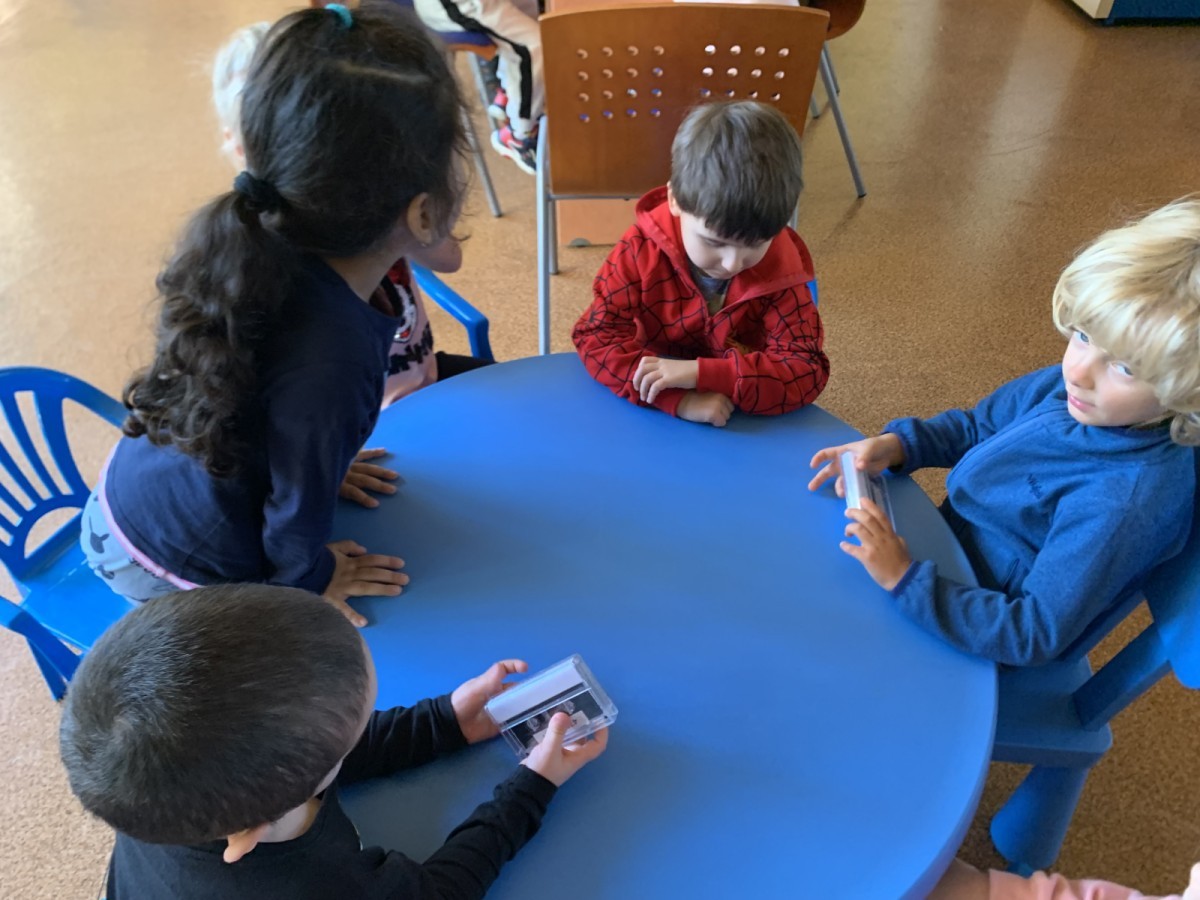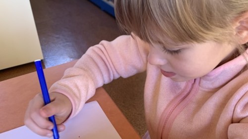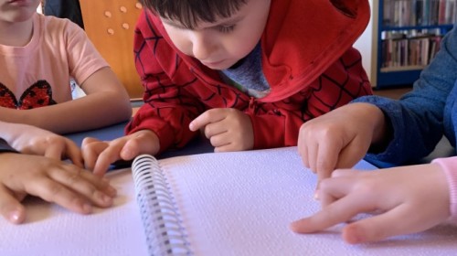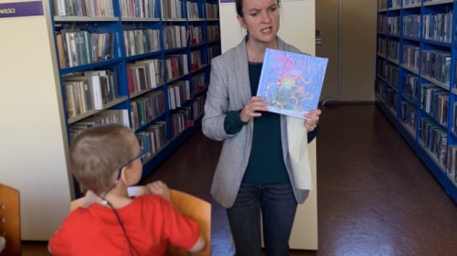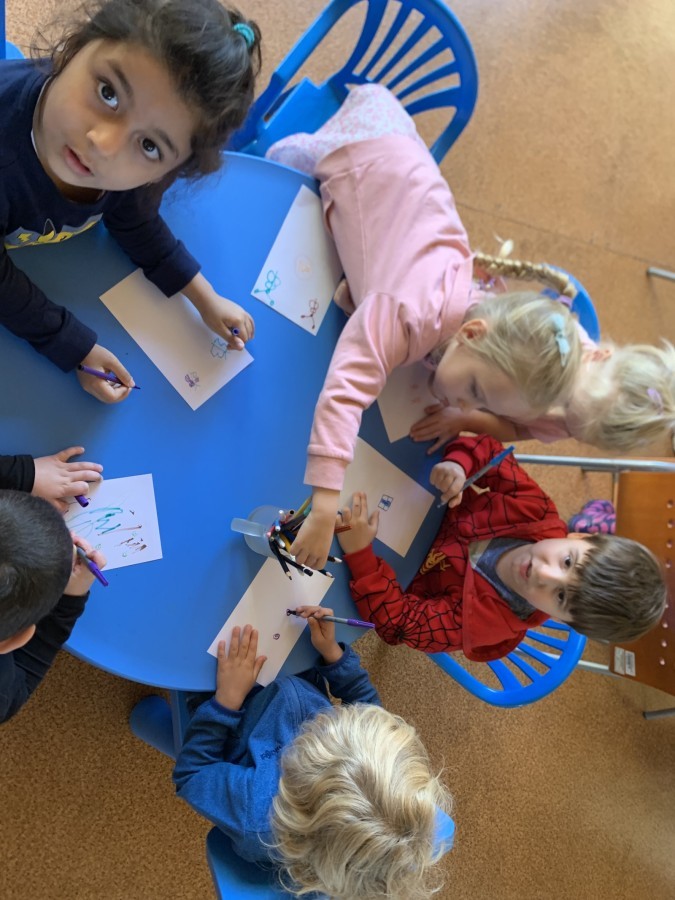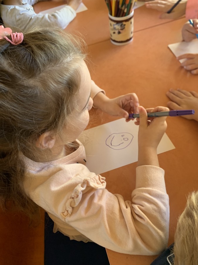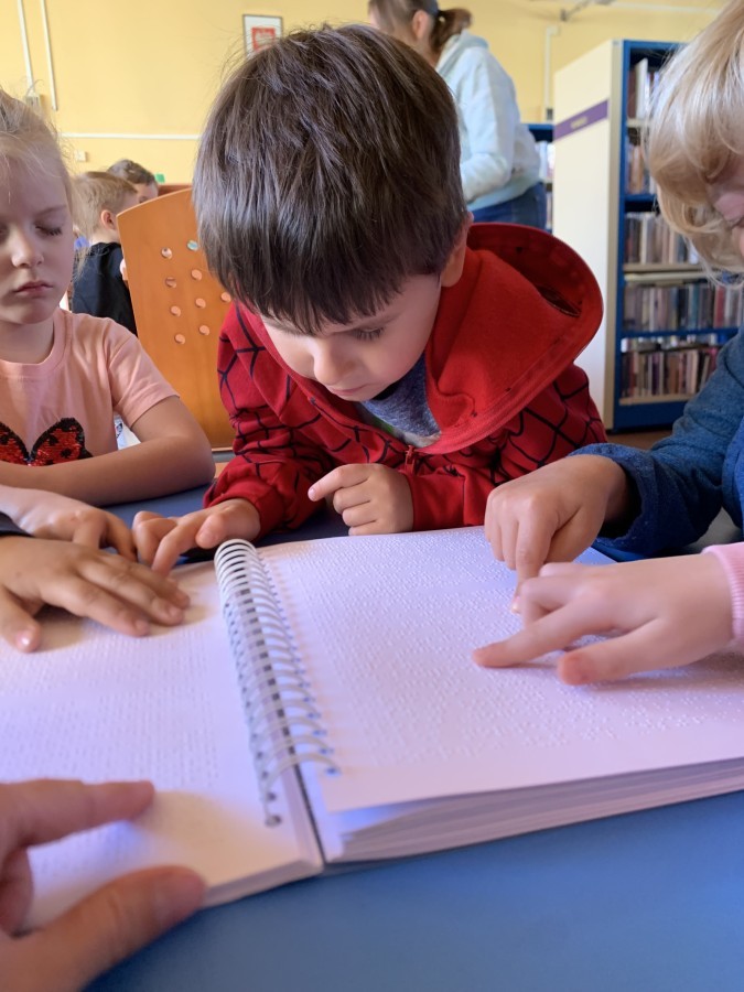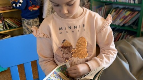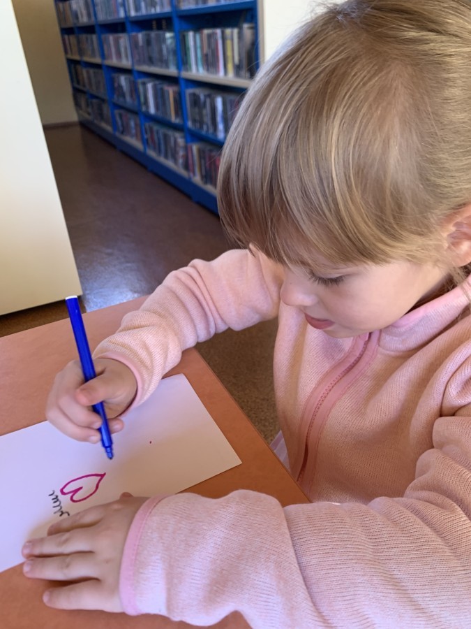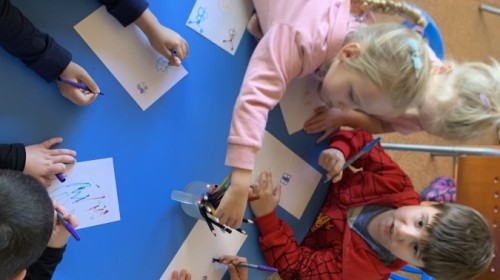 Przedszkolaki miały także okazję zaprojektować własną pieczątkę biblioteczną, tworząc ciekawe i oryginalne wzory. Wysłuchały również czytanej książki oraz wzięły udział w zabawie w „czytelników”, poznając w praktyce zasady korzystania z biblioteki.