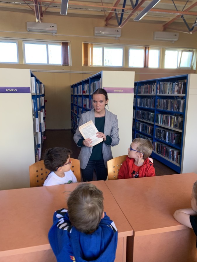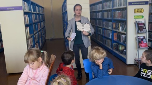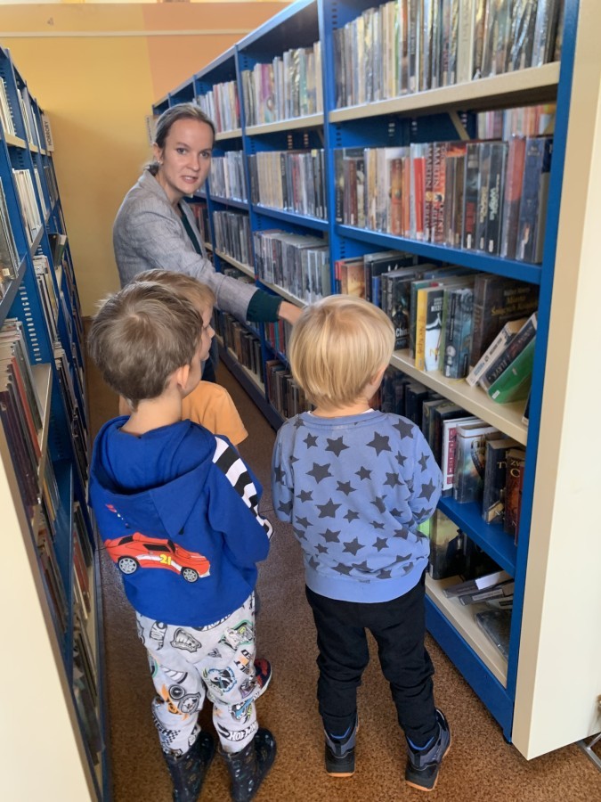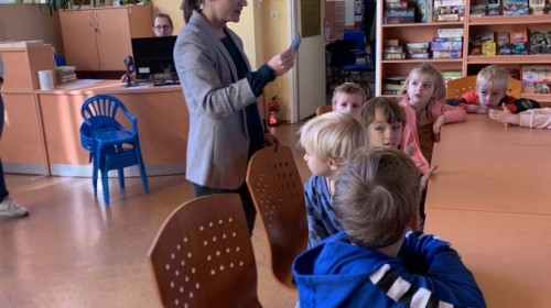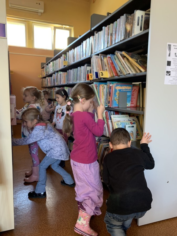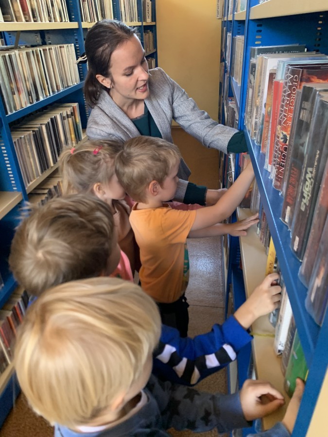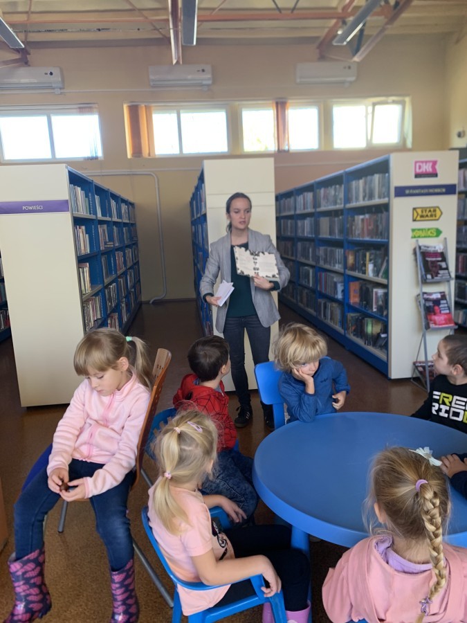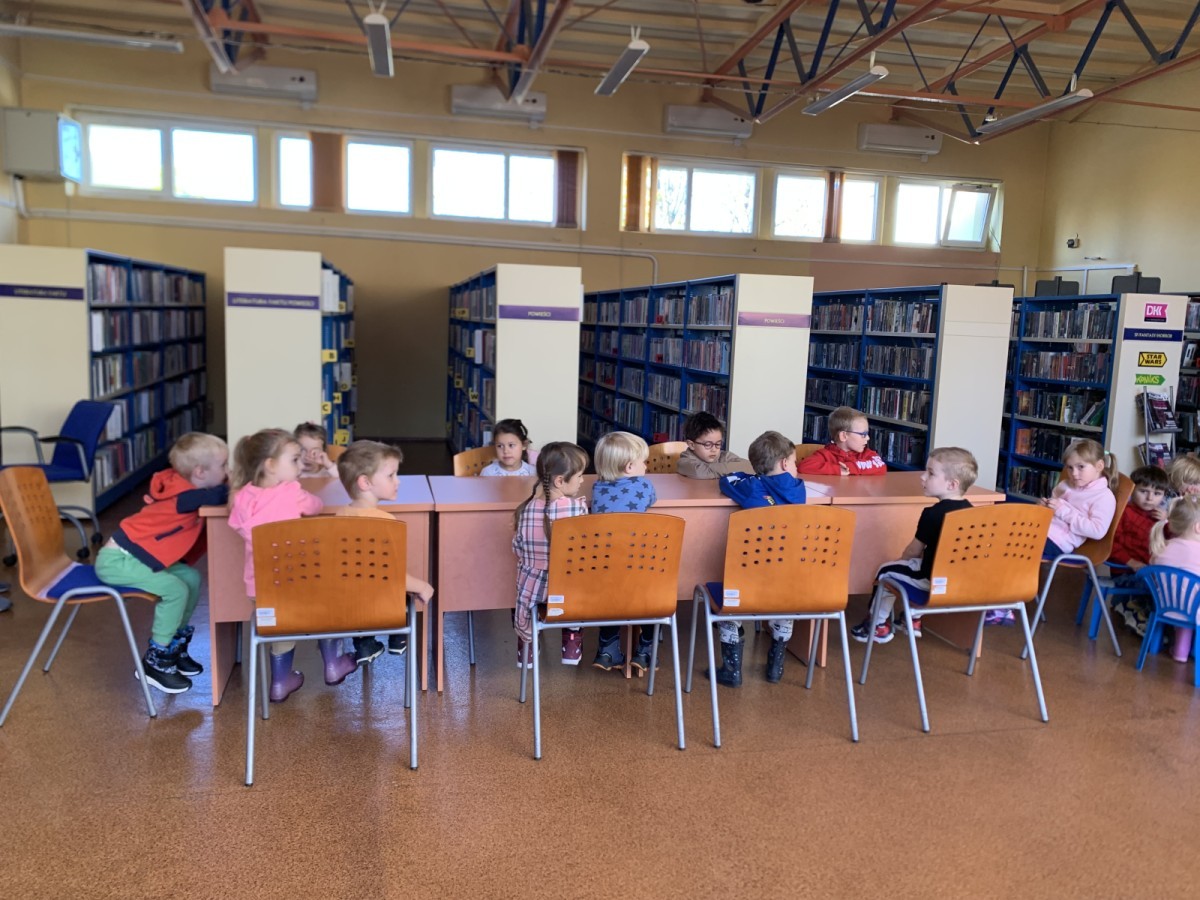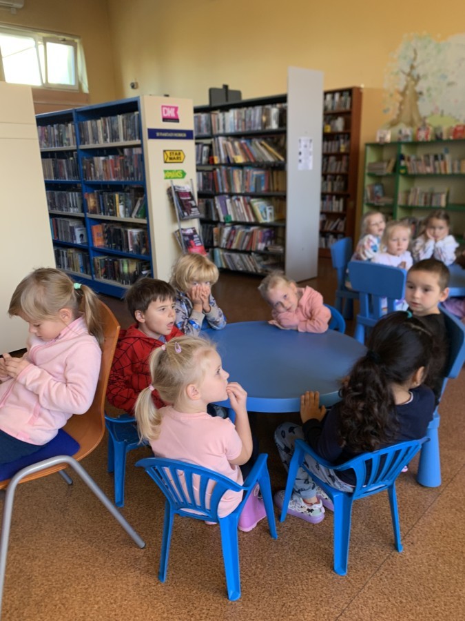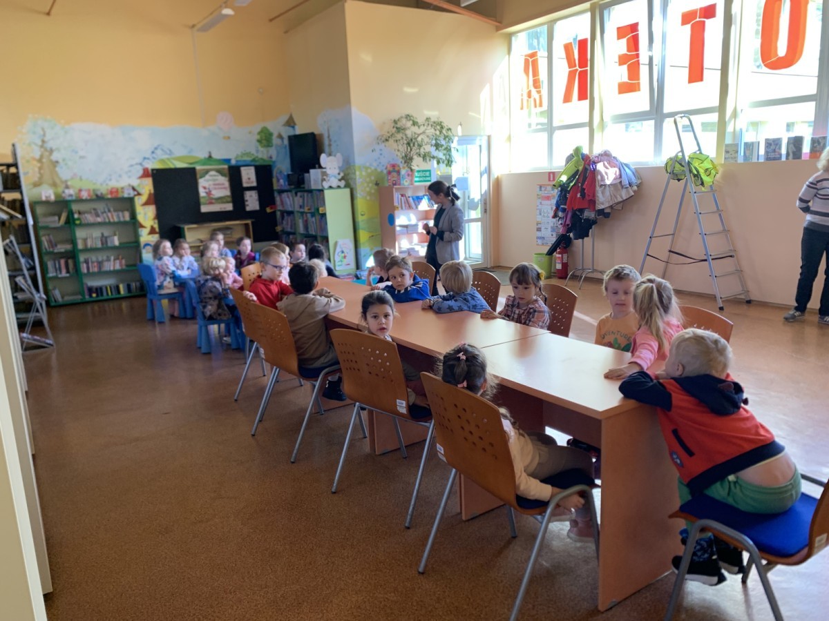 Dnia 16 października 2025 roku grupa "Wilczki" wybrała się na spacer do biblioteki. Podczas spotkania dzieci dowiedziały się wielu ważnych informacji na temat funkcjonowania biblioteki, zasad wypożyczania książek oraz jak należy o nie dbać.