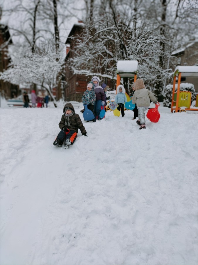 Ostatnie dni przyniosły nam prawdziwie zimową aurę, dlatego „Biedronki” z radością wykorzystały śnieżną pogodę na wspólne zabawy na świeżym powietrzu.