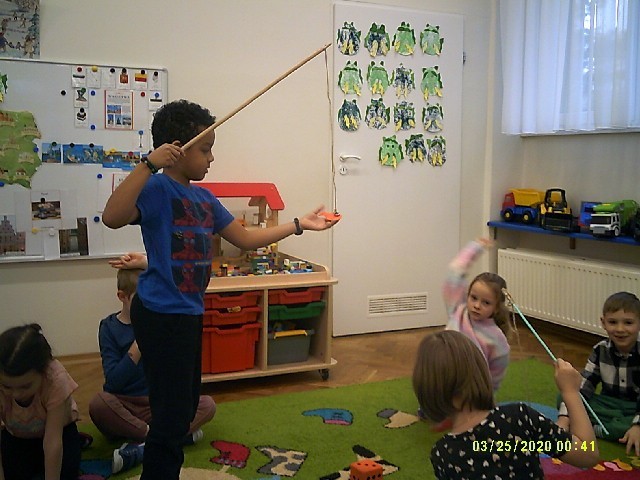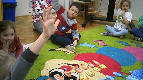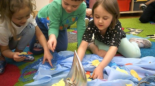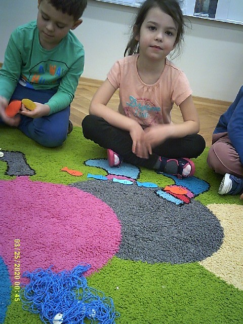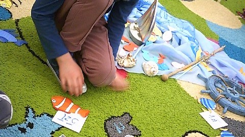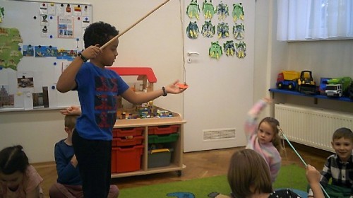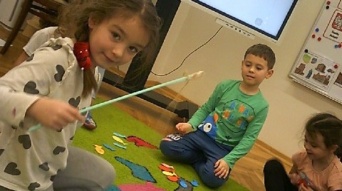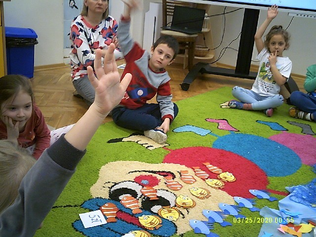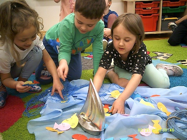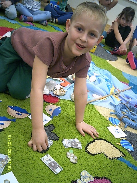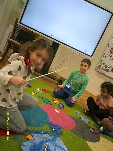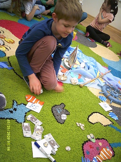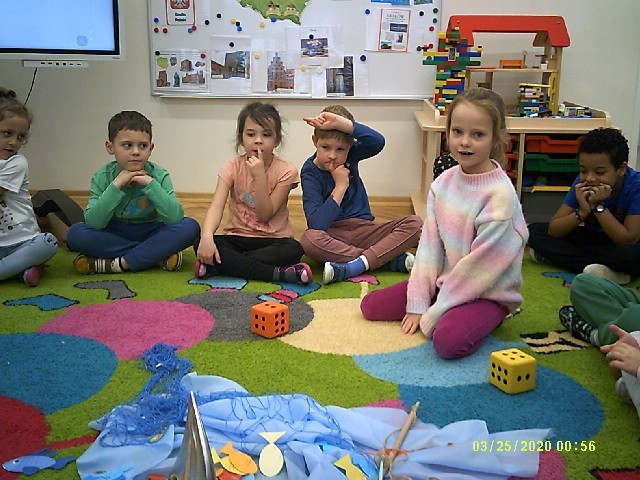 Byliśmy także w przedszkolnym sklepiku, gdzie można było kupić różne rybki. Dzieci miały pieniążki i musiały zapłacić odpowiednią kwotę za zrobione zakupy. Dzieci bardzo aktywnie uczestniczyły w zajęciach.
