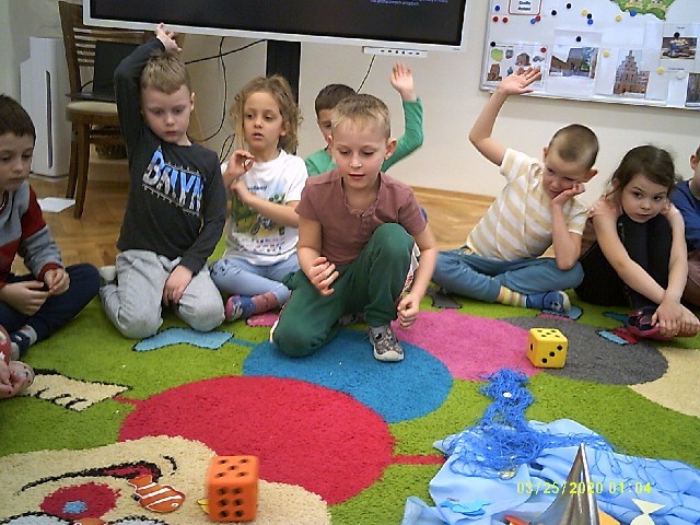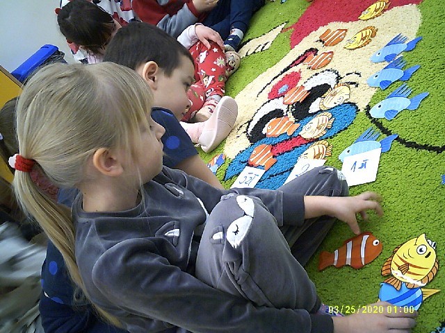 Nasze „Słoneczka” doskonalą swoje umiejętności liczenia. Na zajęciach łowiliśmy rybki według wykulanej liczby oczek, tworzyliśmy zbiory, przeliczaliśmy w poznanym zakresie.