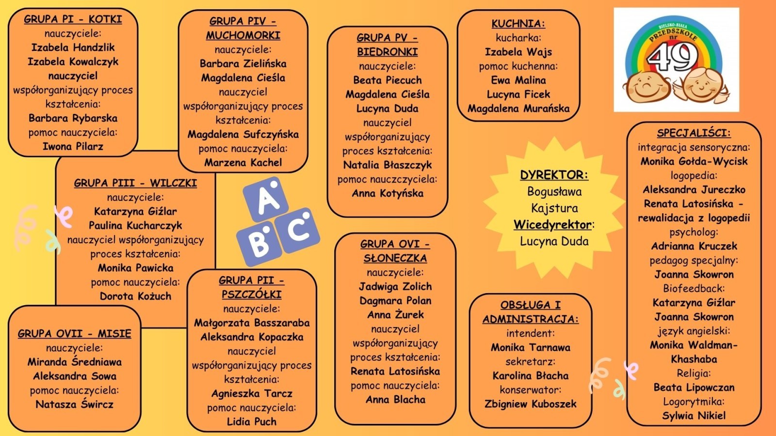 Przedszkole posiada wykwalifikowaną kadrę pedagogiczną, która systematycznie uczestniczy w różnych formach doskonalenia zawodowego i zdobywa kolejne stopnie awansu zawodowego.